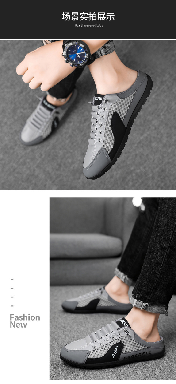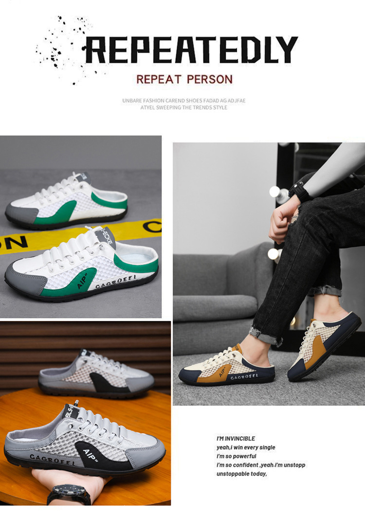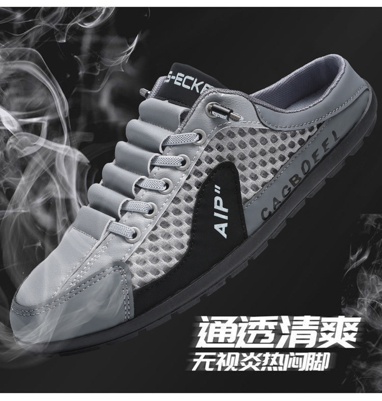 Трансграничные мужские туфли Baotou большого размера с половиной чашки, новые летние дышащие слипоны с сеткой, модные дышащие туфли с сеткой
