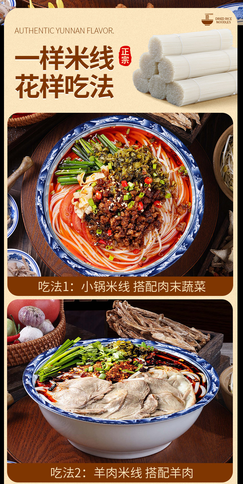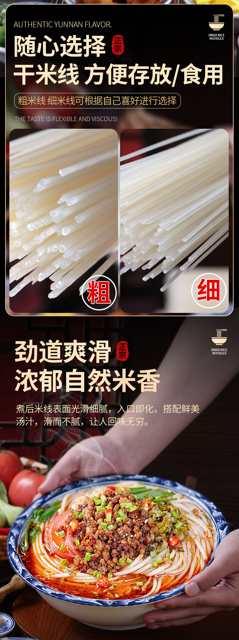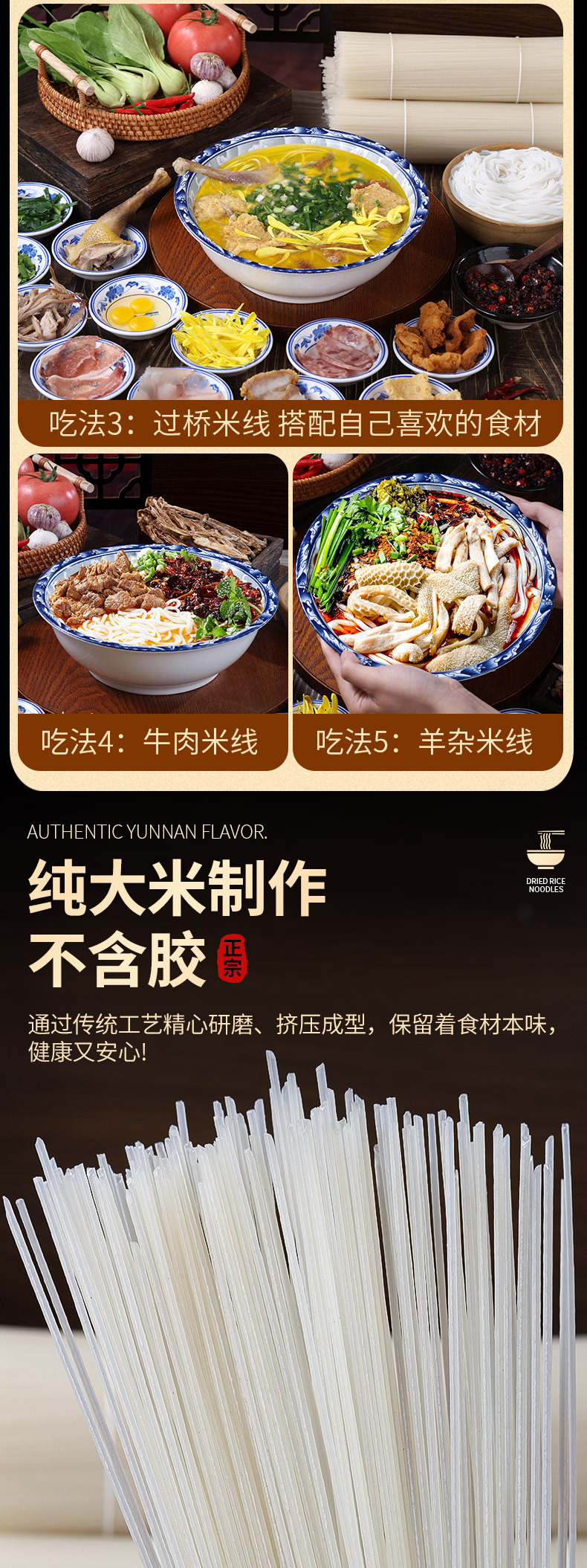Сухая рисовая лапша Юньнань Гуоцяо оптом для коммерческого использования, фирменная аутентичная рисовая лапша из Юньнань в пакетах различной толщины, сухие продукты, рисовая лапша.