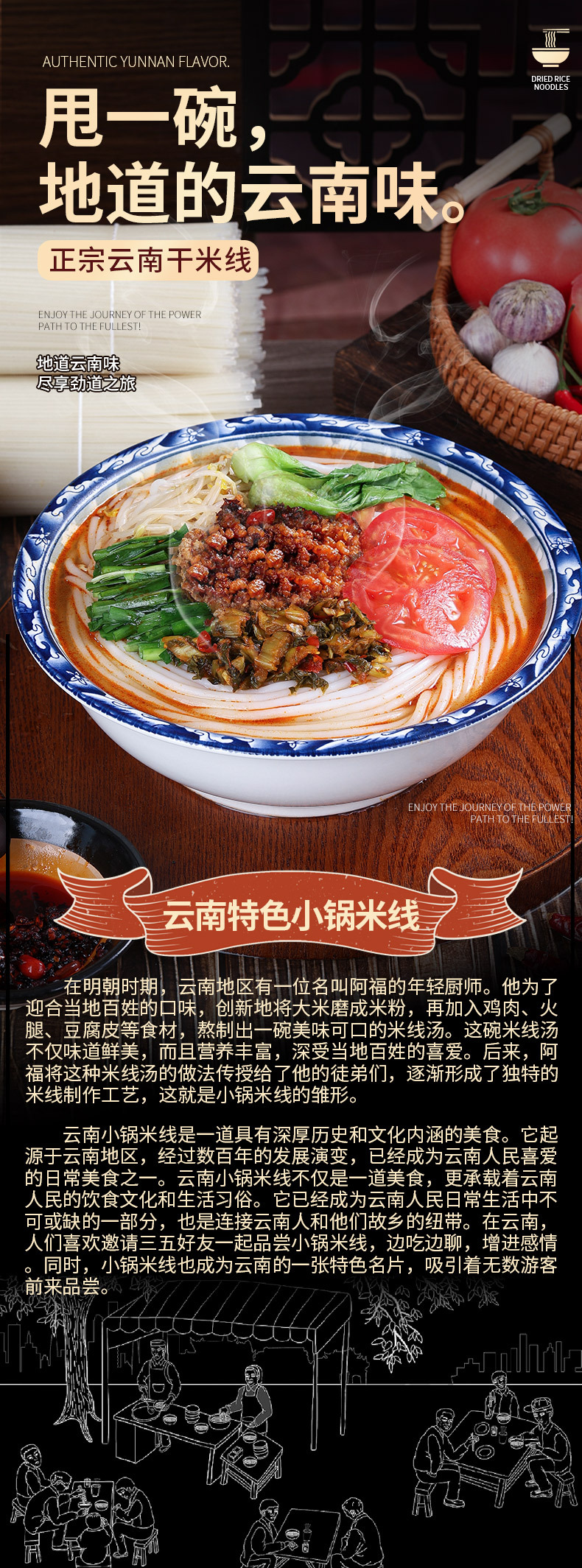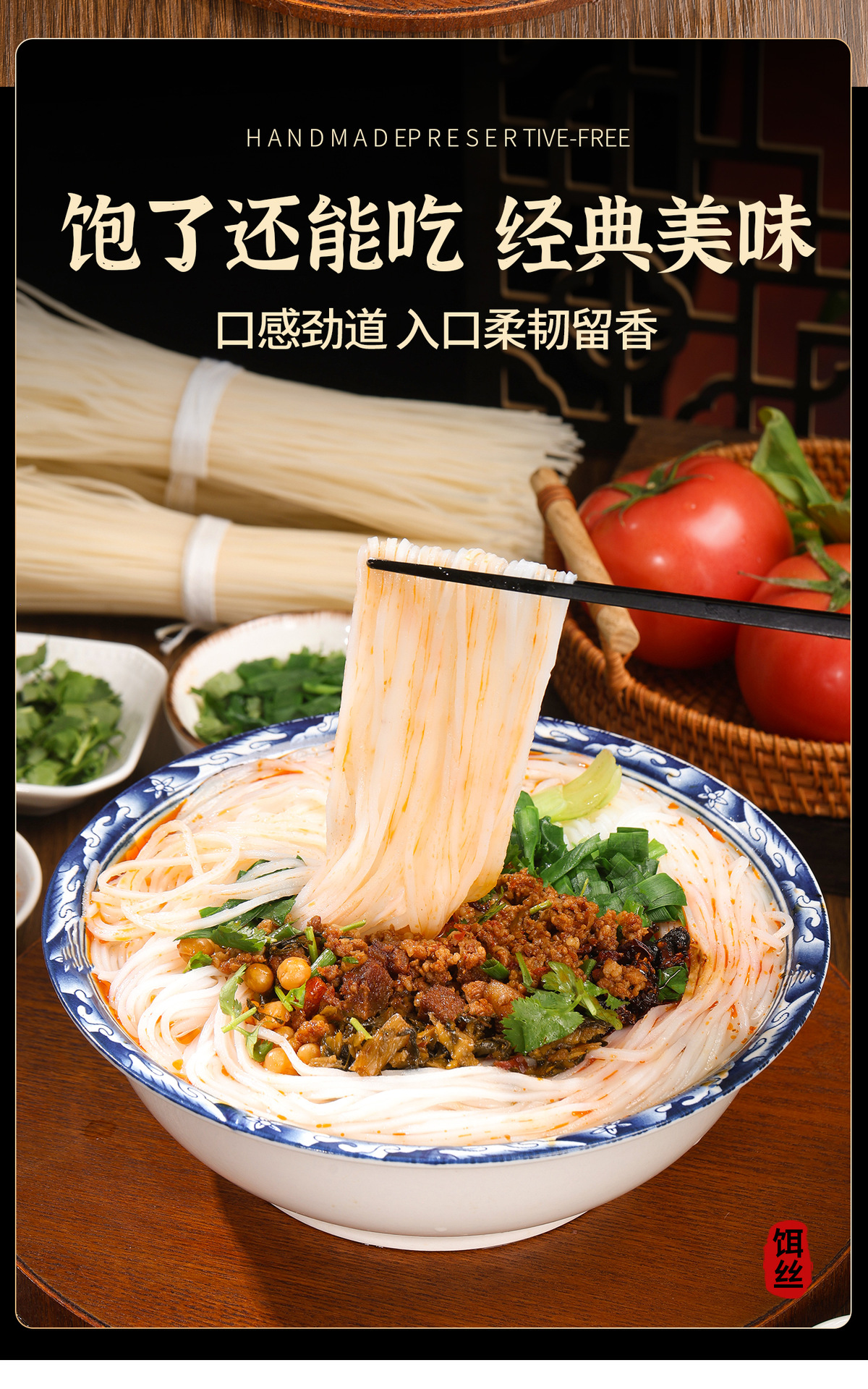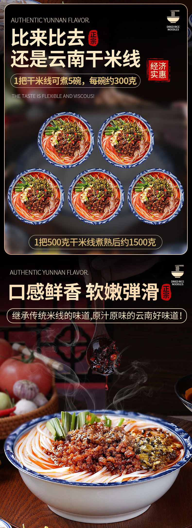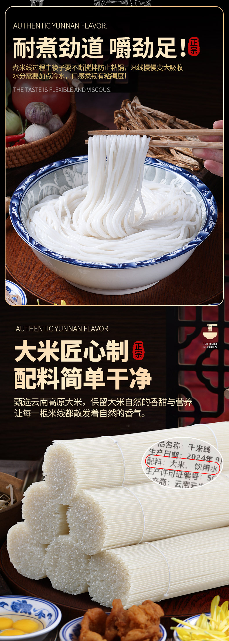 Сухая рисовая лапша Юньнань Гуоцяо оптом для коммерческого использования, фирменная аутентичная рисовая лапша из Юньнань в пакетах различной толщины, сухие продукты, рисовая лапша.