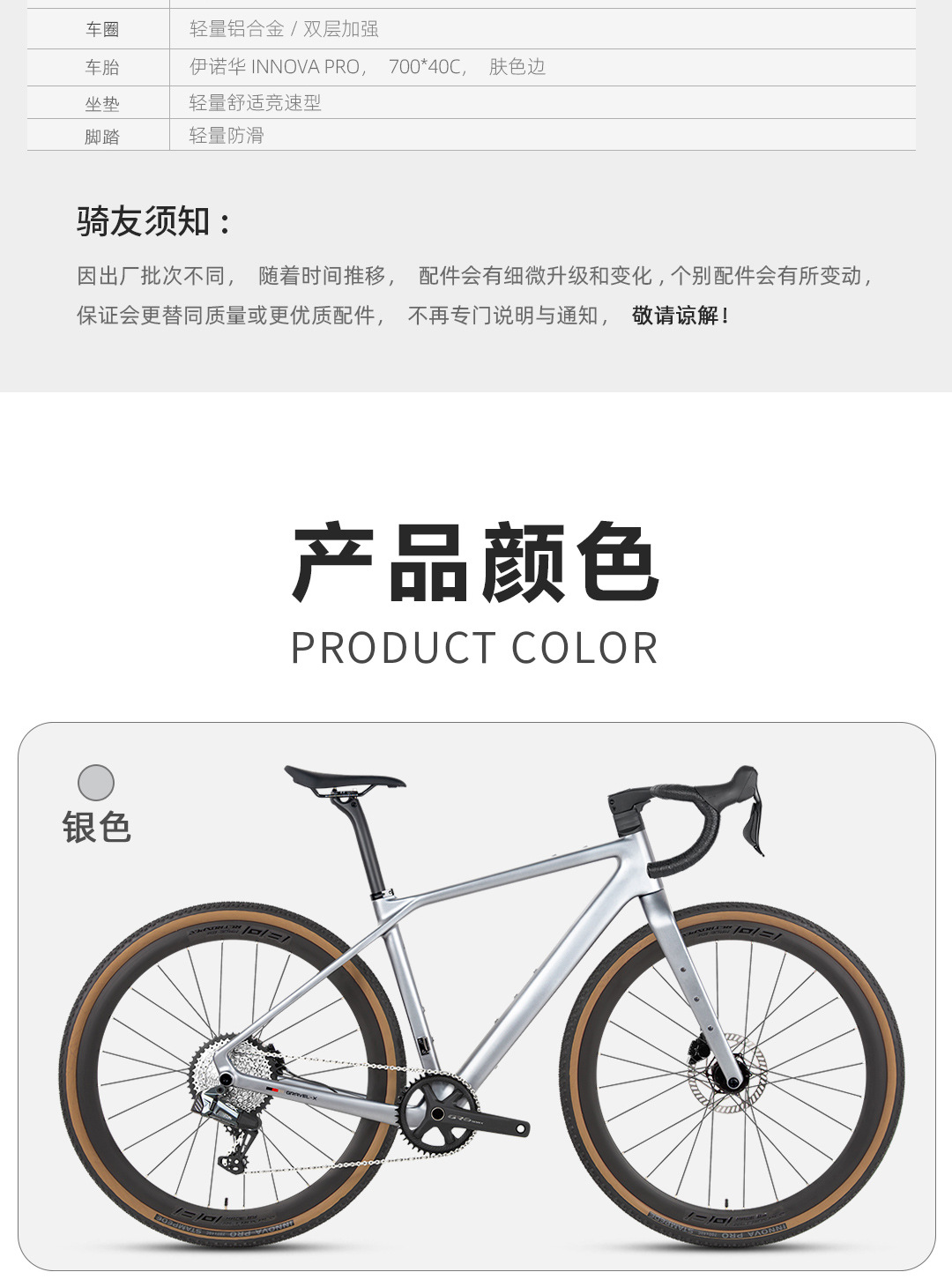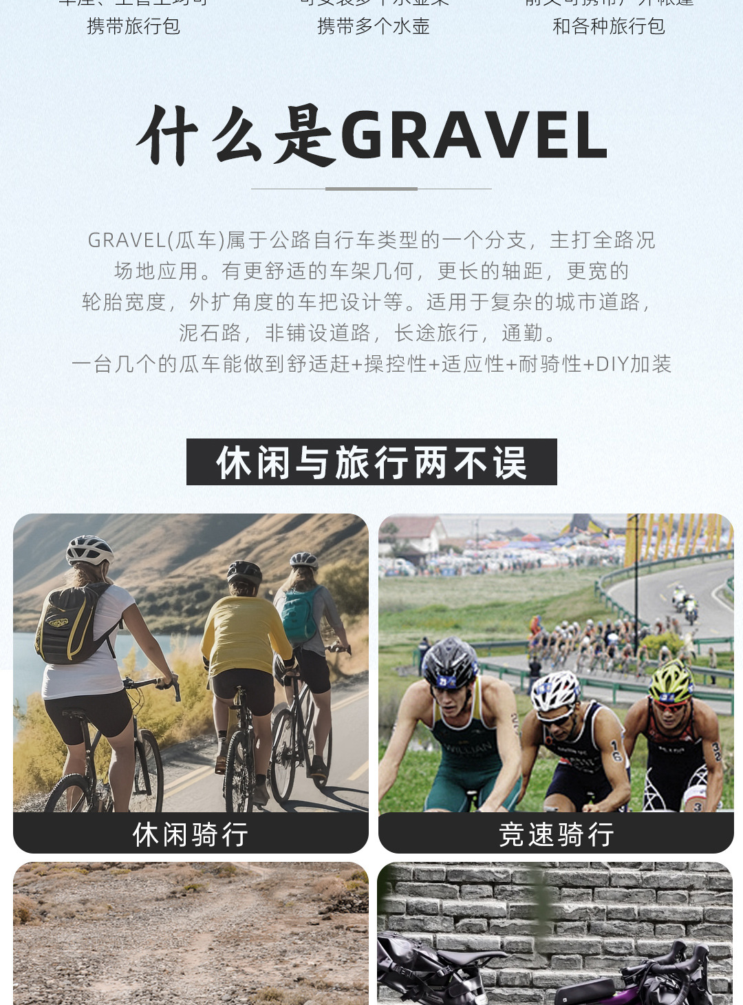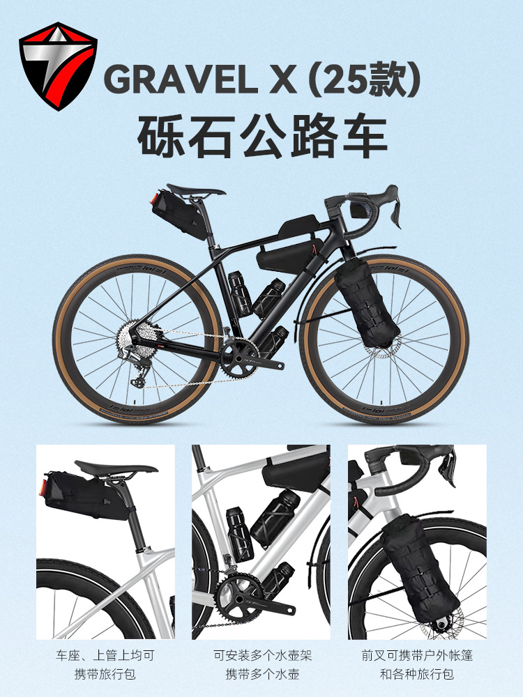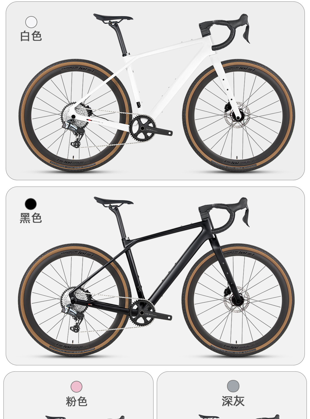 【车架】:Gravel X(碟刹桶轴12*142) 高模量碳纤维/专业级碎石公路/内走线