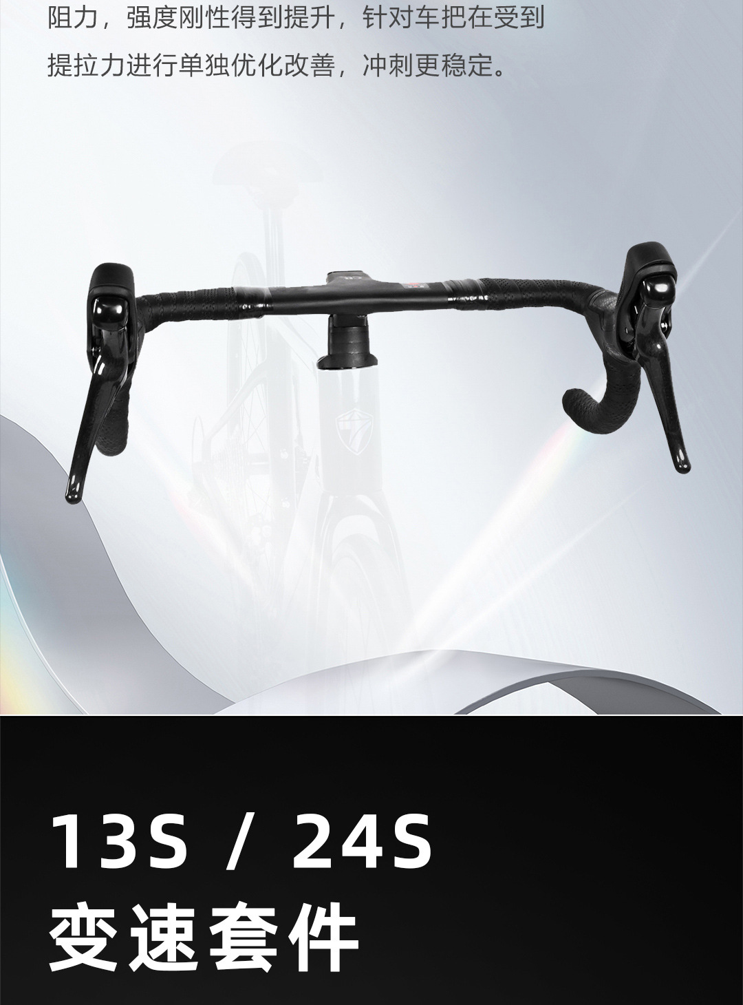 【车把】:高模量碳纤维/破风一体弯把及把立420*90mm/全内走线