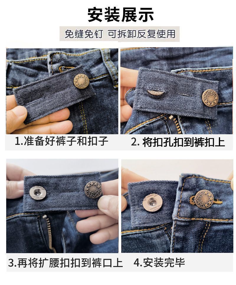 Безшитые повседневные брюки с длинными пряжками Съемная талия небольшая на большие пуговицы Джинсы Регулировка талии Расширение талии
