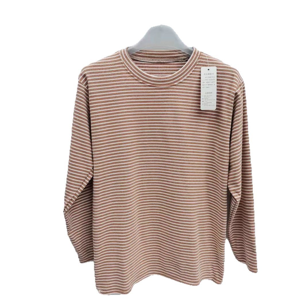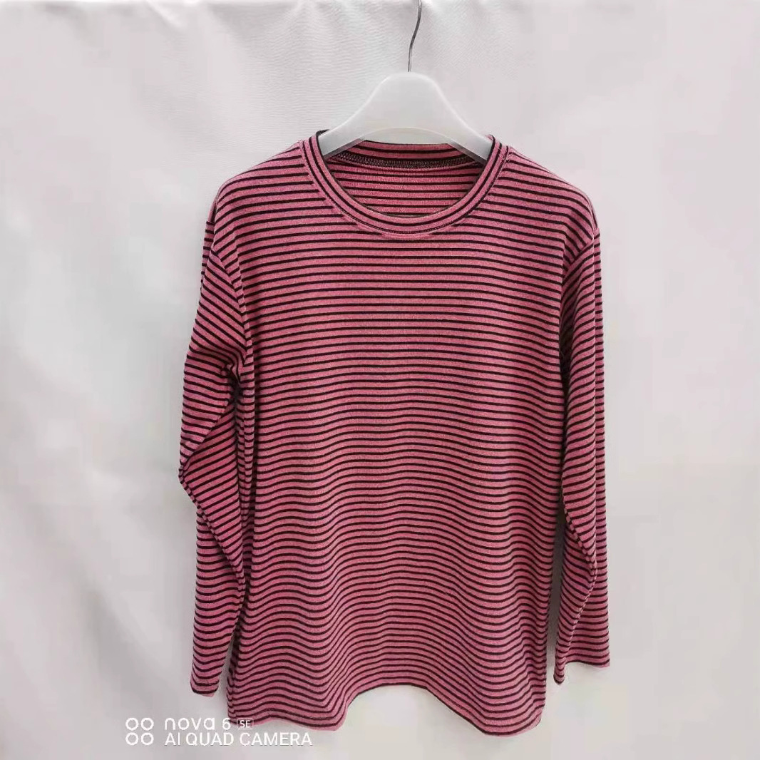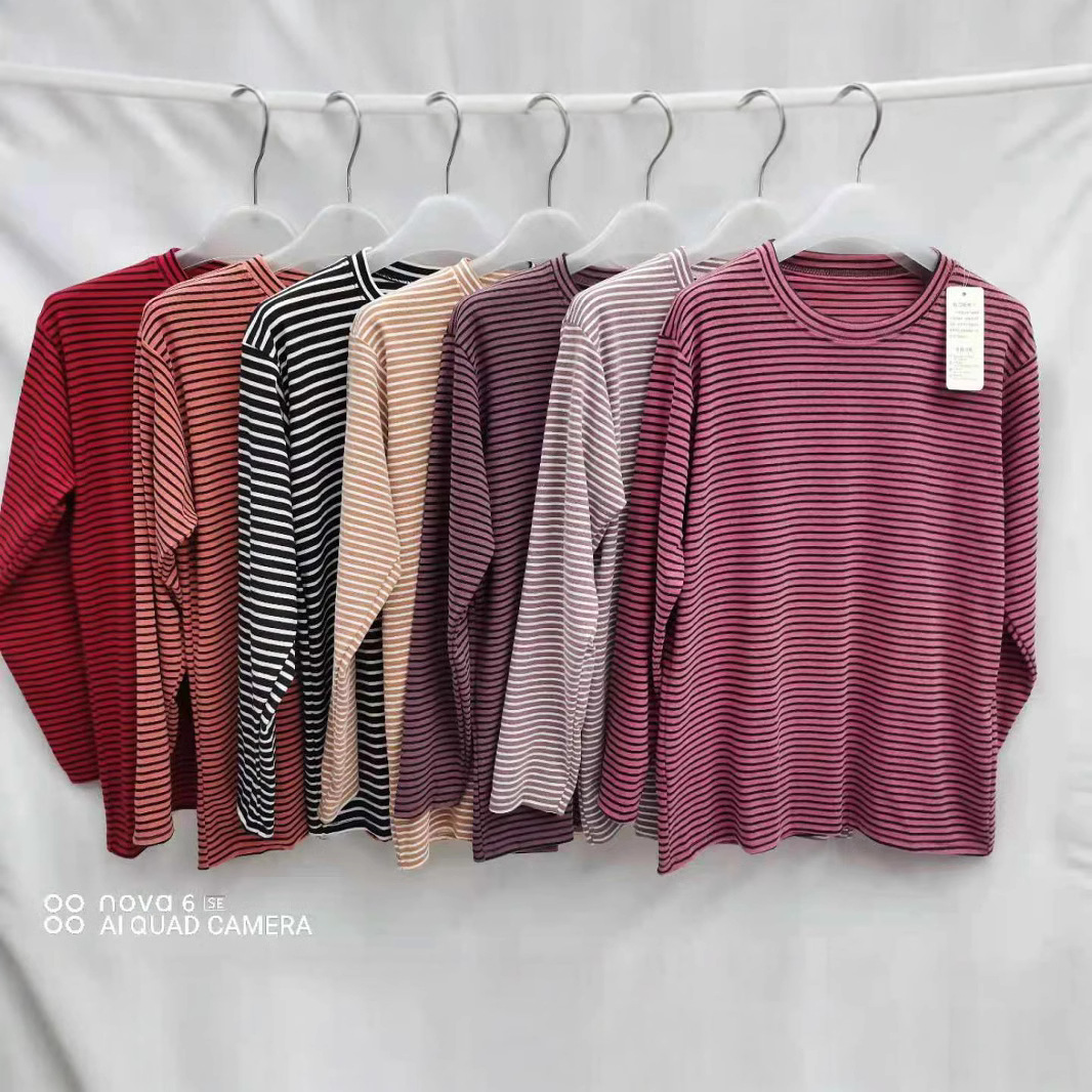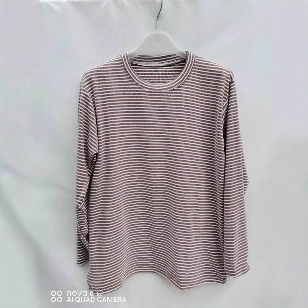 Женская весенняя короткая тонкая полосатая топ среднего возраста в полоску с низким воротником нижняя рубашка летняя тонкая футболка с длинными рукавами