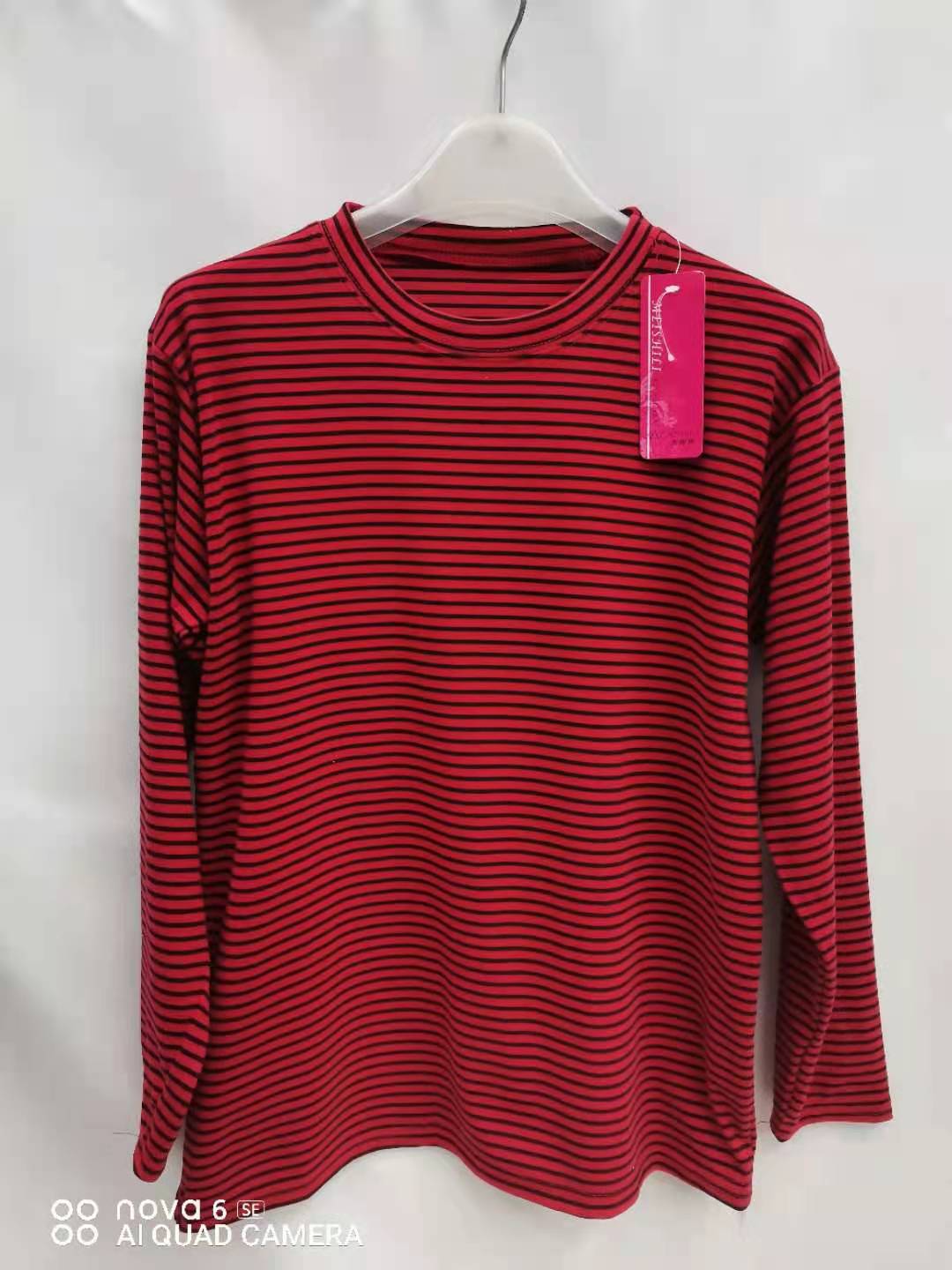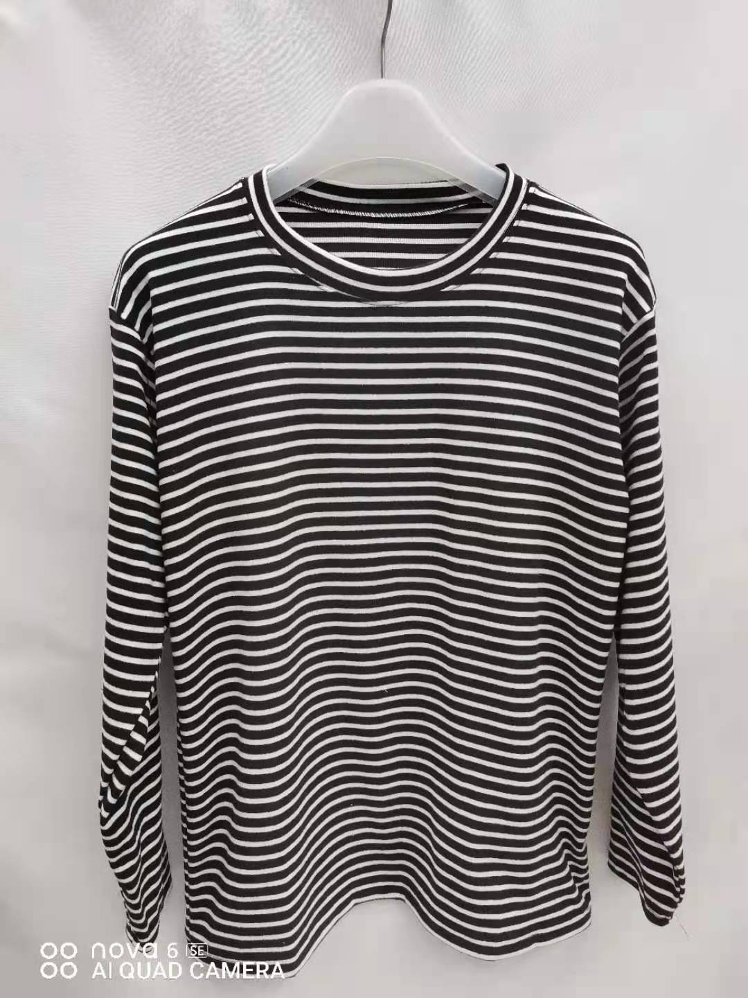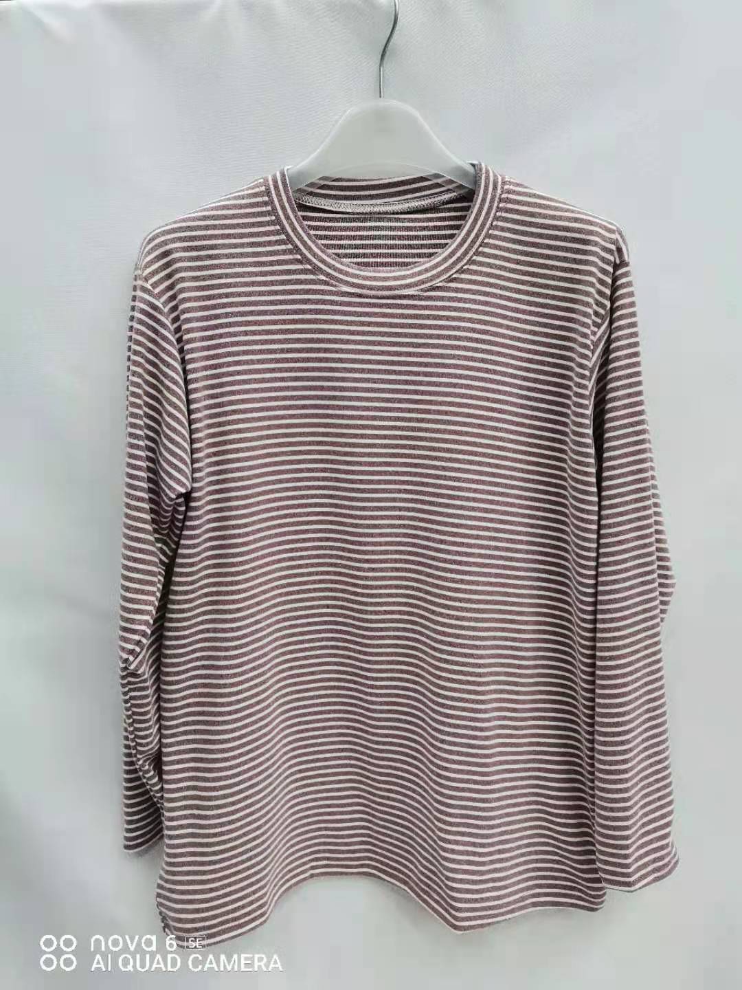 Женская весенняя короткая тонкая полосатая топ среднего возраста в полоску с низким воротником нижняя рубашка летняя тонкая футболка с длинными рукавами