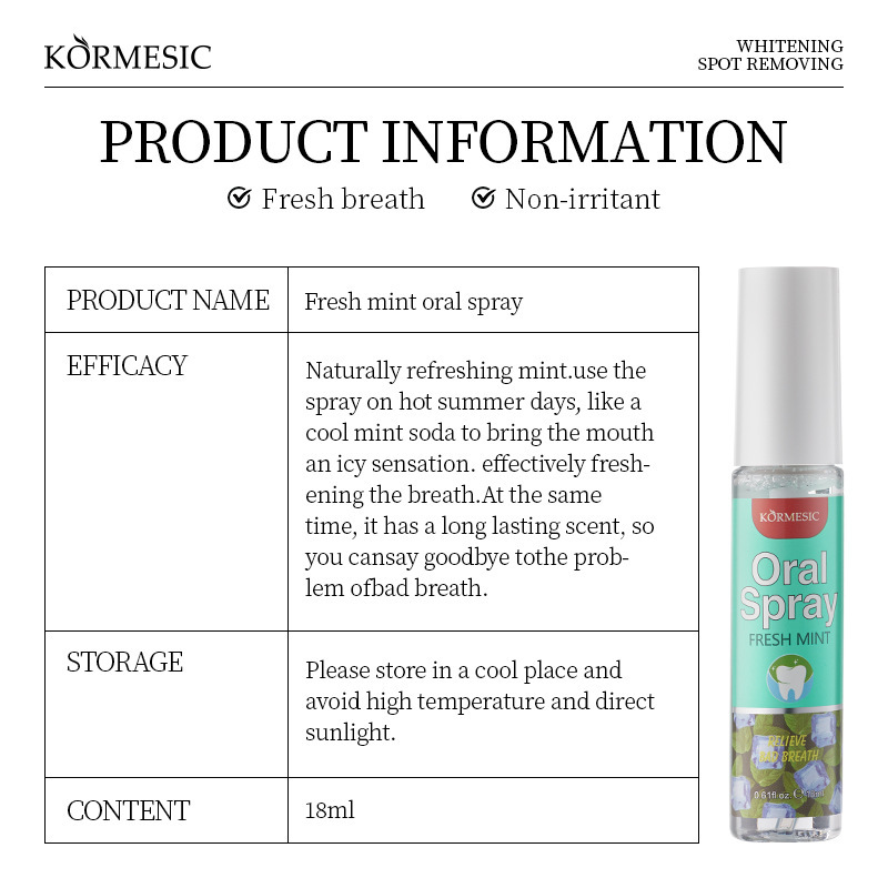 KORMESIC Спрей для полости рта свежей мяты 18 мл [Только для экспорта внешней торговли, продажи на внутреннем рынке запрещены, покупка означает отказ от ответственности и ответственность.