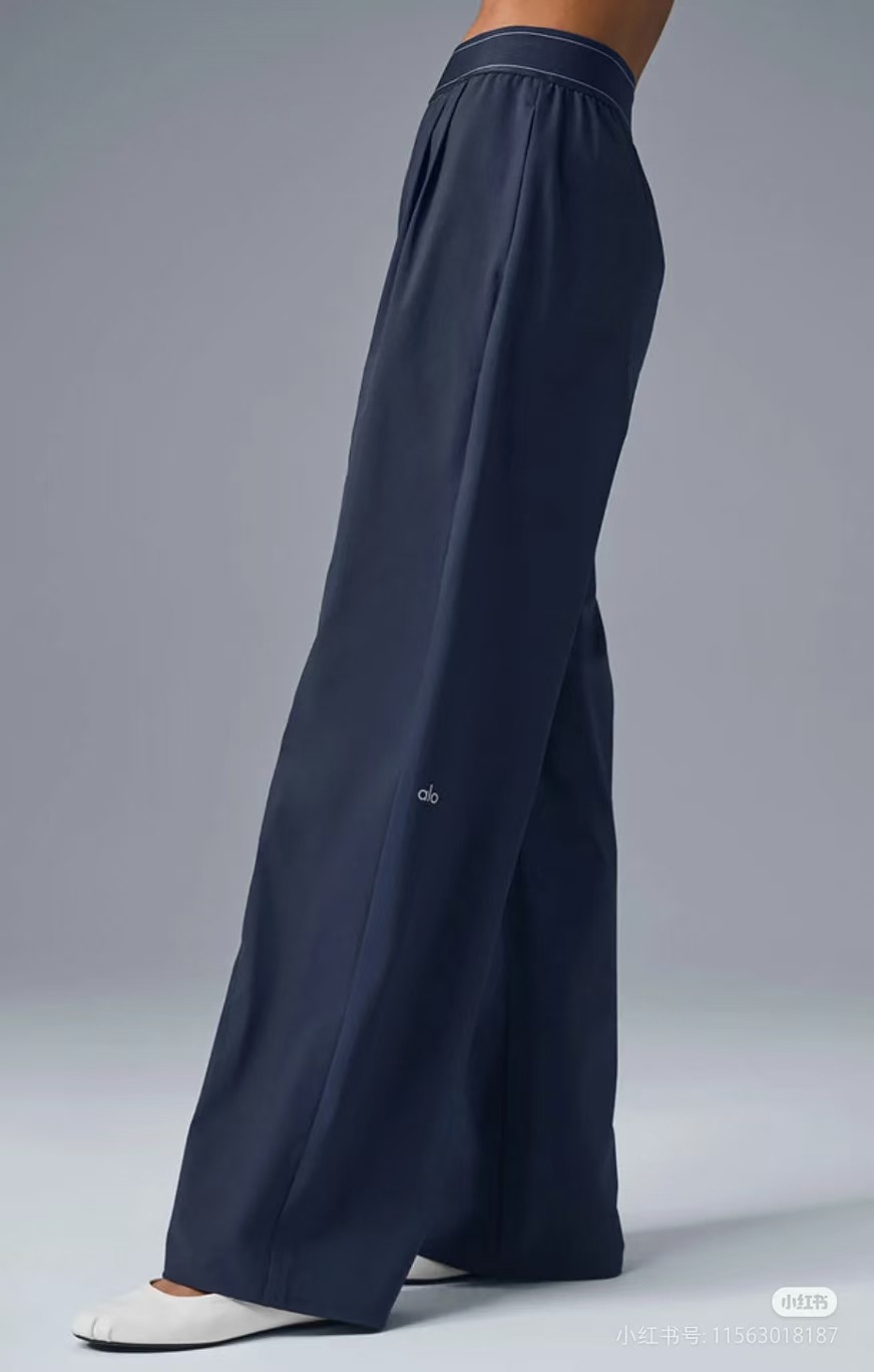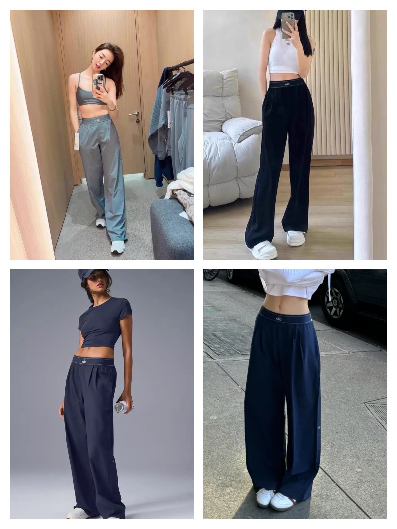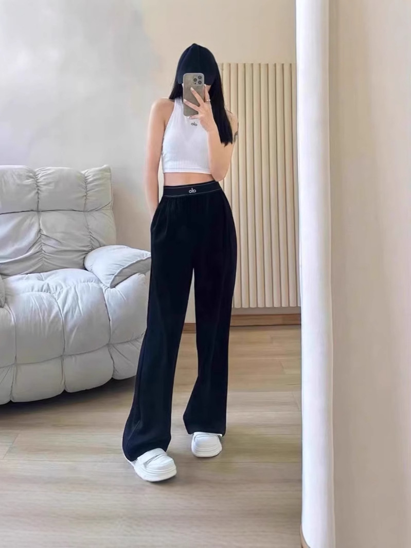 Оригинальные длинные брюки Alo, прямые брюки со светоотражающим логотипом, новинка 2025 года, повседневные легкие спортивные брюки с высокой талией и драпировкой из ледяного шелка