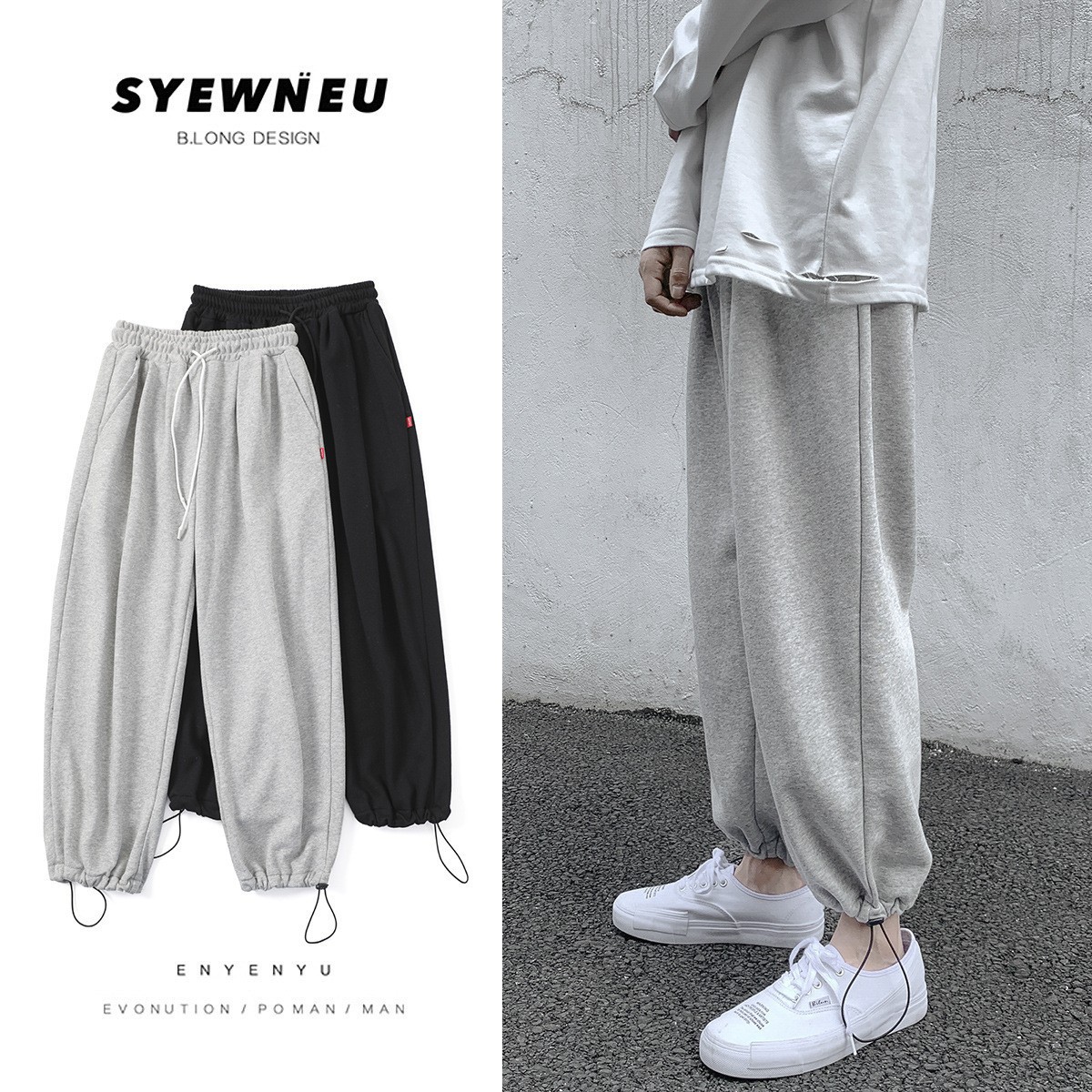 Прямые повседневные брюки марки прилив осенью и зимой свободные хлопковые брюки серые спортивные мужские бархатные толстые простые дикие брюки