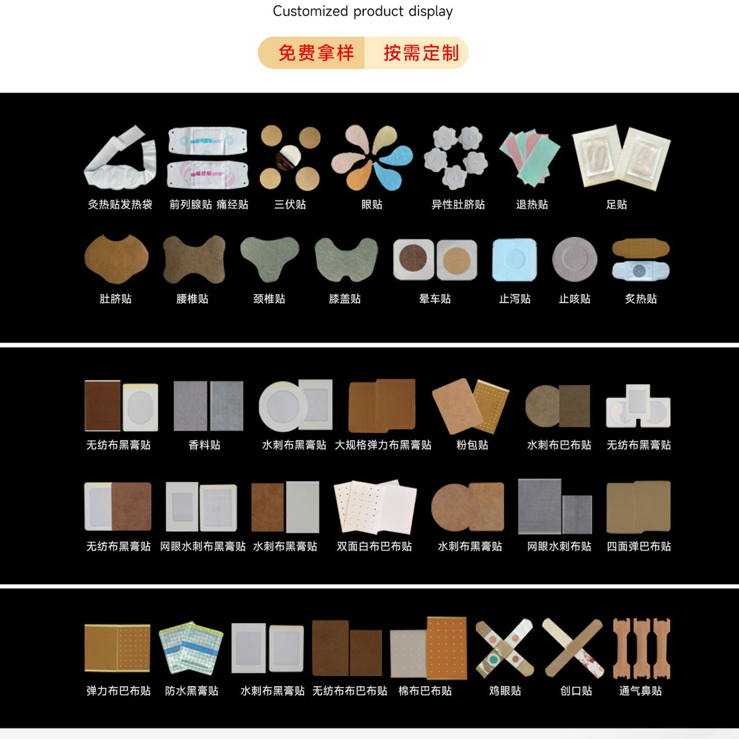 Эластичная ткань 7смх2см.; Поверхностный кукурузный пластырь (ПЭТ-пленка); Нетканый материал 7смх2,2; Белая ткань 7смх2,2см.