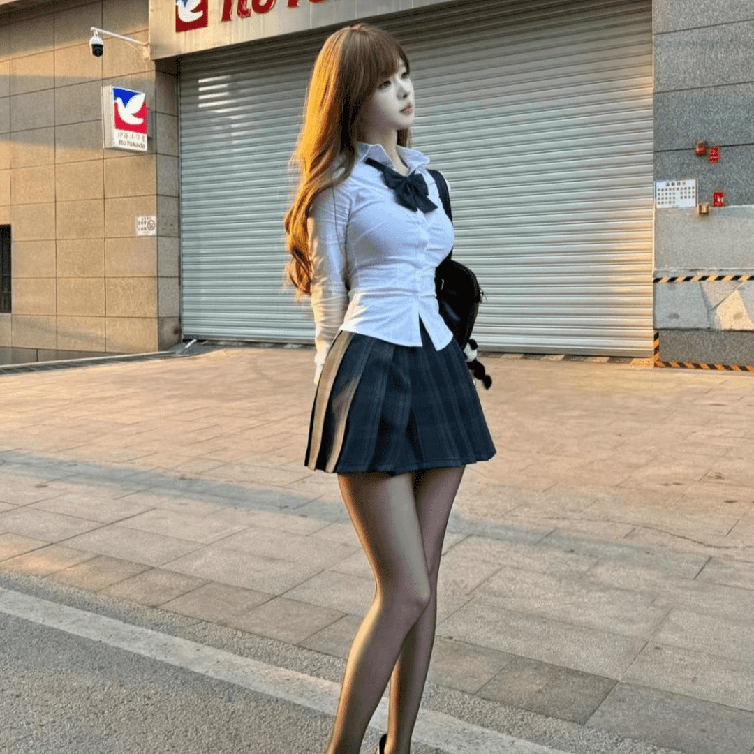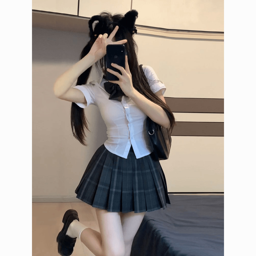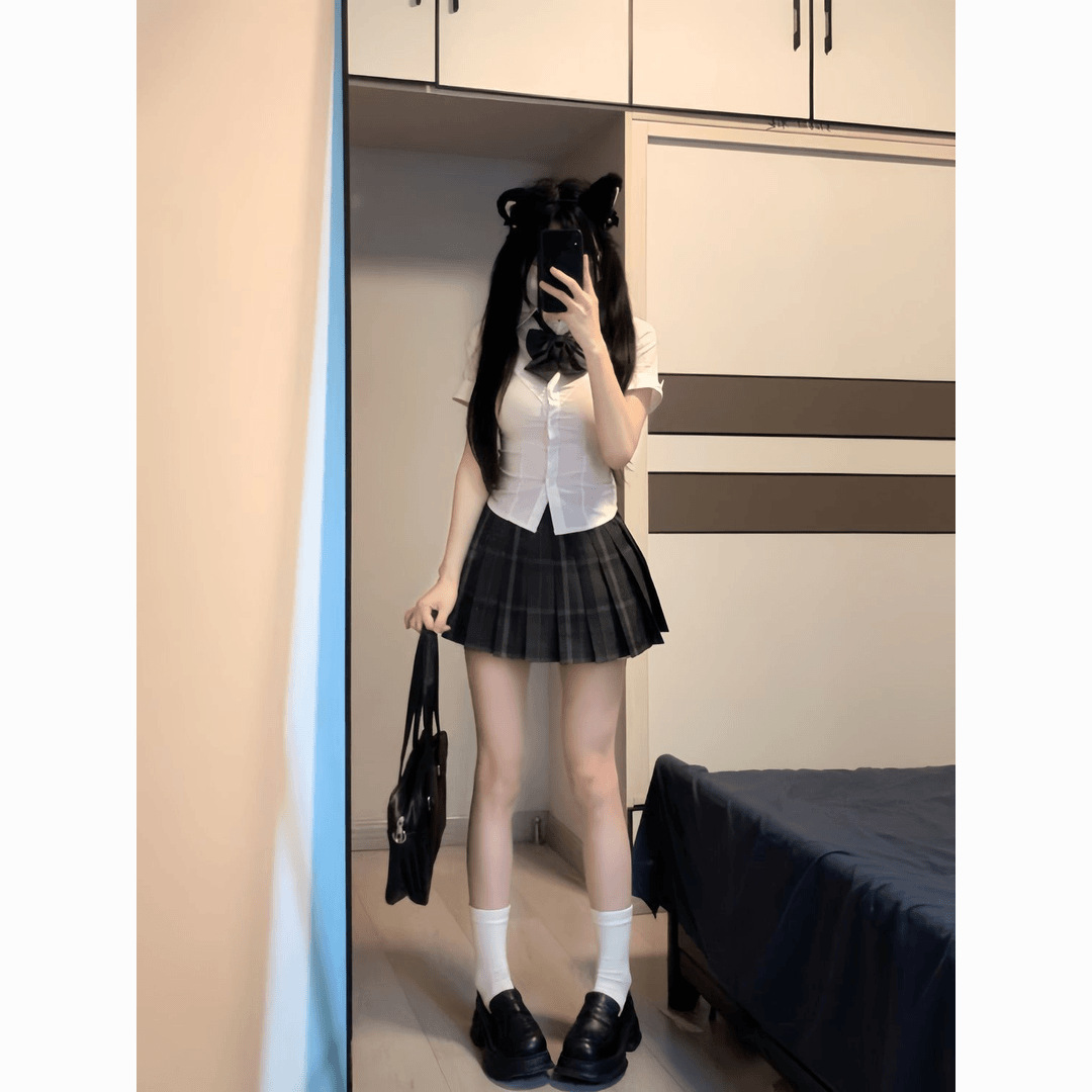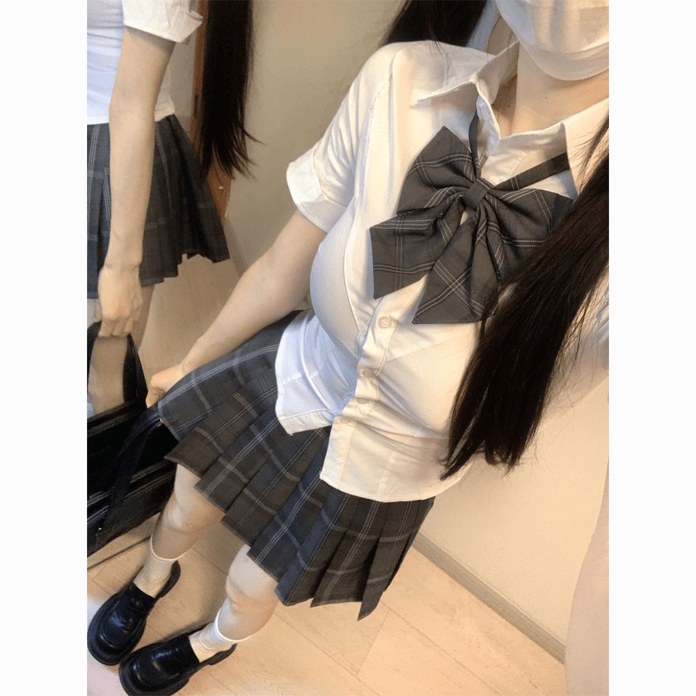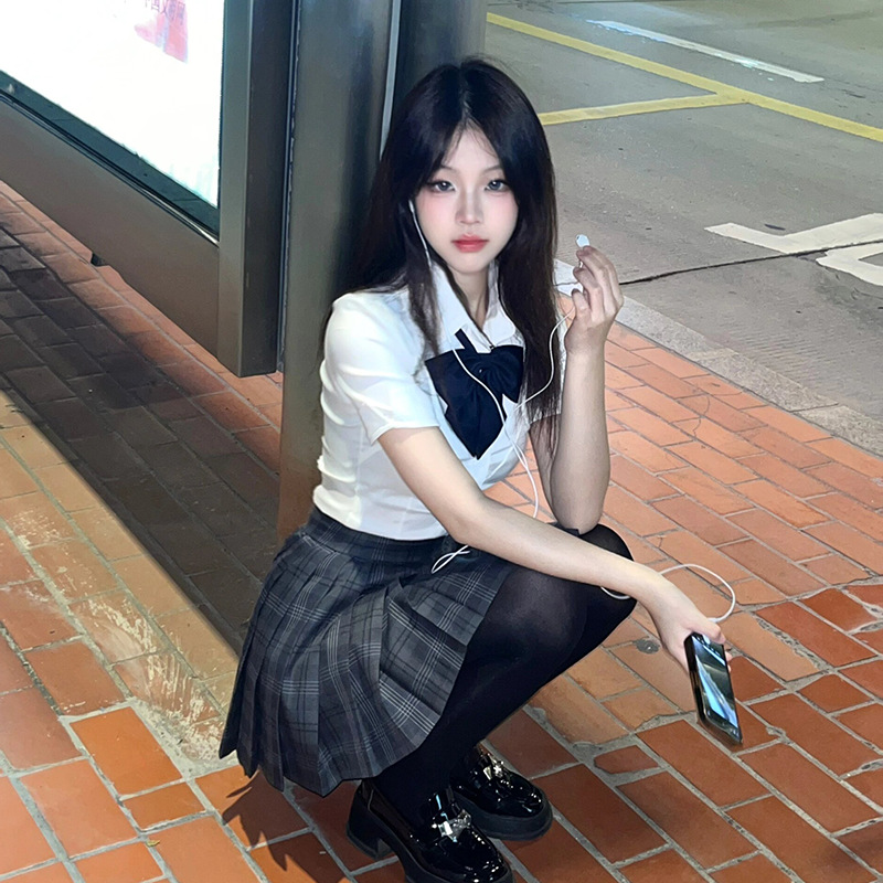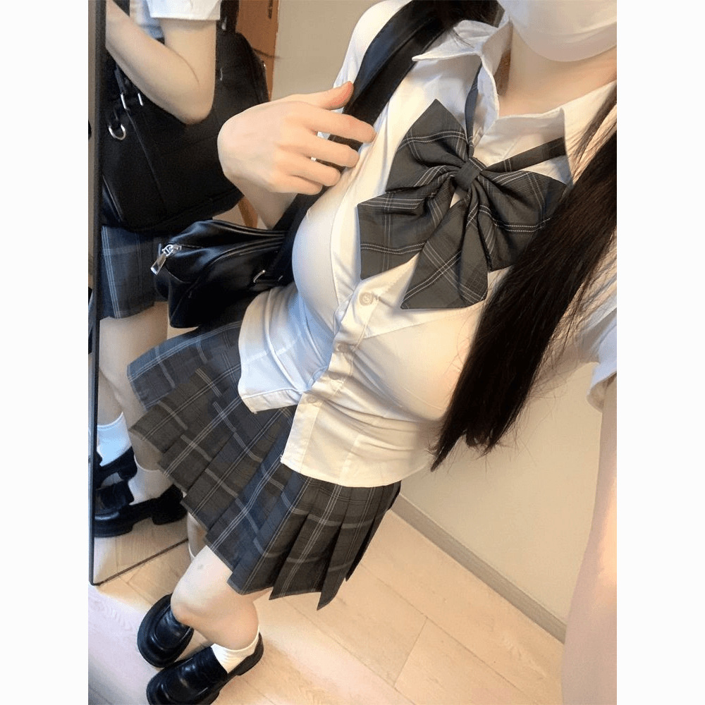 короткие рукава; Длинные рукава; Короткие рукава на талии + галстук-бабочка из углеродного серого цвета + карбоновая серая клетчатая юбка; Длинные рукава на талии + галстук-бабочка из углеродного серого цвета + карбоновая серая клетчатая юбка; Карбоновая серая клетчатая юбка