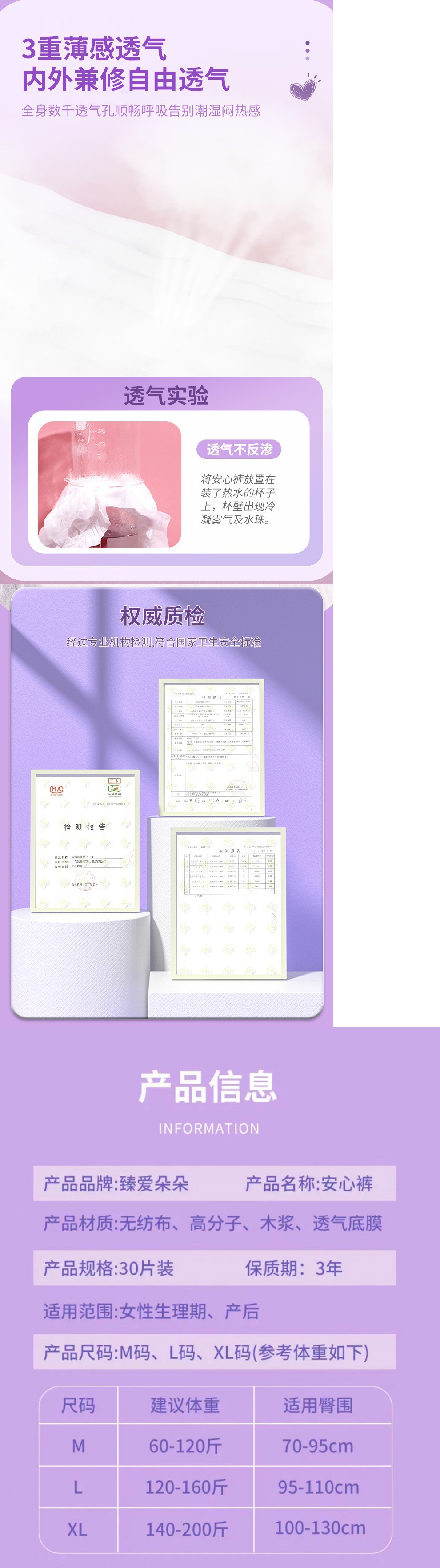 Zhen Love Цветущие пижамы успокаивает брюки Ультратонкие и дышащие ночные герметичные гигиенические салфетки 30