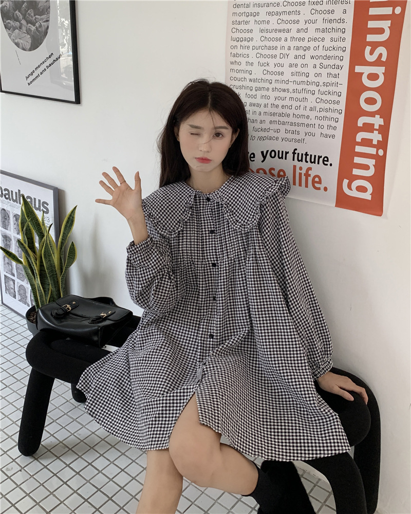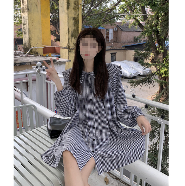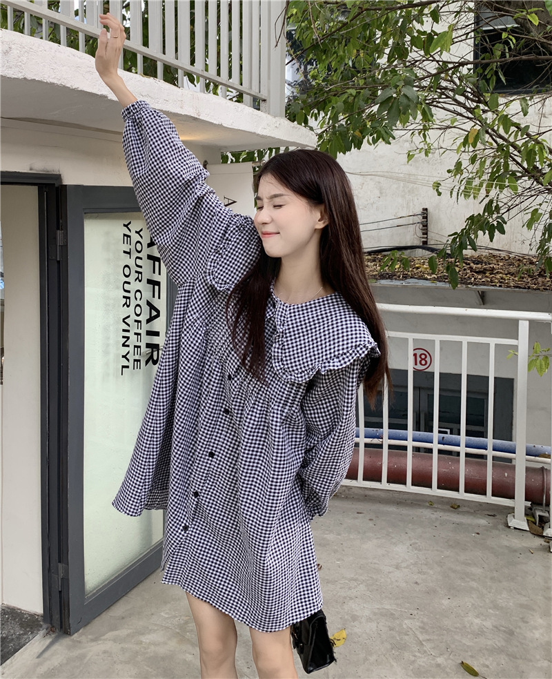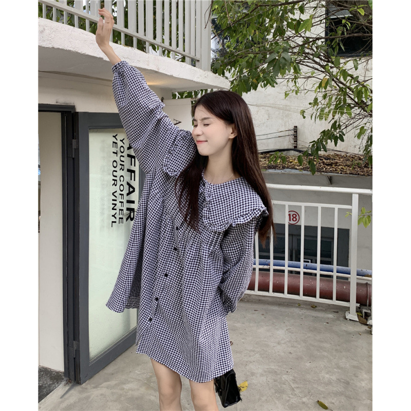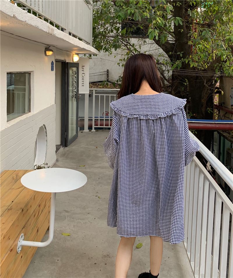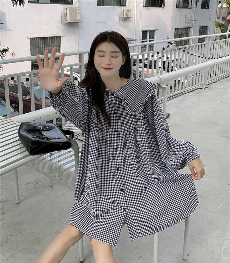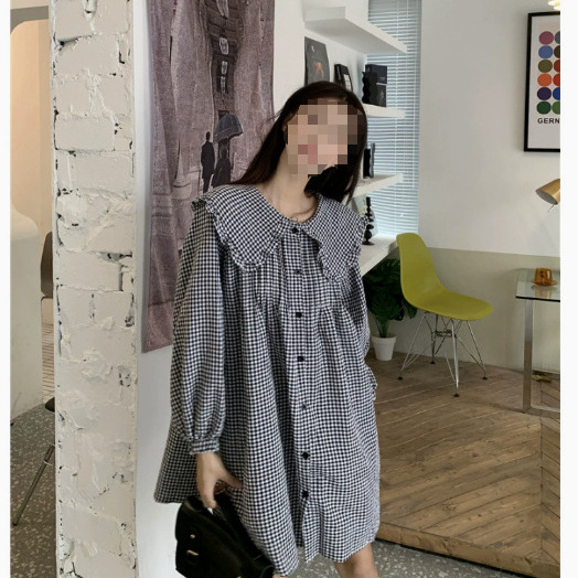 2025 дикий куклы воротник орган плиссированный клетчатый юбка рубашка для беременных топ