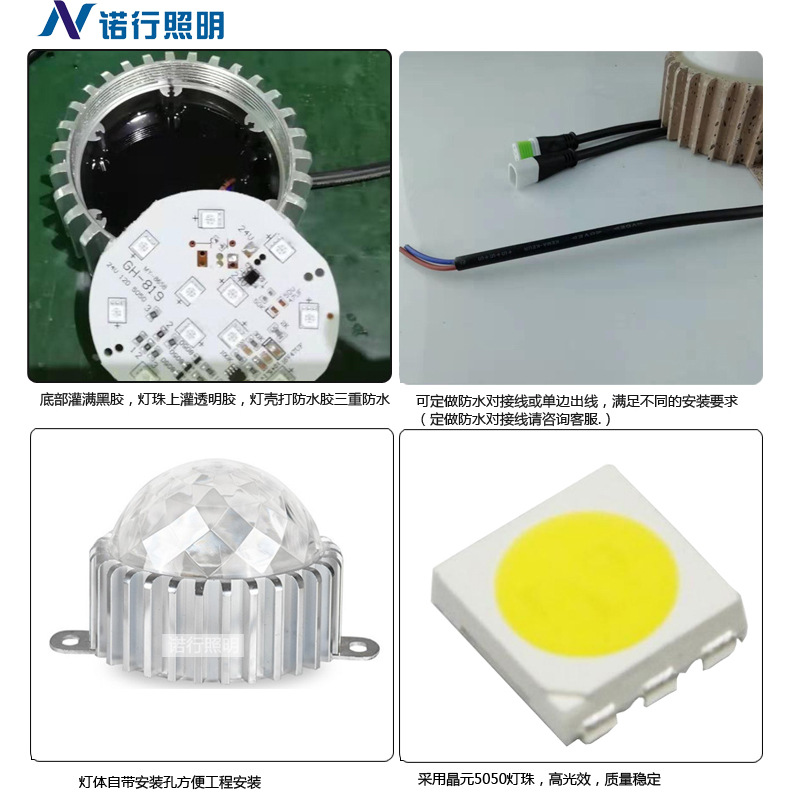 Светодиодный уличный точечный источник света в алюминиевом корпусе, уличный водонепроницаемый круглый монохромный внутренний контроль, цветной внешний контроль, φ50 пиксельный маркиз