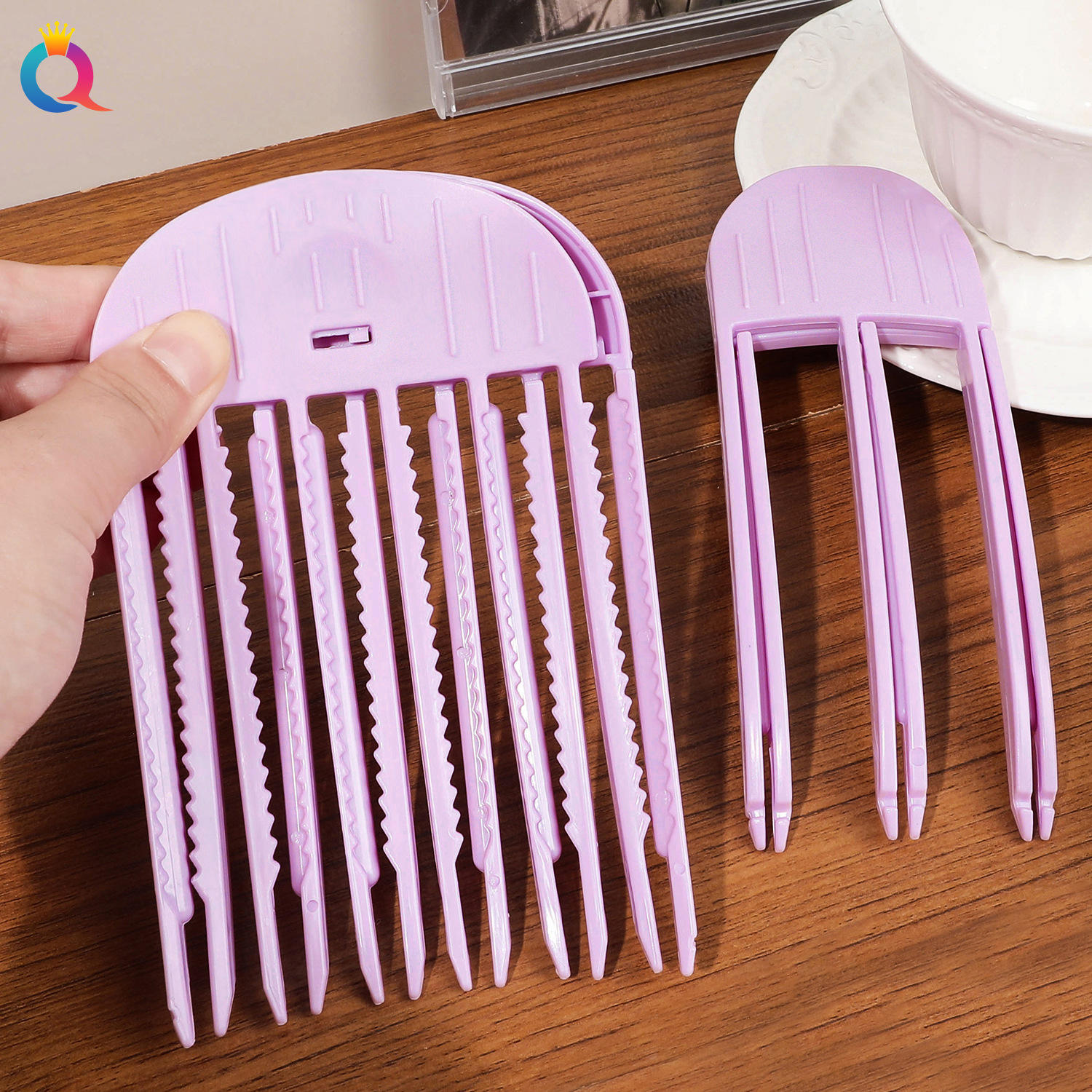 Расческа с тремя зубьями розово-фиолетовый; Шестизубая расческа-розовый фиолетовый; Розовый и фиолетовый комплект из двух предметов (три зубца + шесть зубьев); Гребень-розовый с тремя зубьями; Шестизубая расческа-розовый; Розовый комплект из двух частей (три зубья + шесть зубьев); Гребень с тремя зубьями фиолетовый; Шестизубая расческа-фиолетовый; Фиолетовый комплект из двух частей (три зубья + шесть зубьев); Гребень с тремя зубьями – молочно-белый.; Шестизубая расческа-молочно-белая; Набор из двух частей молочно-белого цвета (три зубья + шесть зубьев); Гребень с тремя зубьями - небесно-голубой; Шестизубая расческа-небо синий; Набор из двух частей небесно-голубого цвета (три зуба + шесть зубов); Гребень с тремя зубьями-черный; Шестизубая расческа-черная; Черный комплект из двух частей (три зубья + шесть зубьев); Трехзубая расческа-темный кофе; Шестизубая расческа-темный кофе; Набор из двух частей темного кофе (три зубья + шесть зубьев); Пушистый клипс-розовый 2шт.; Заколка для корней волос-розовый; Бочка для завивки-желтая; Бочка для завивки-розовая; Бочка для завивки-синяя; Пушистый клипс-желтый; Пушистая пудра-оранжевого цвета; Пушистый клипс-зеленый; Заколка для волос-черная, 2 шт.; Шпилька-синяя 2 шт.; Шпилька-розовая 2шт.; Шпилька-зеленая 2шт.; Шпилька-фиолетовая 2 шт.; Черная пластиковая расческа [обновленная версия]; Розовая пластиковая расческа [обновленная версия]; Фиолетовый пластиковый гребень [обновленная версия]