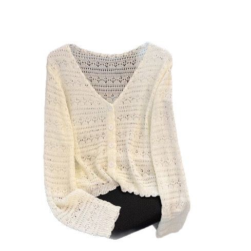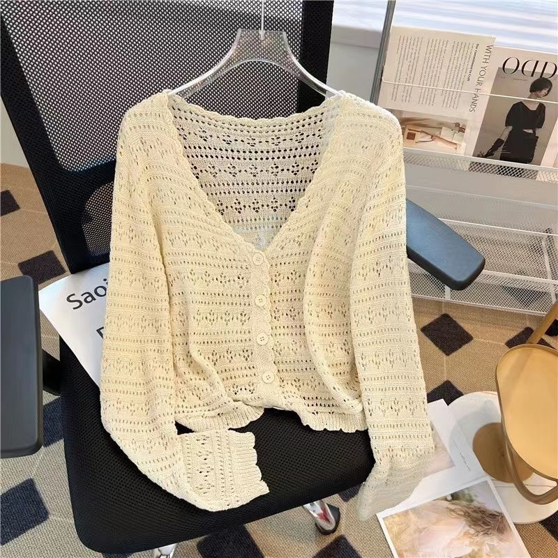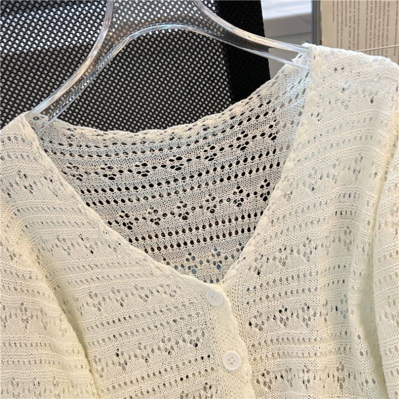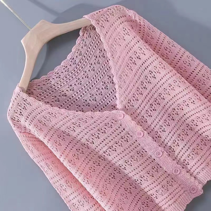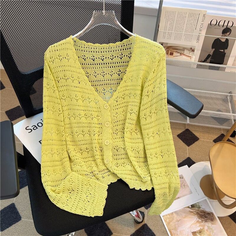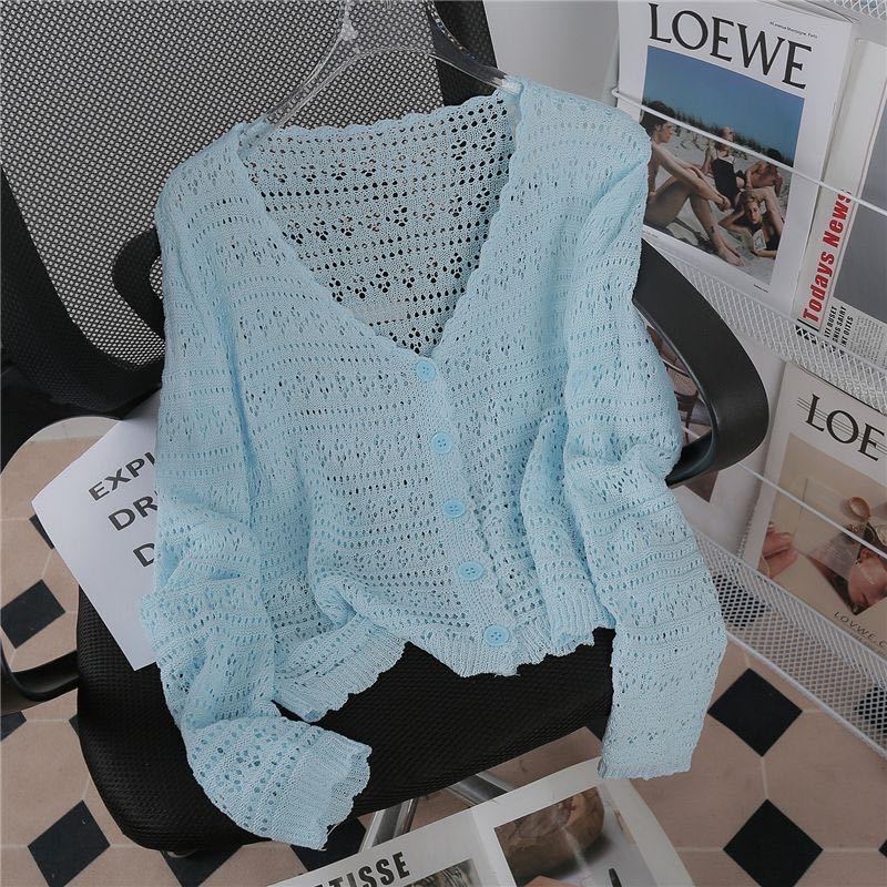 Летний V-образный полый трикотажный свитер для кондиционирования воздуха женский тонкий свитер с длинными рукавами из ледяного шелка солнцезащитный кардиган