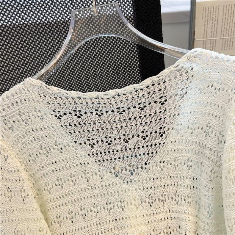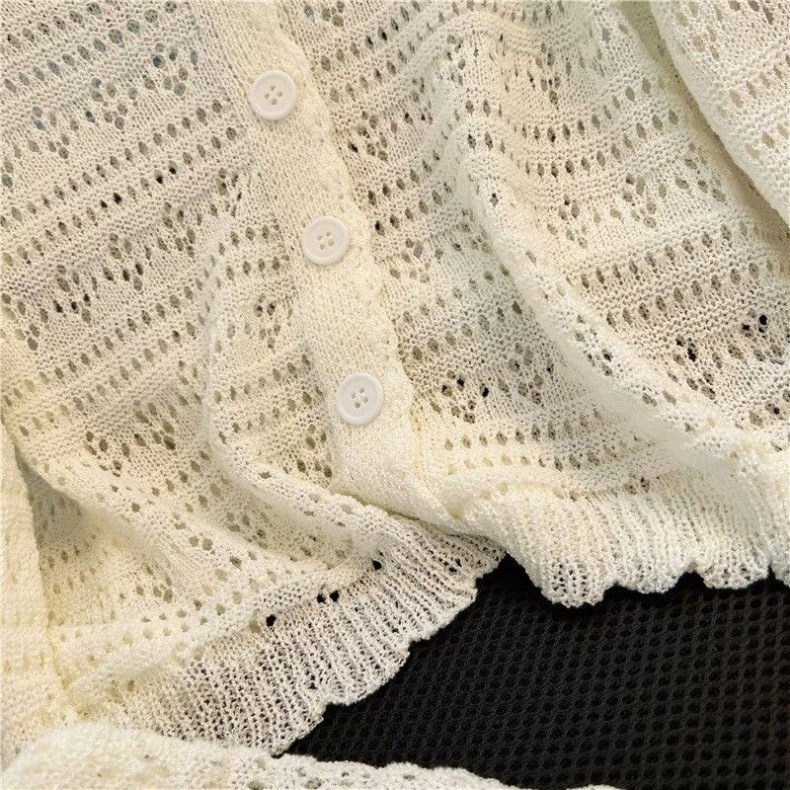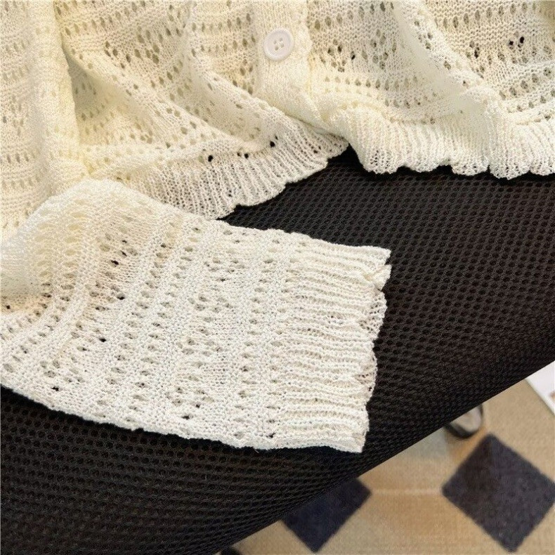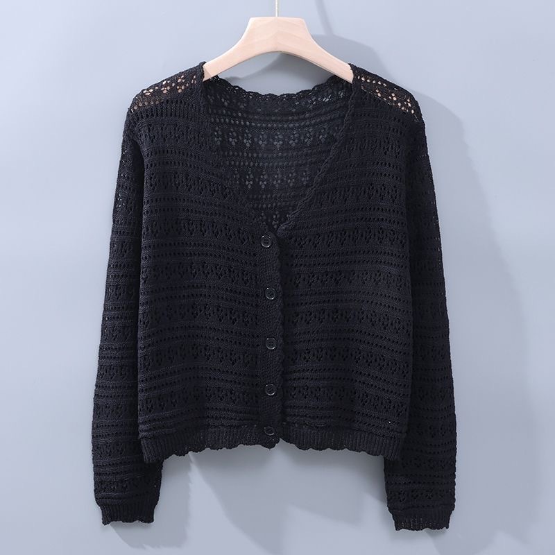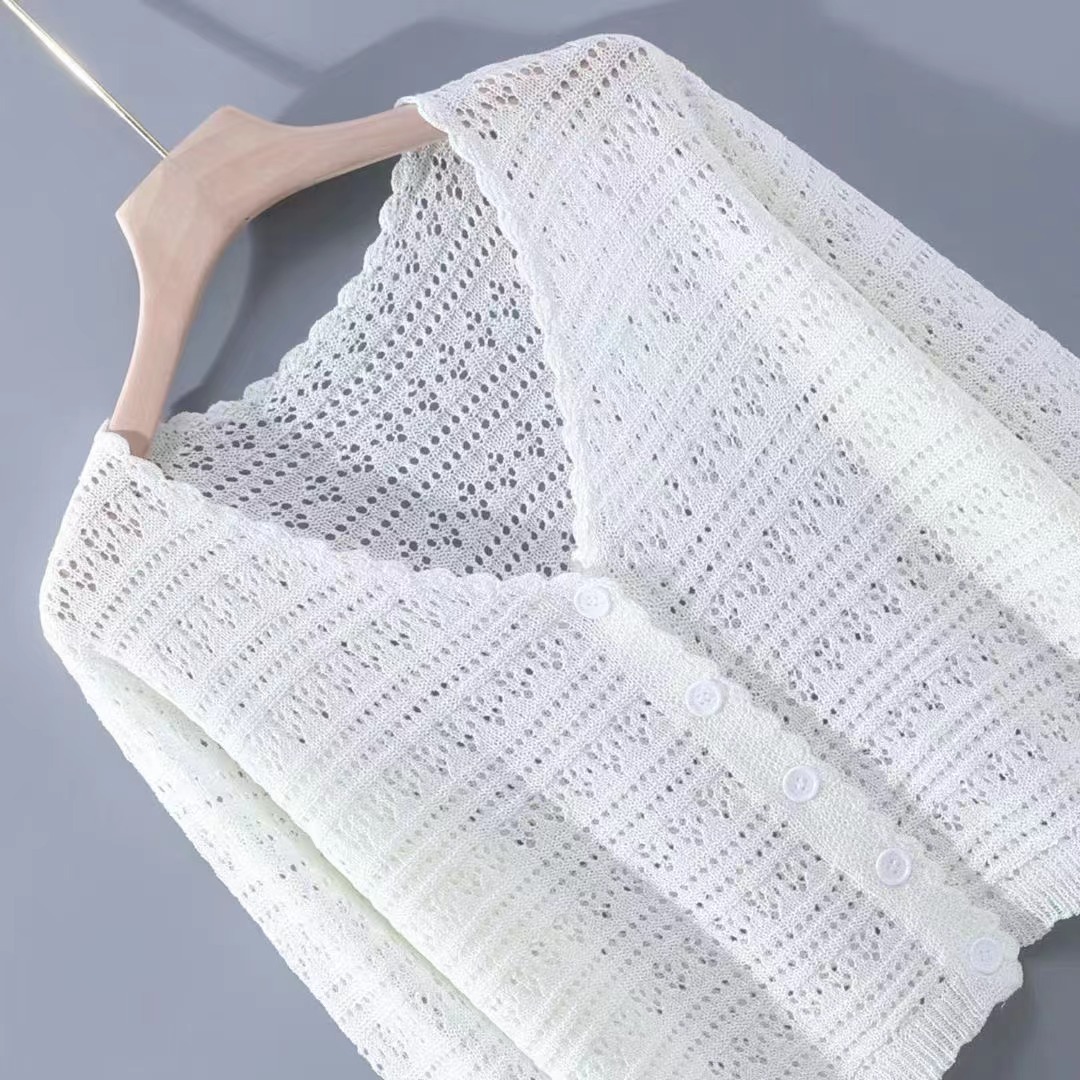 Летний V-образный полый трикотажный свитер для кондиционирования воздуха женский тонкий свитер с длинными рукавами из ледяного шелка солнцезащитный кардиган