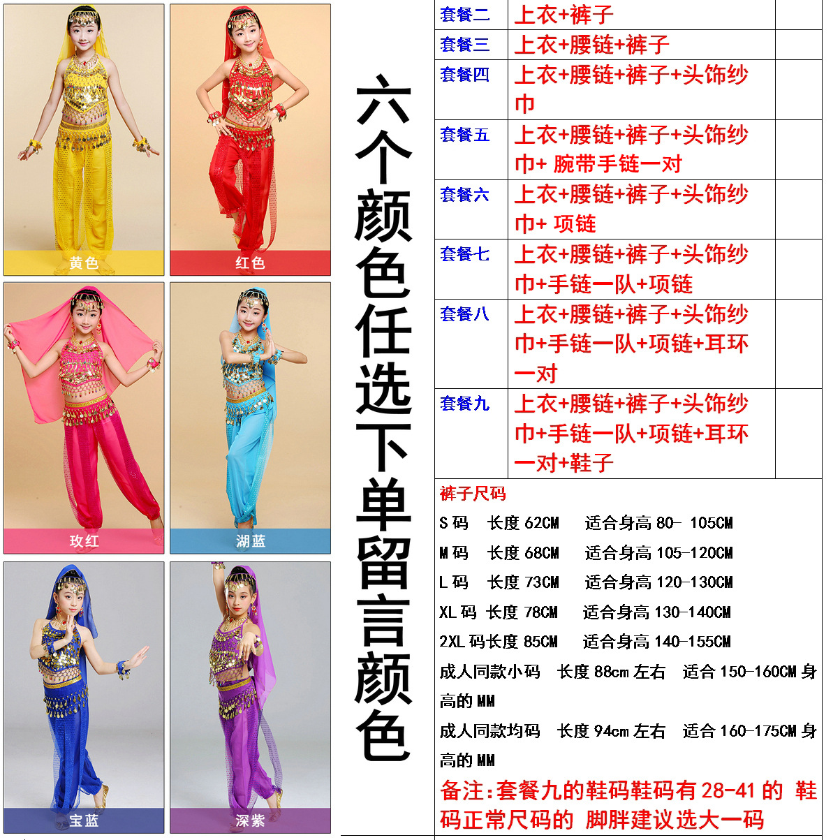 上衣+腰链+裤子+头饰纱巾+手链一队+项链+耳环 |