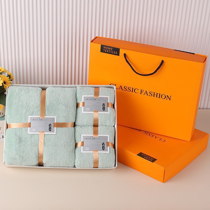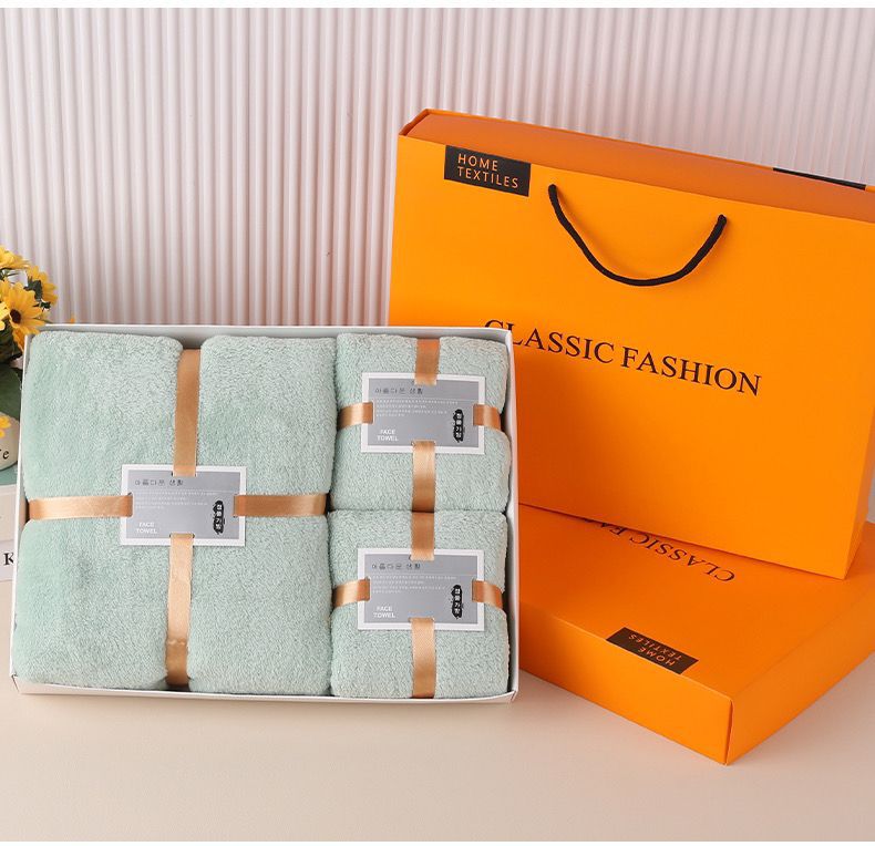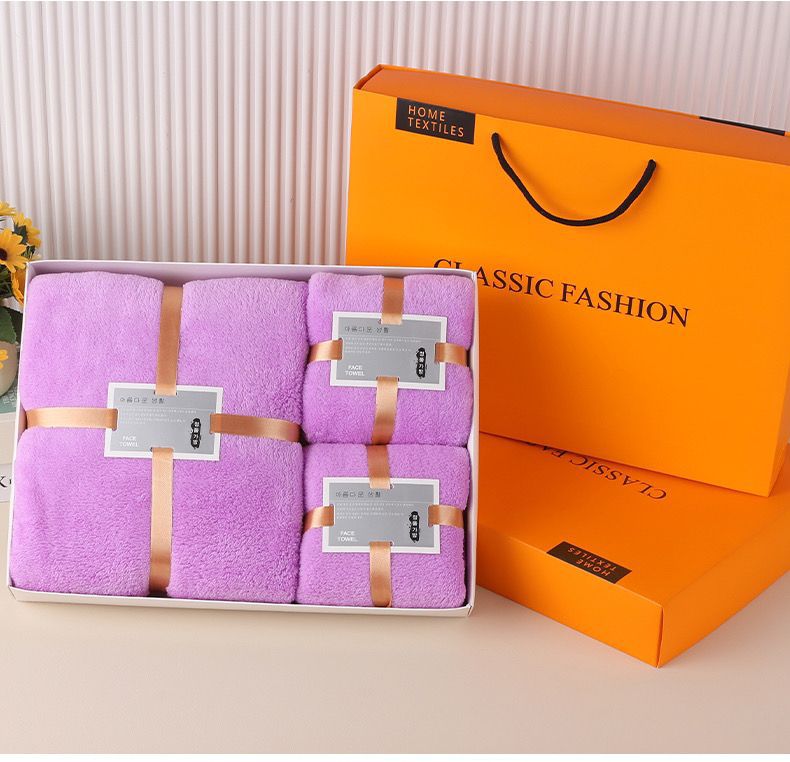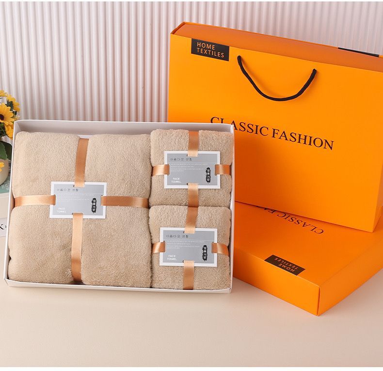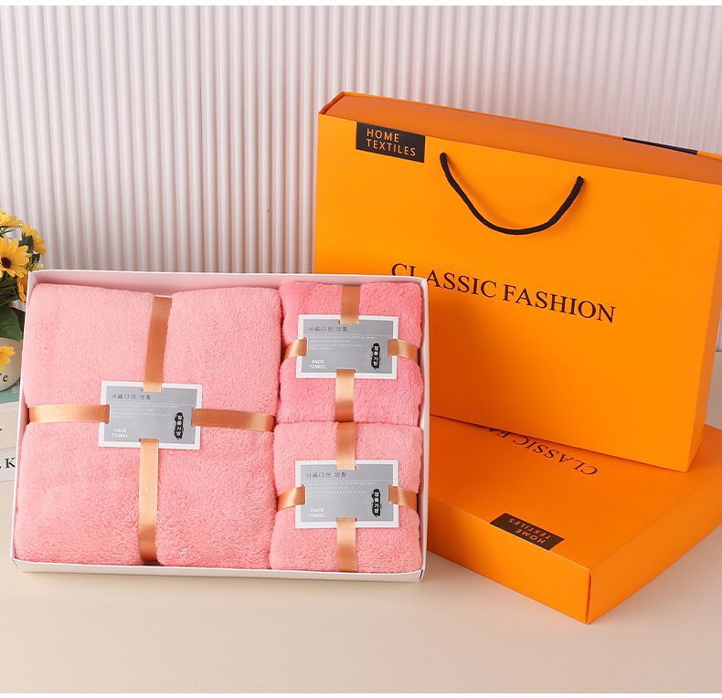 Подарочный набор из кораллового флиса: впитывающее банное полотенце, подарочный комплект из трех предметов для компании, приятный для кожи халат с длинными рукавами.