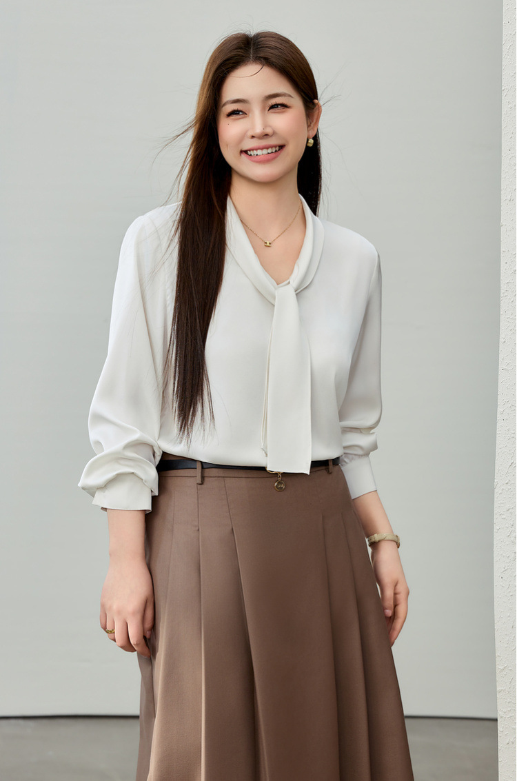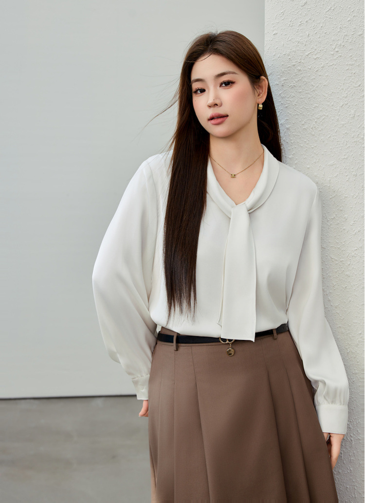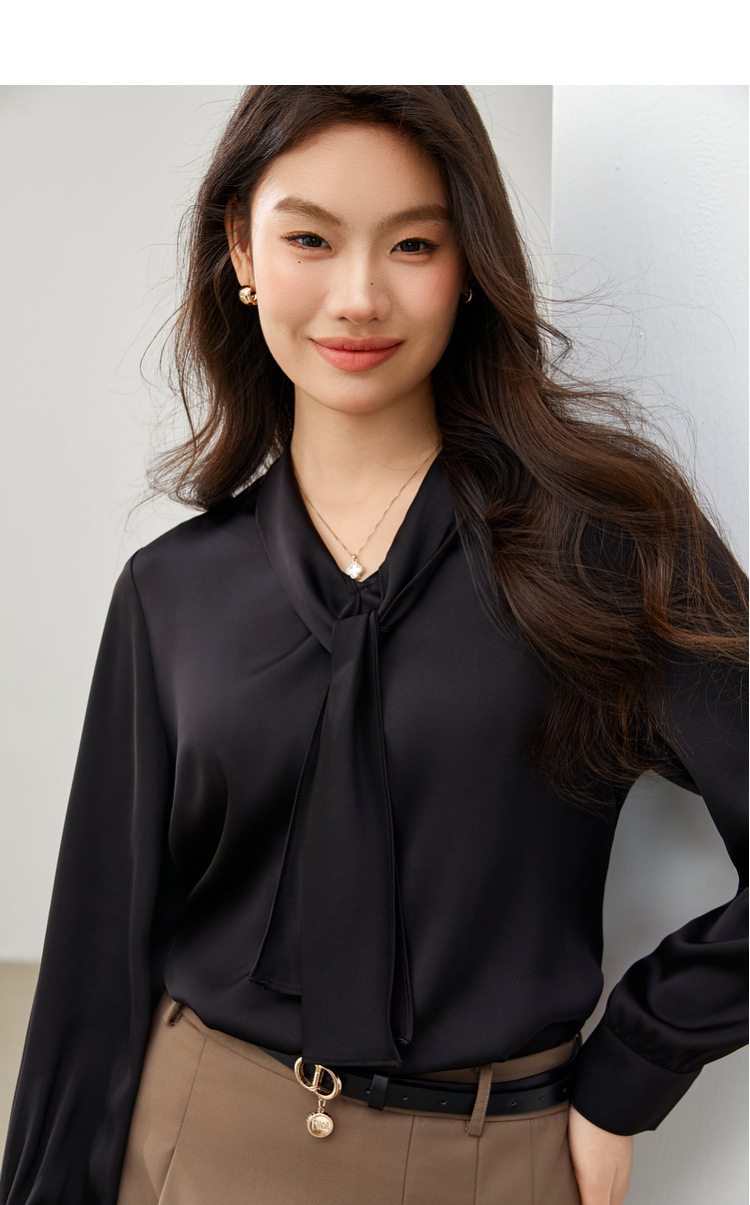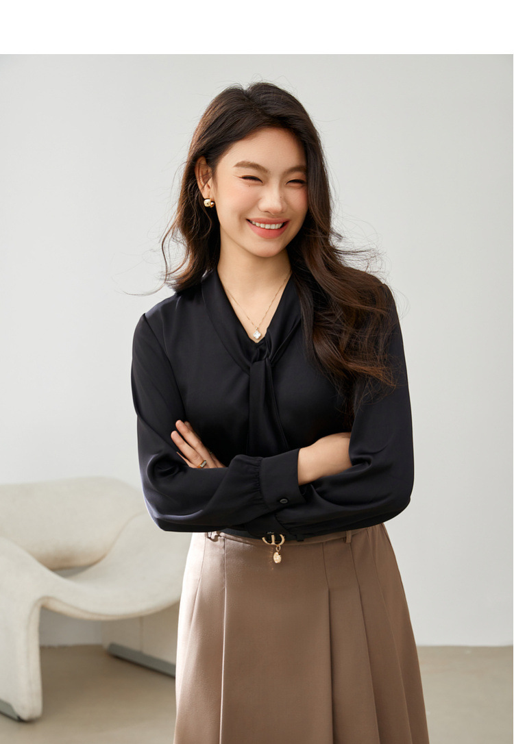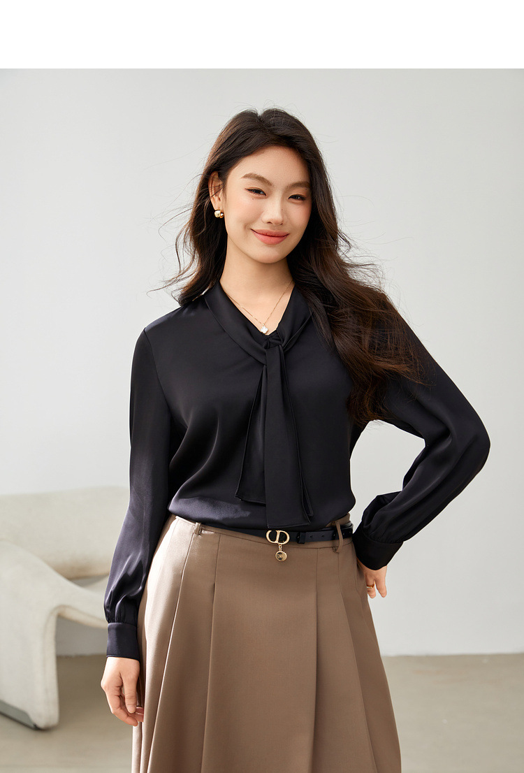 [Французский темперамент атласная текстура лидерская рубашка] Funny Show большой размер женский толстый mm2025 весенний стиль новый