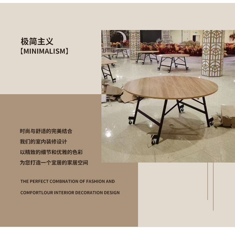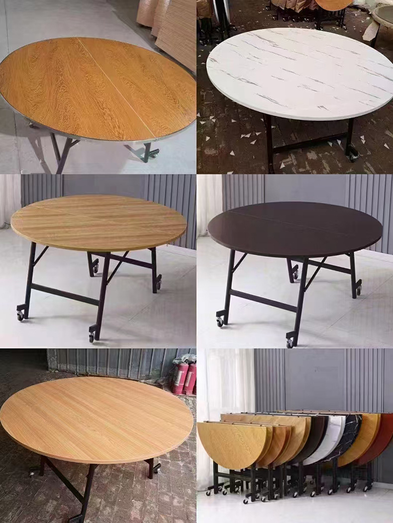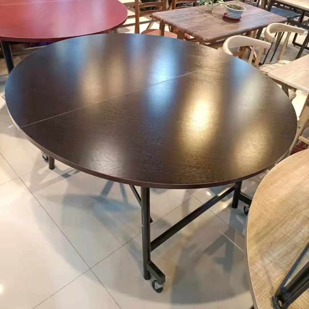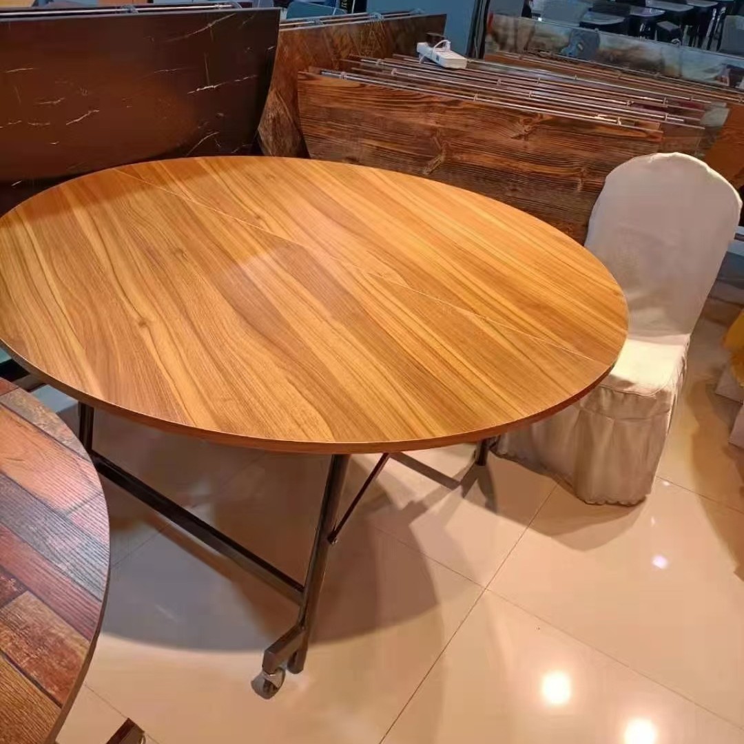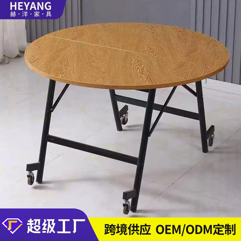 Простой складной стол для хранения для дома, маленькой квартиры, круглый обеденный стол, большой круглый стол для банкета в отеле, мобильный стол на роликах