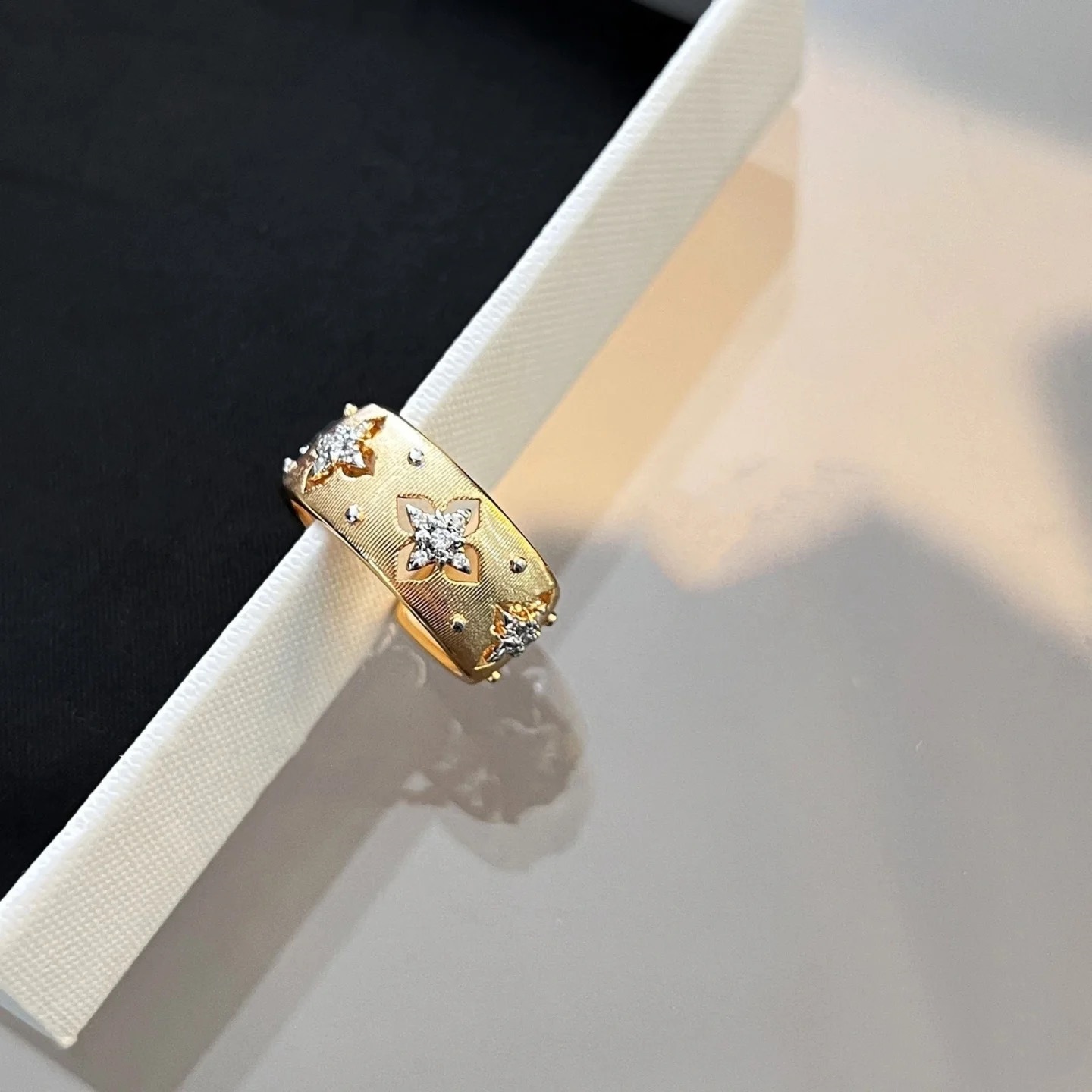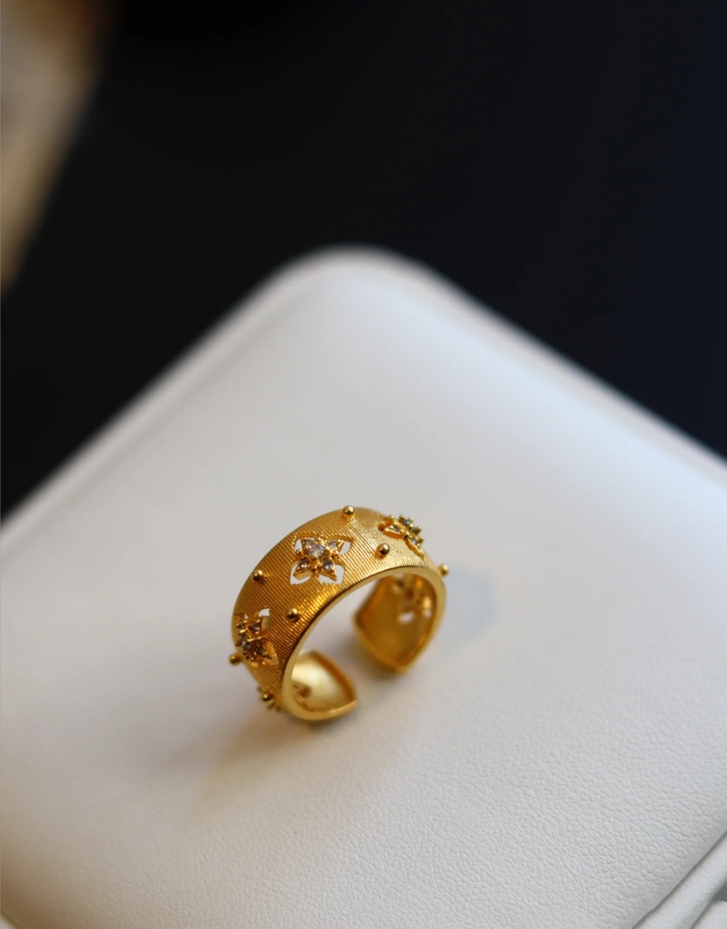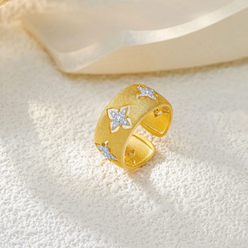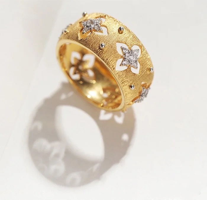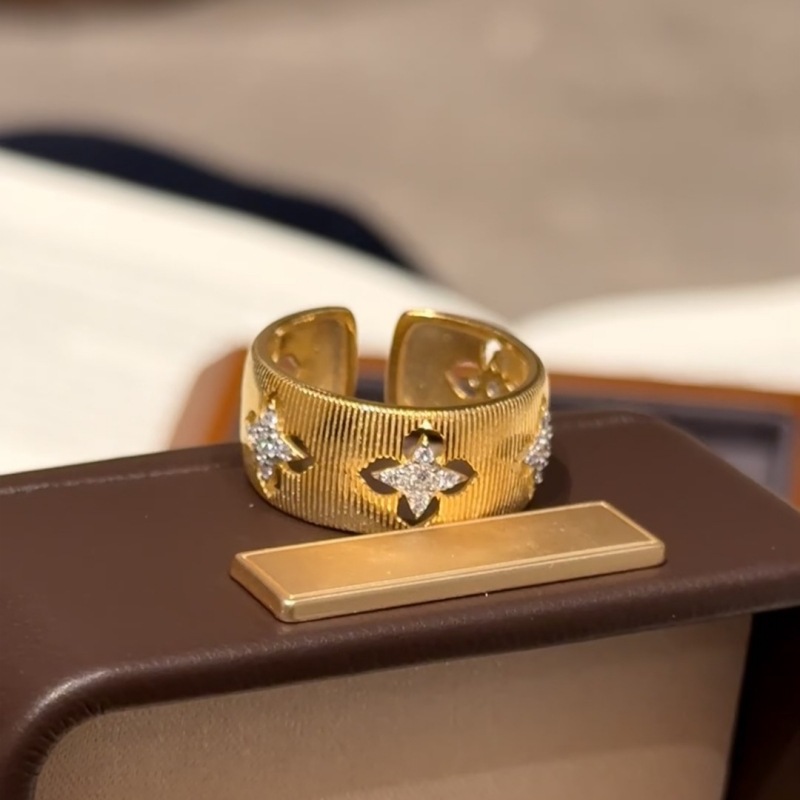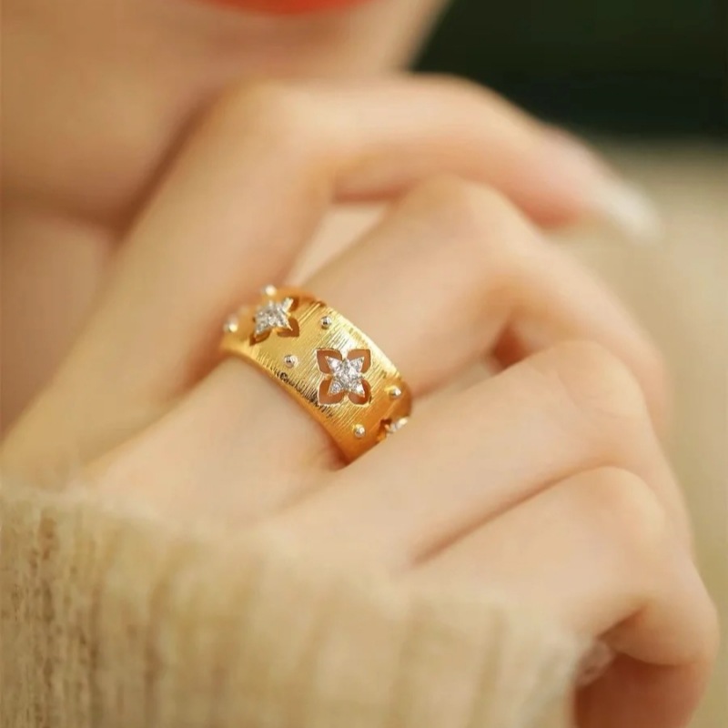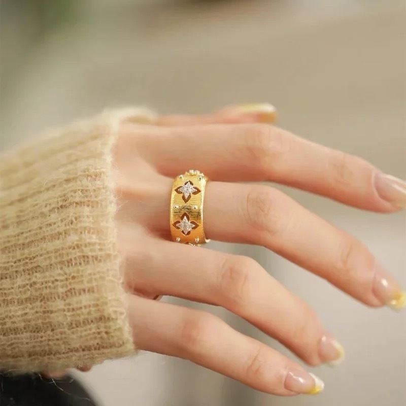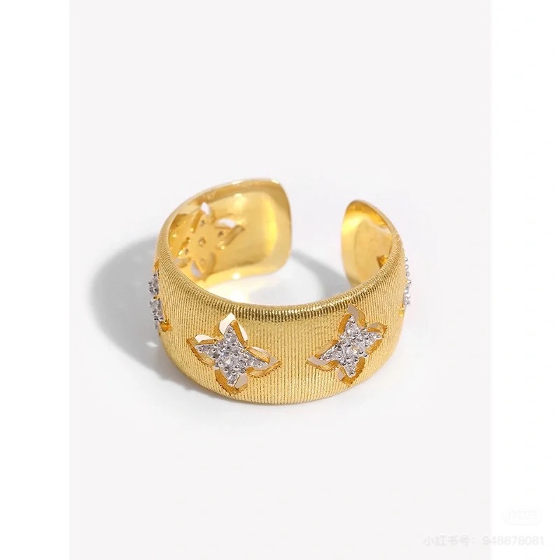 Кольцо из 18-каратного золота с вырезанным четырехлистным клевером au750, цветное золото, женское доступное роскошное высококачественное европейское и американское классическое матовое открытое кольцо