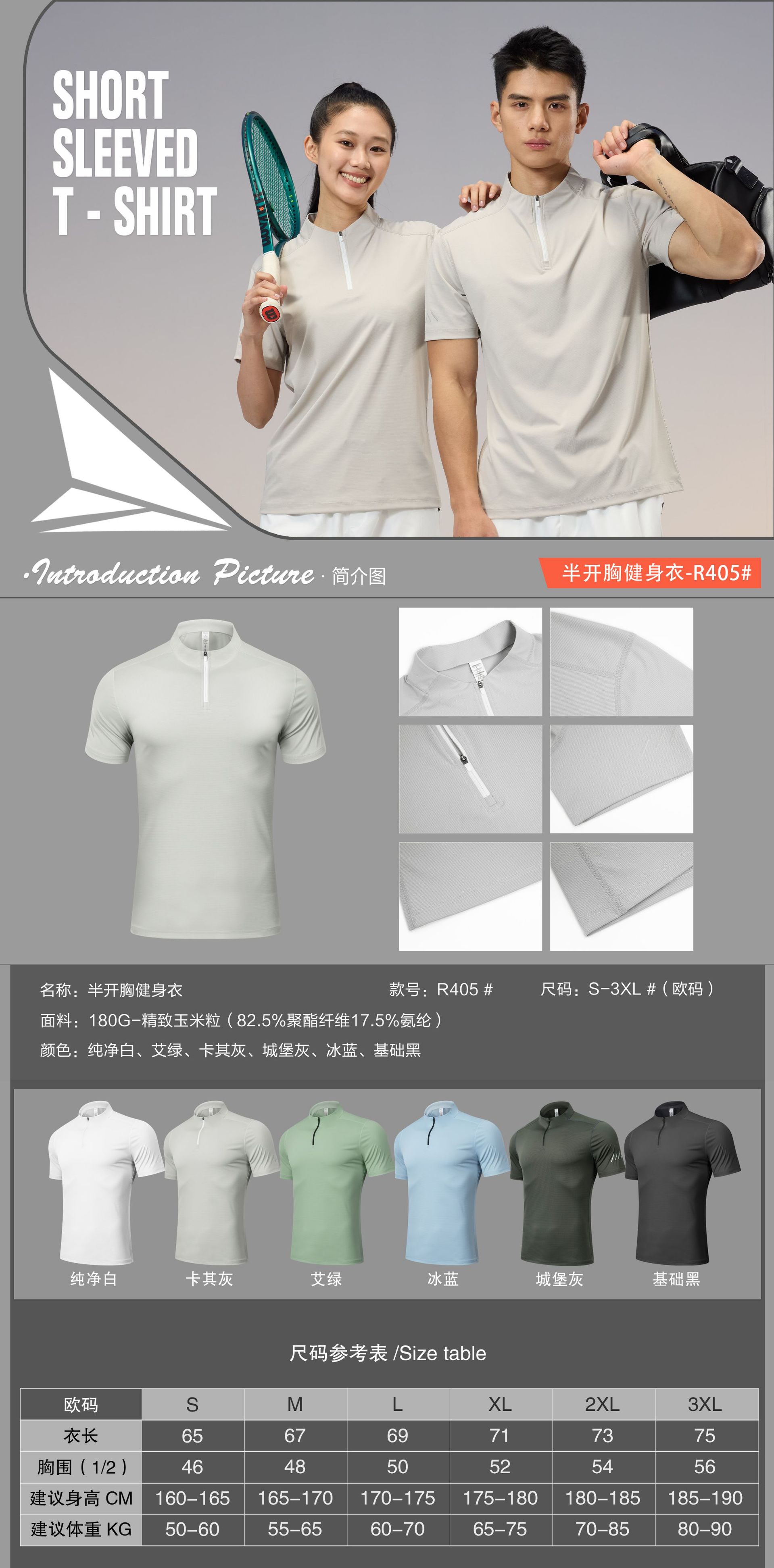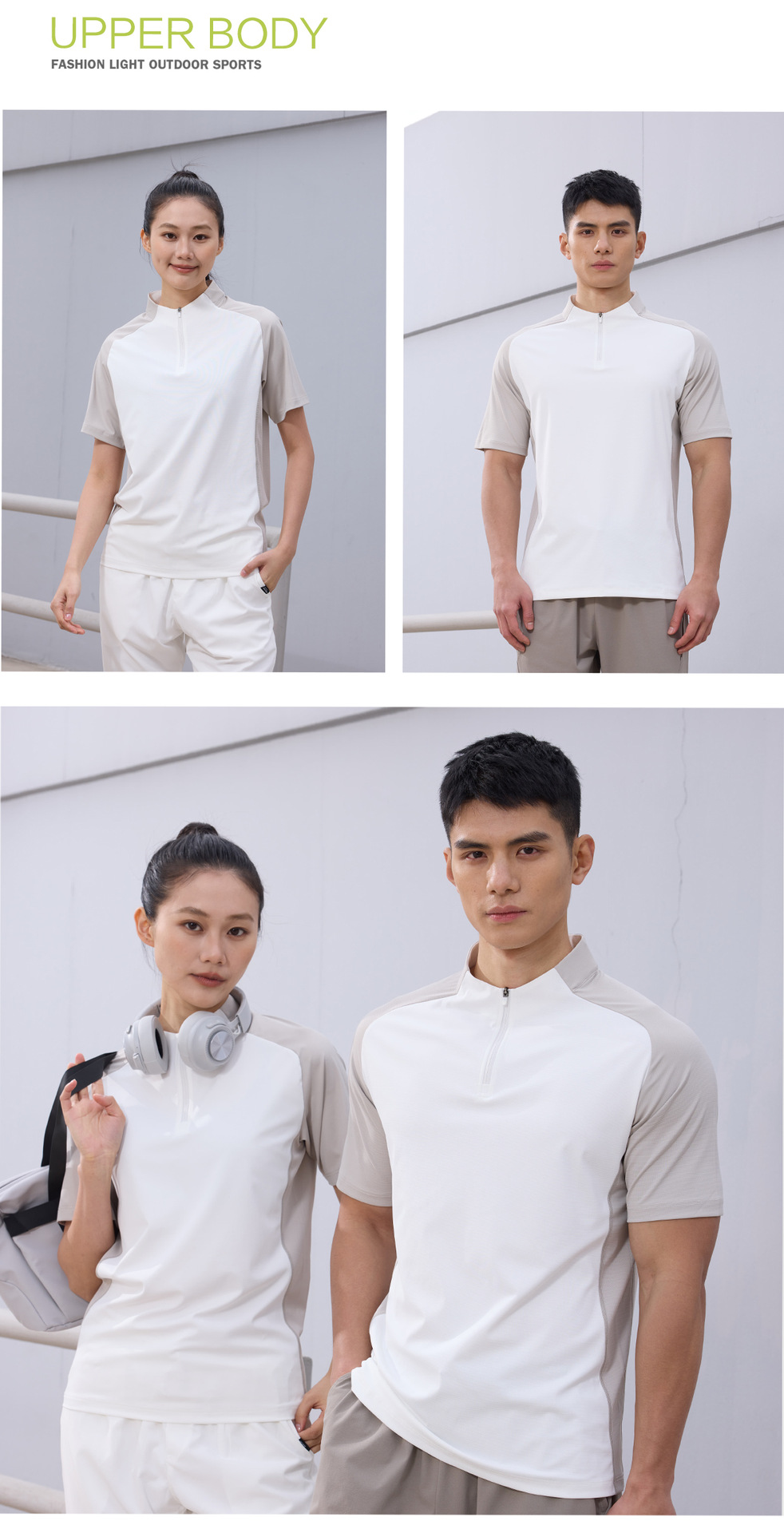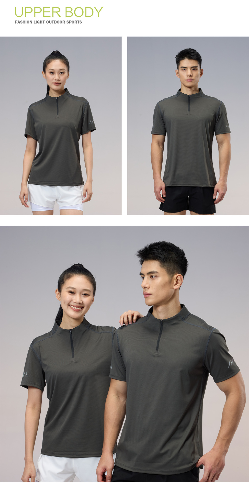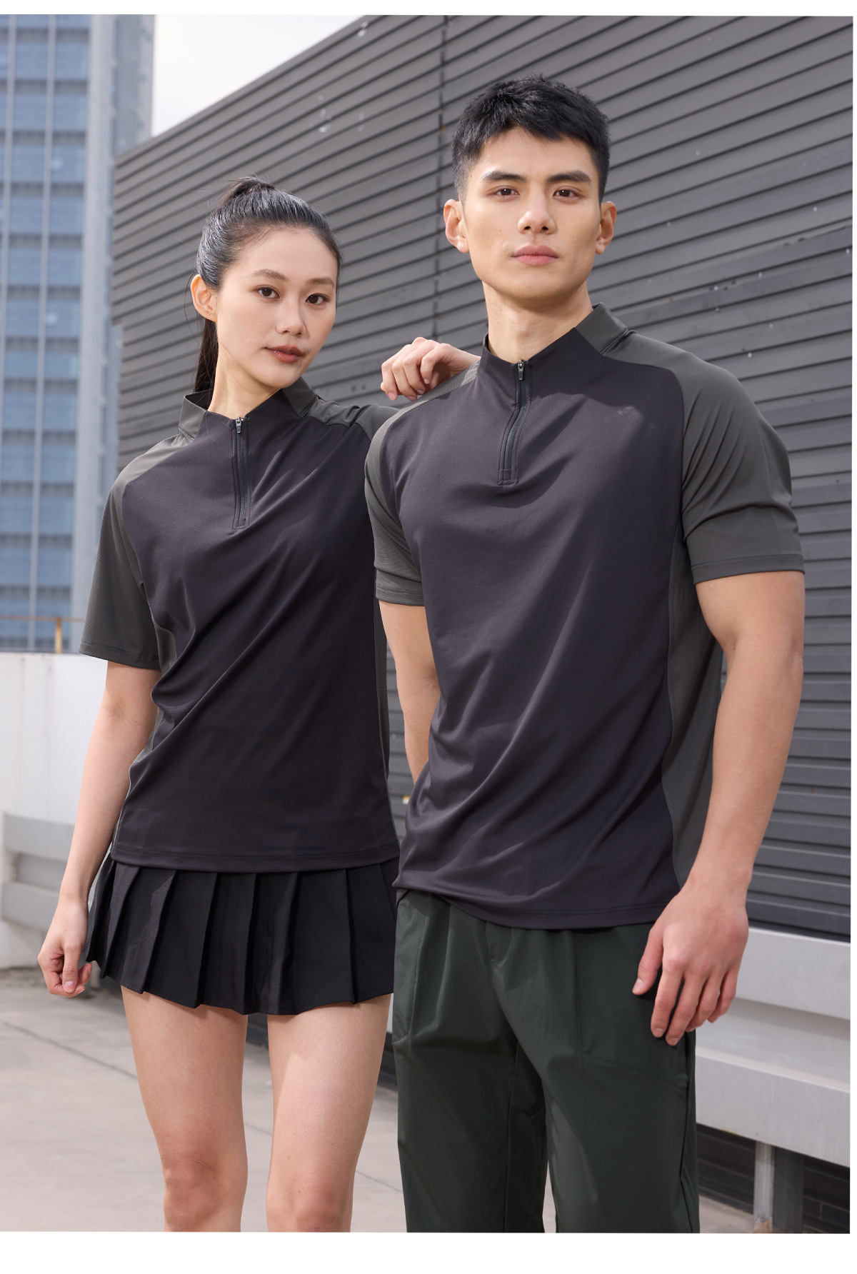 Полу-молния воротник с коротким рукавом Летняя футболка на открытом воздухе Спортивный отдых Фитнес-тренировка рубашка POLOP рубашка с отворотом на заказ