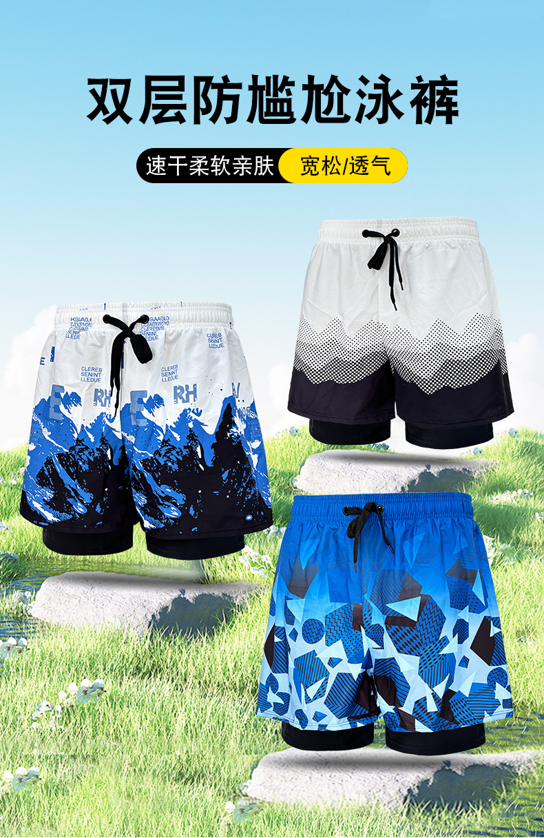 Мужские двухслойные плавки 2025 лето новые взрослые мужские плавки свободные больших размеров оптом