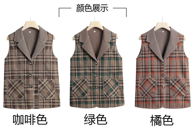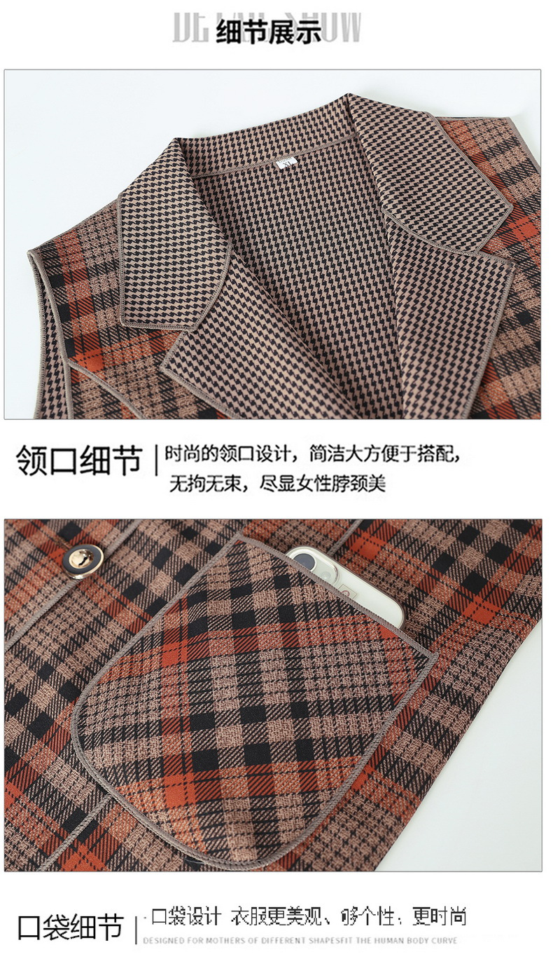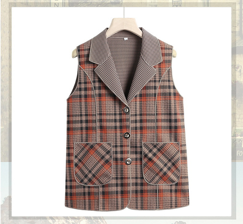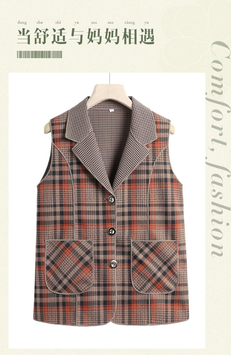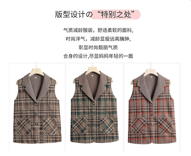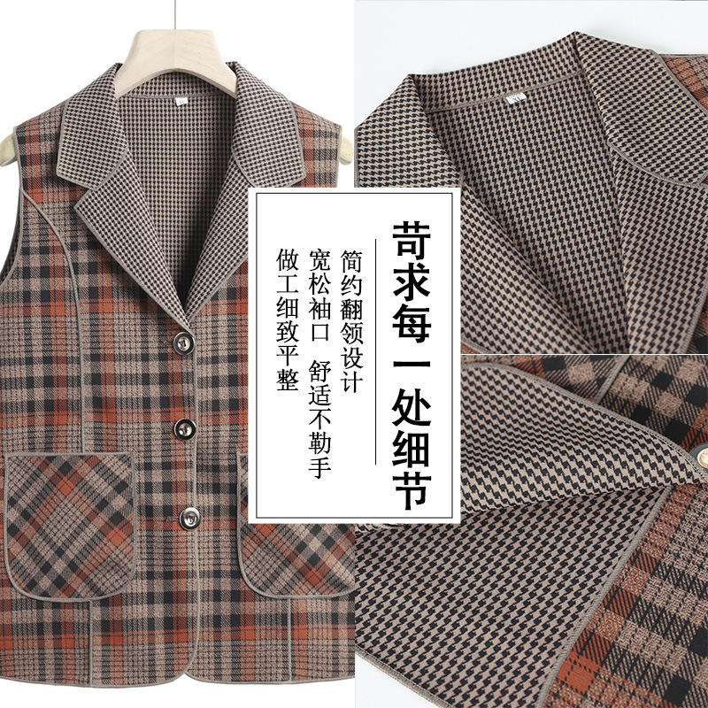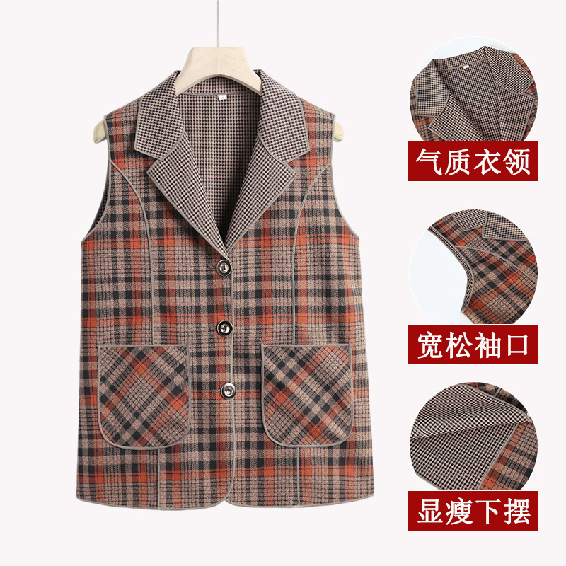 Весенние и осенние жилеты для женщин среднего и пожилого возраста, клетчатые жилеты для мам 60-70 лет, жилетки для пожилых дам.