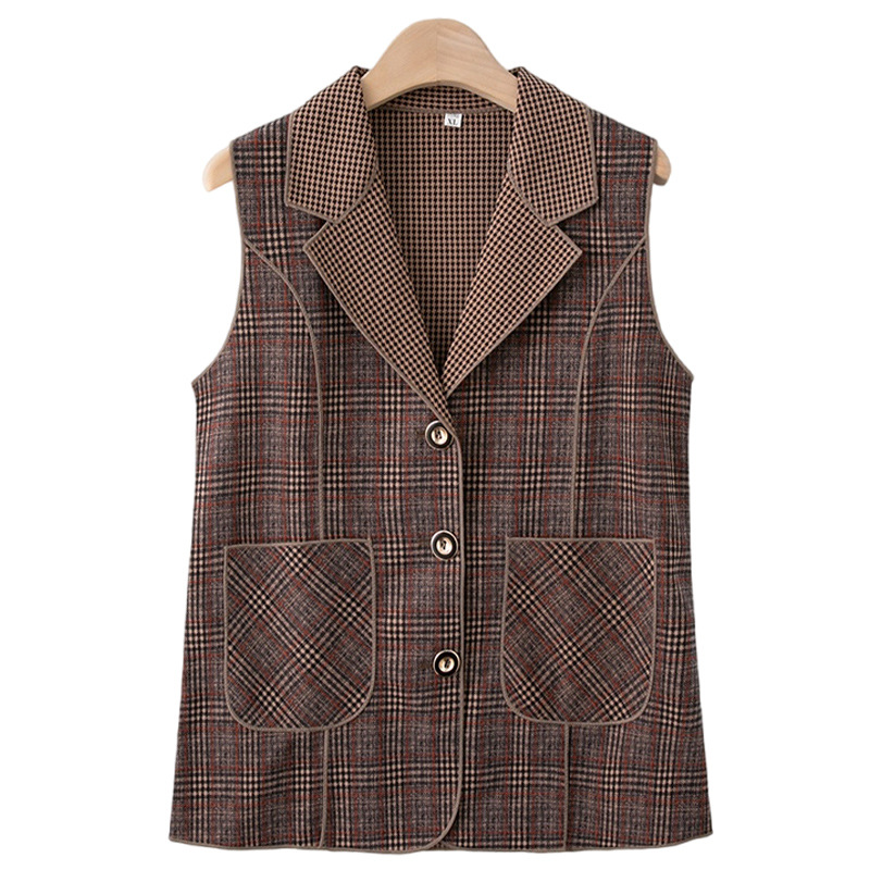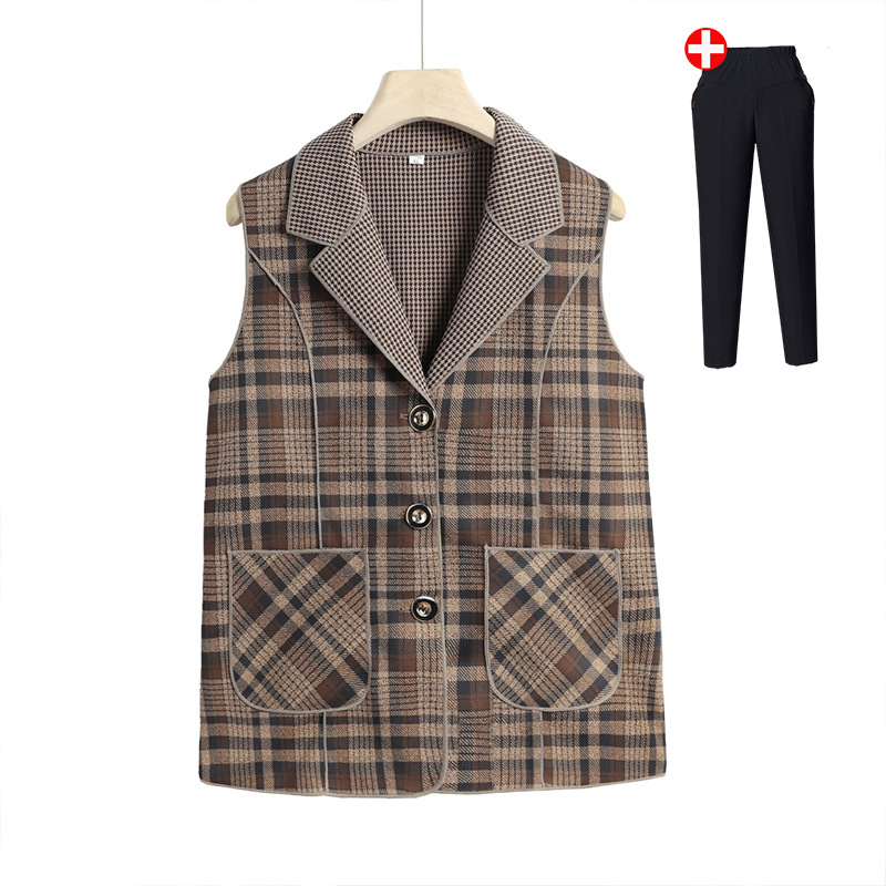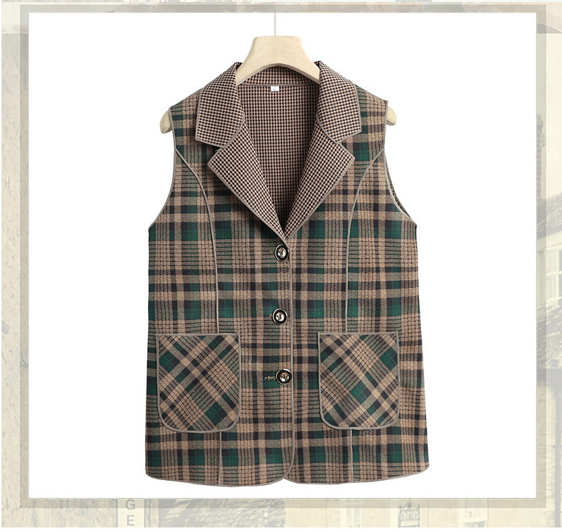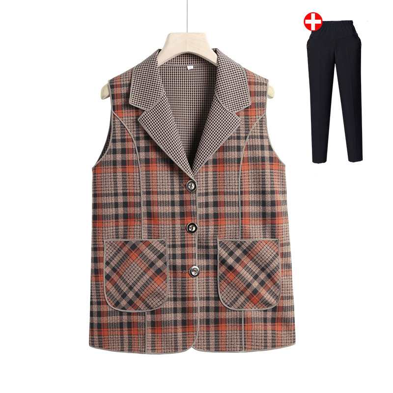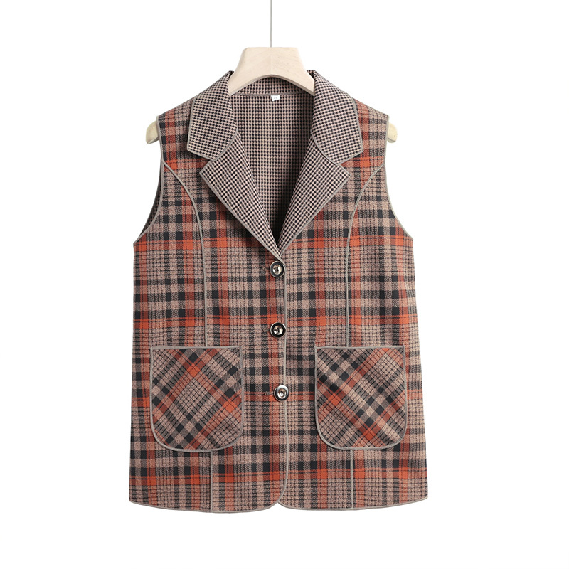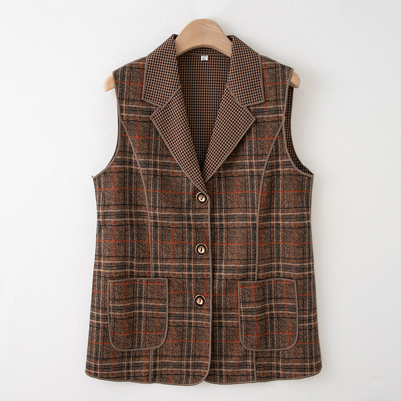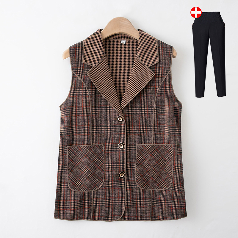 Весенние и осенние жилеты для женщин среднего и пожилого возраста, клетчатые жилеты для мам 60-70 лет, жилетки для пожилых дам.