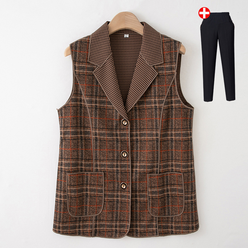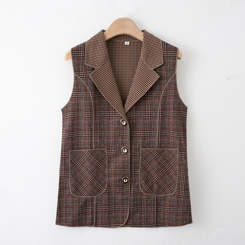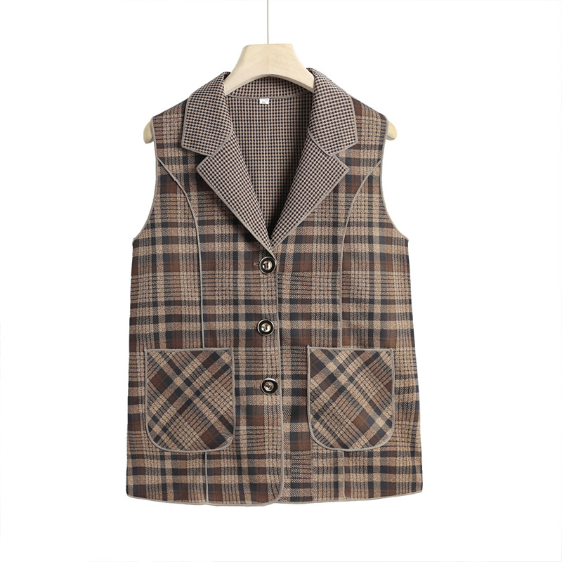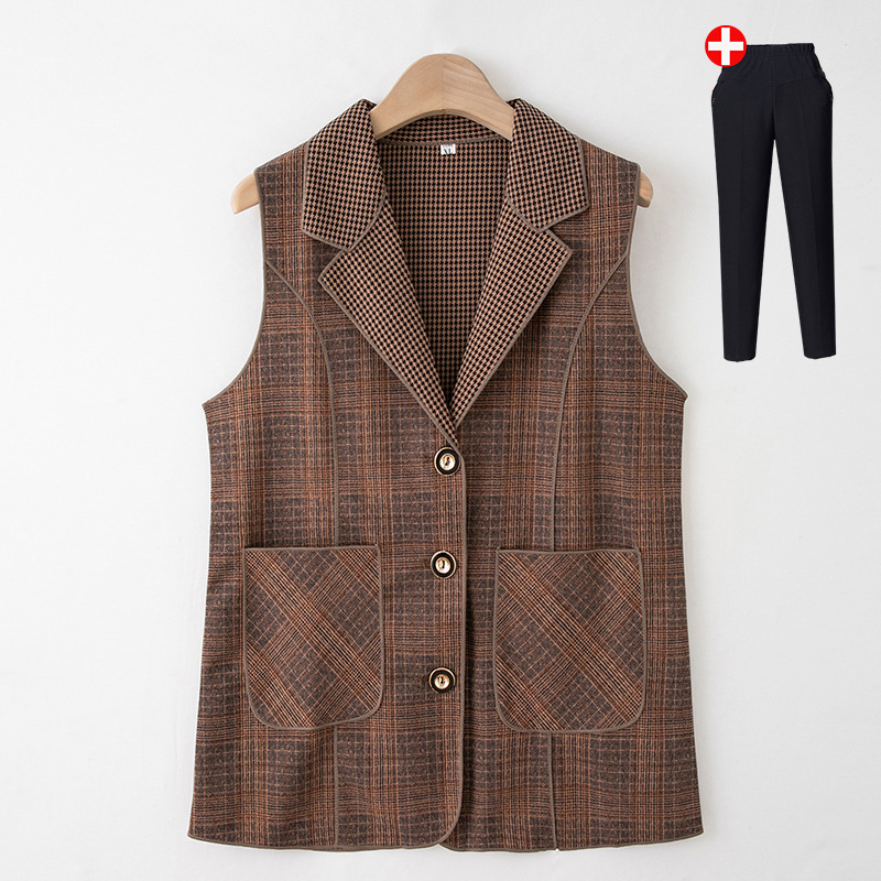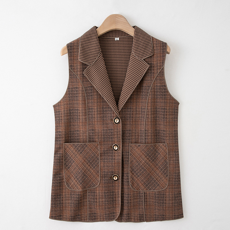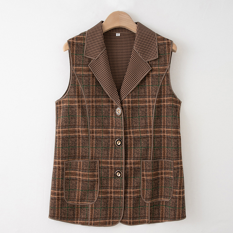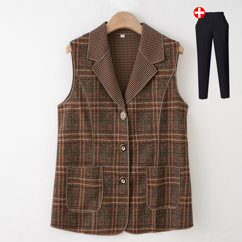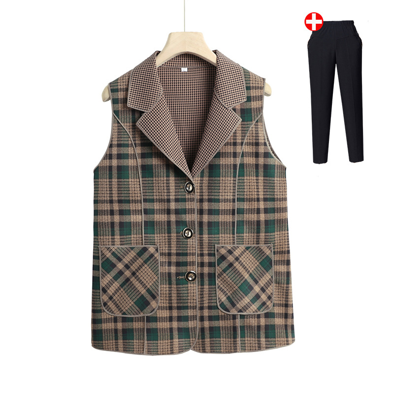 Весенние и осенние жилеты для женщин среднего и пожилого возраста, клетчатые жилеты для мам 60-70 лет, жилетки для пожилых дам.