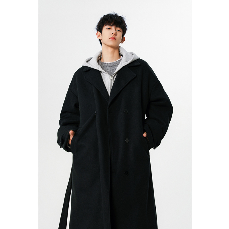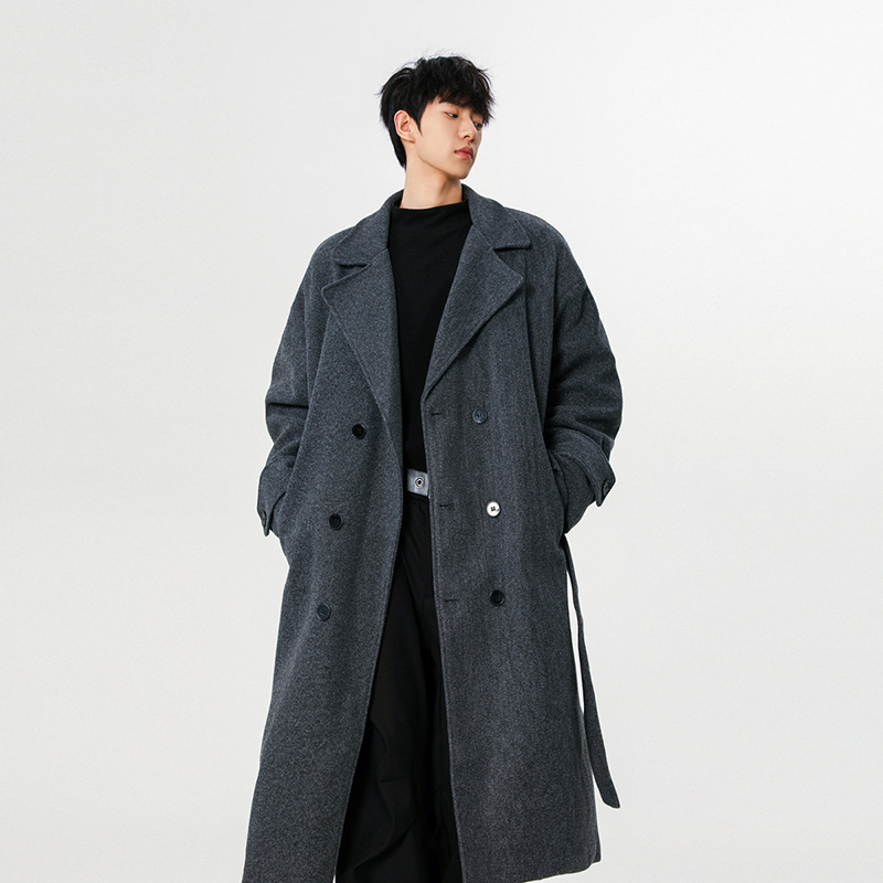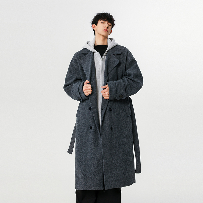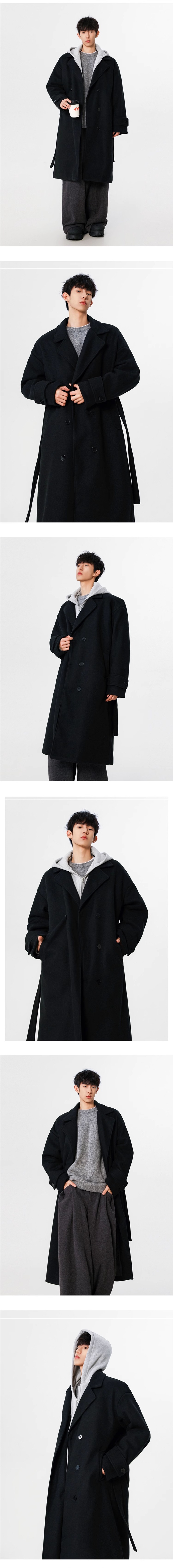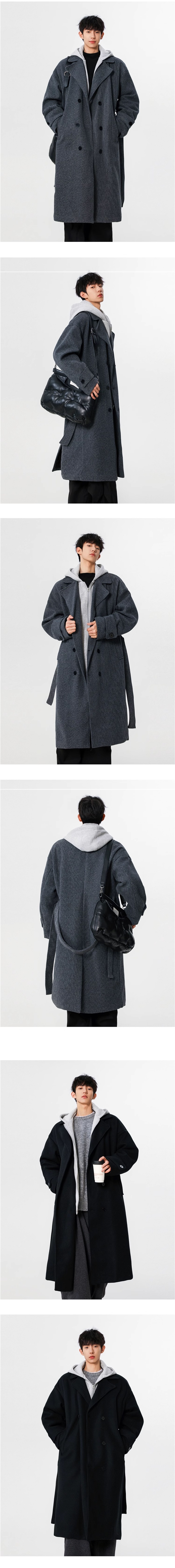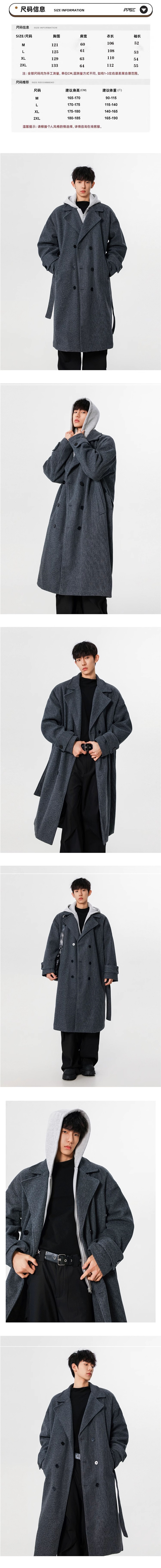 Съемные с капюшоном поддельные два шерстяных пальто мужской средней и длинной зимой утолщенные и толстые свободные двубортные пальто