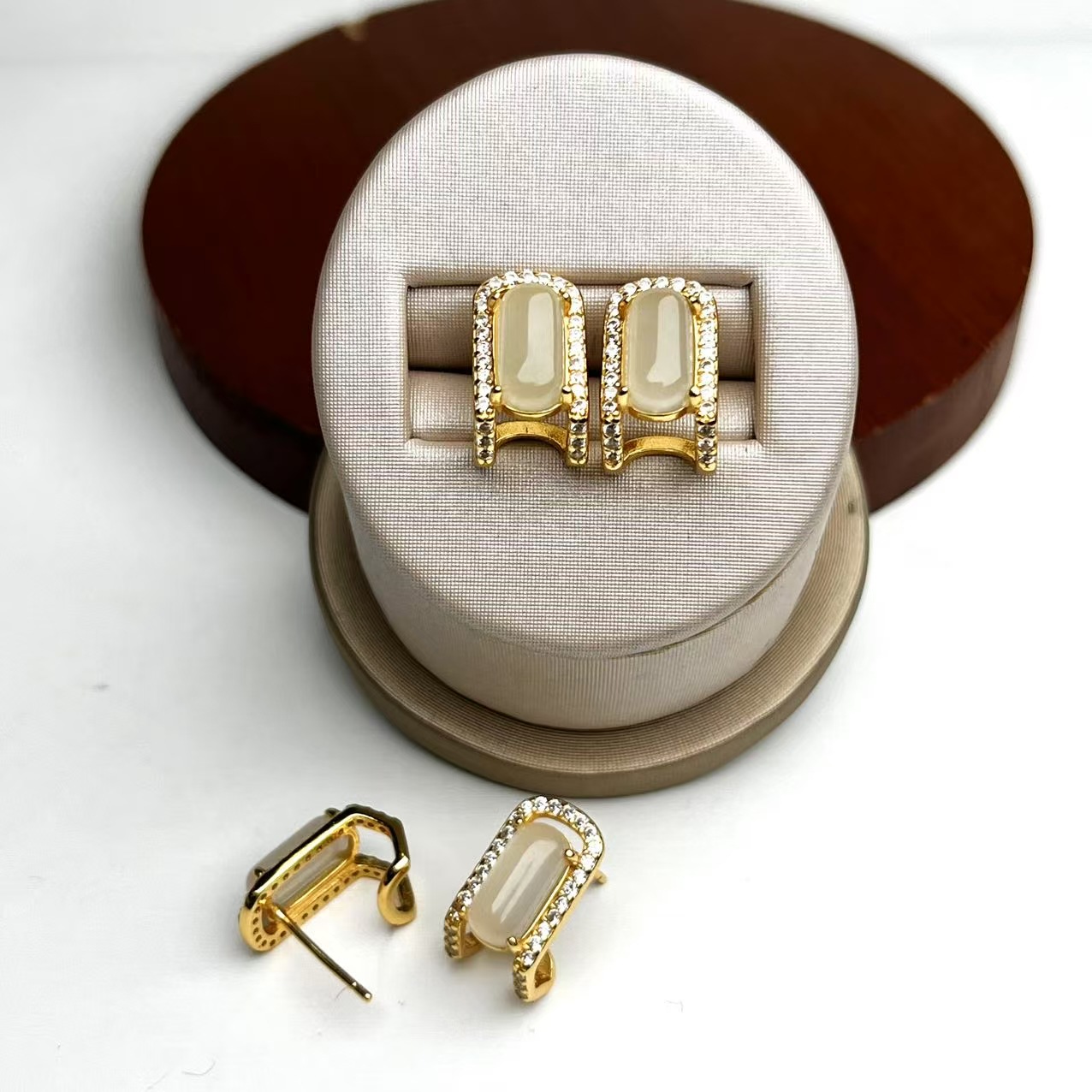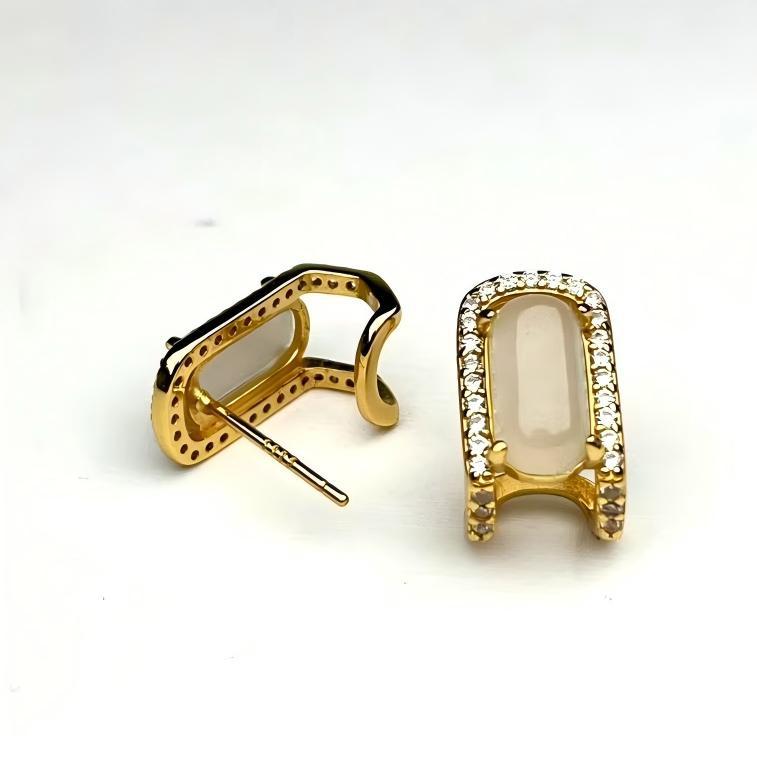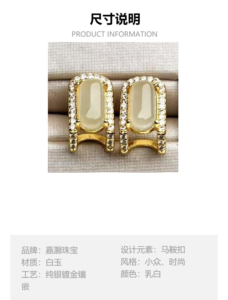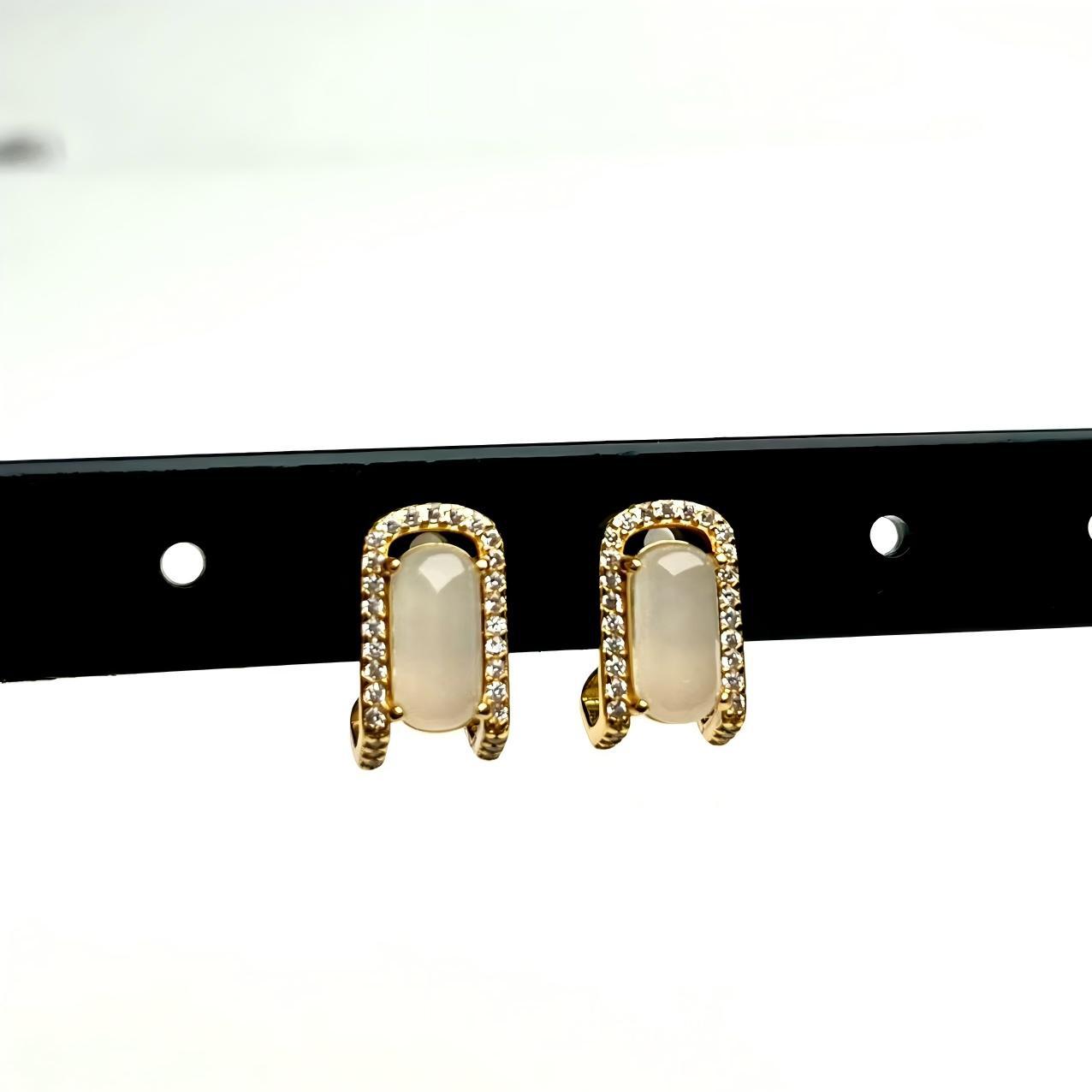 Серьги с белой нефритовой пряжкой для седла