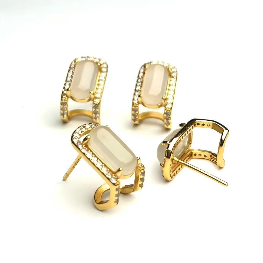 Jiayu натуральный белый нефритовый прямоугольный прямоугольный инкрустированный S925 серебряный позолоченный седельный пряжка модный нишевые гвозди оптом
