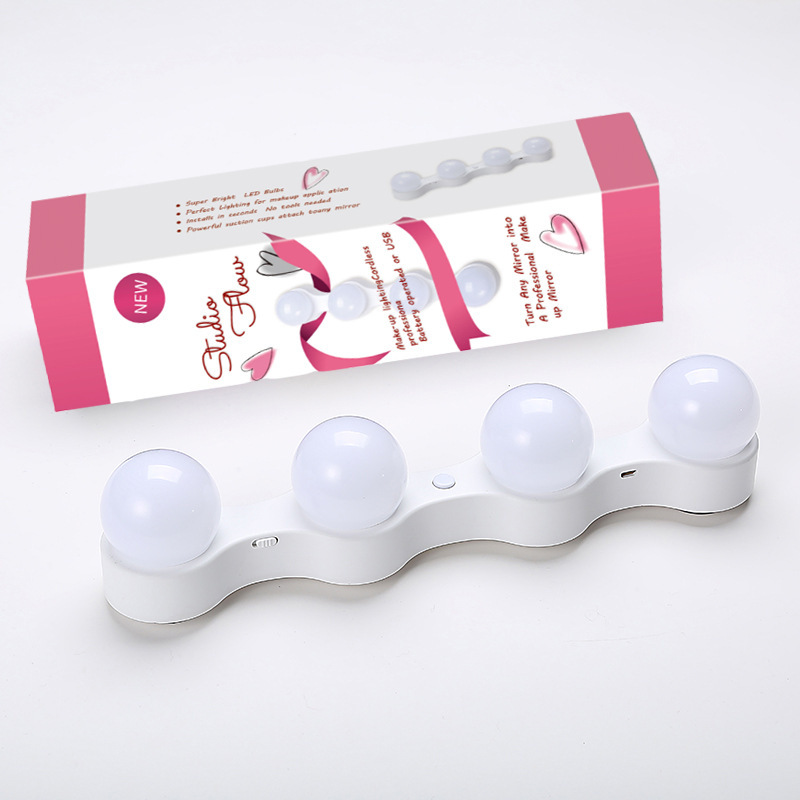 四灯泡镜前灯 吸盘 LED补光 化妆灯 随手贴镜子灯 美式化妆镜灯泡