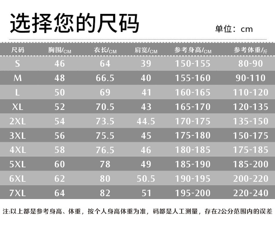 S; M; L; XL; XXL; XXXL; XXXXL; 5XL; 6XL; 7XL