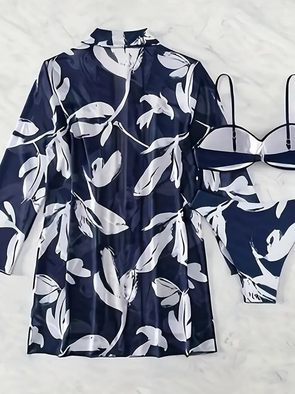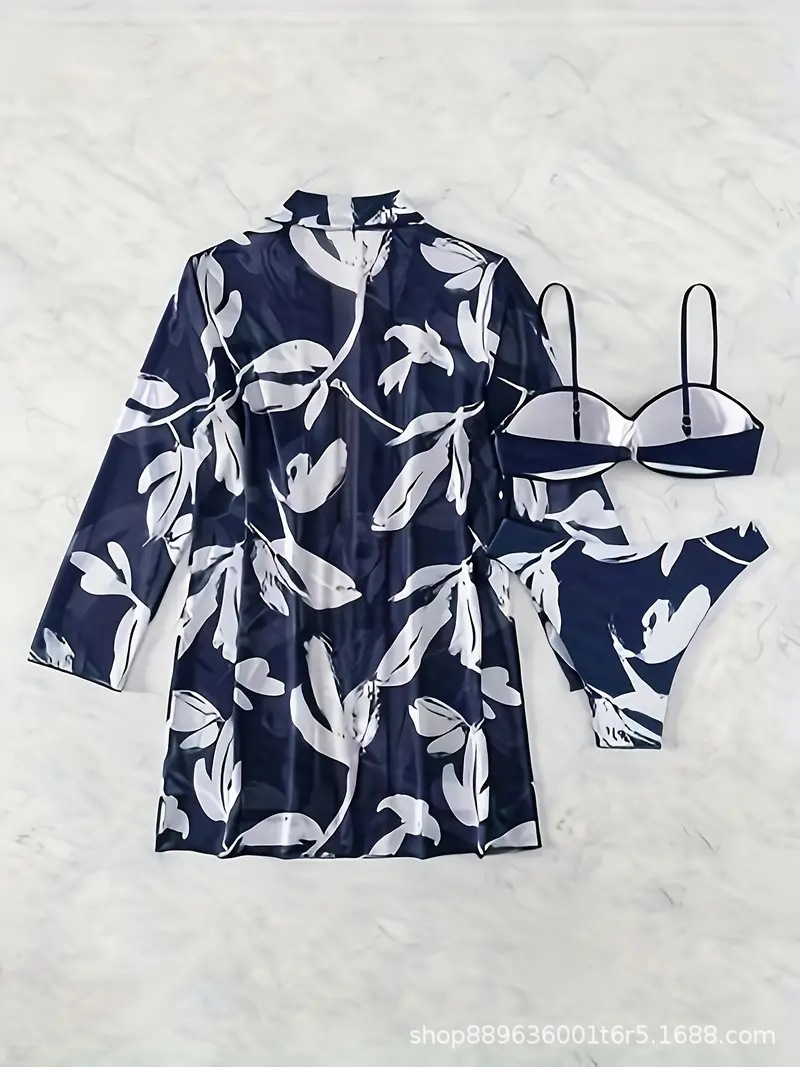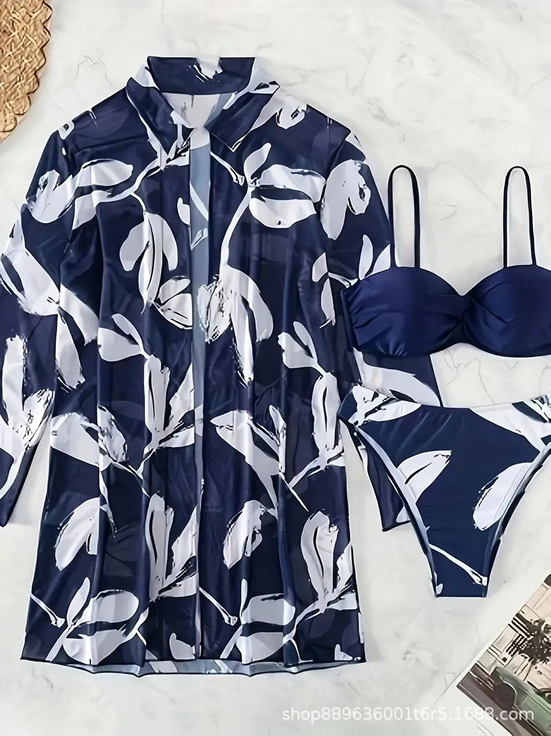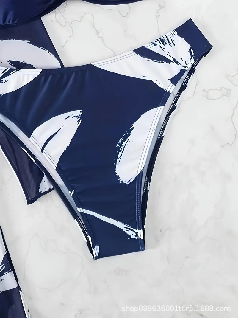 2025 новый сексуальный принт набор купальник бикини из трех частей женский bikini тонкий и трансграничный экспорт в Европу и США