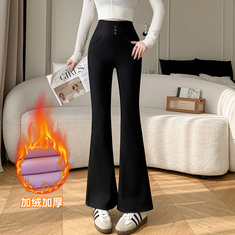 Брюки-клеш с высокой талией для женщин, большие размеры 100kg для полных женщин, высокая эластичность, драпировка для осени и зимы, на флисовой подкладке, прямые штанины, облегающие, повседневные брюки.