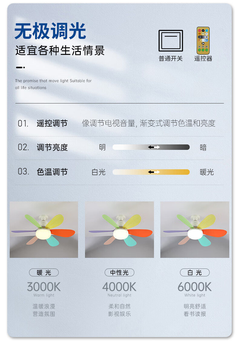 Светодиодный цветочный вентилятор-30 Вт монохромный белый свет-без пульта дистанционного управления; Светодиодный цветочный вентилятор - 30 Вт трехцветное затемнение - с пультом дистанционного управления; Светодиодный цветочный вентилятор - монохромный белый свет - без пульта дистанционного управления; Светодиодный цветочный вентилятор - трехцветное затемнение - с пультом дистанционного управления; Светодиодный цветочный вентилятор - 30 Вт трехцветное затемнение - с пультом дистанционного управления - с держателем света; Светодиодный цветочный вентилятор - трехцветное затемнение - с пультом дистанционного управления - с держателем света; 30 Вт разделенный универсальный вентилятор с дистанционным управлением, светло-белый; 30 Вт разделенный универсальный вентилятор с дистанционным управлением, светло-желтый