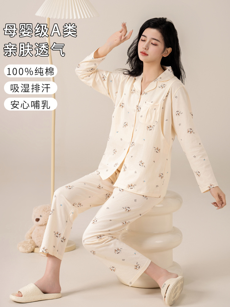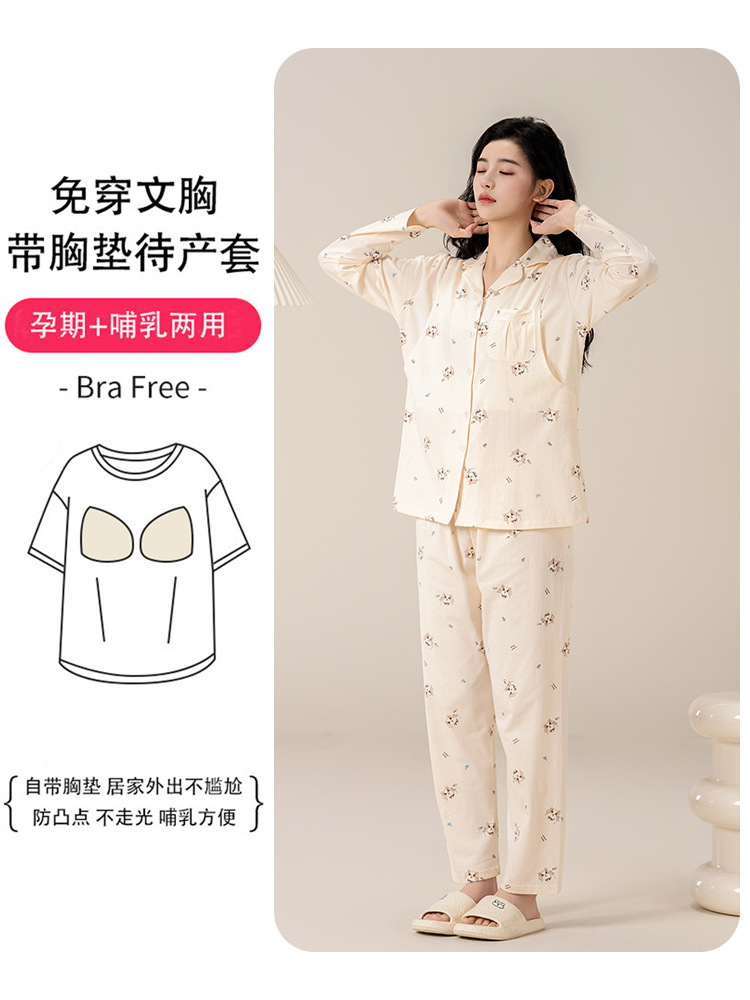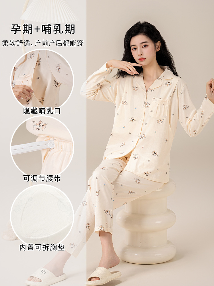 Категория А. Хлопок новый костюм для родов. Свободный хлопок. Пижама для кормления. Женская весна и лето. Послеродовое кормление. Одежда для беременных.