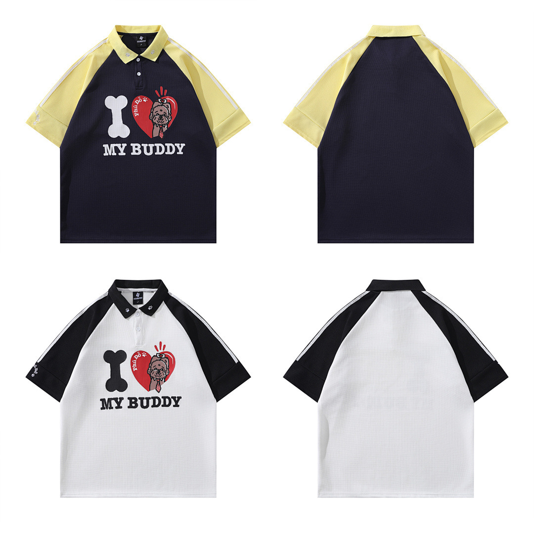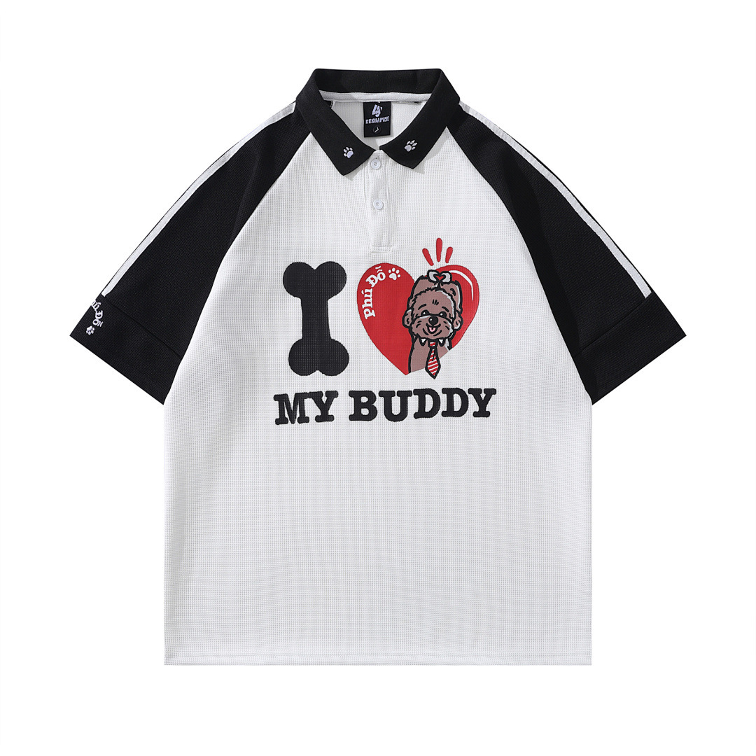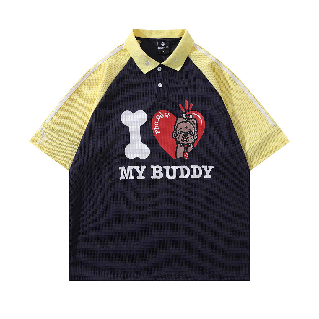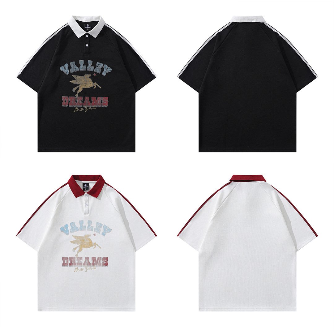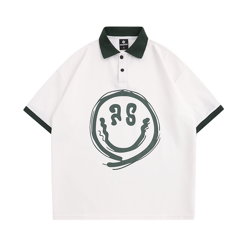 Модная трансграничная футболка-поло в стиле INS с мультяшным граффити, унисекс, американский колледж-стиль, парные топы с коротким рукавом