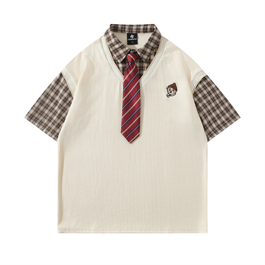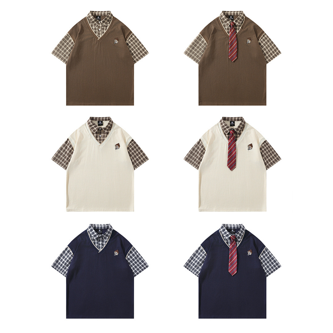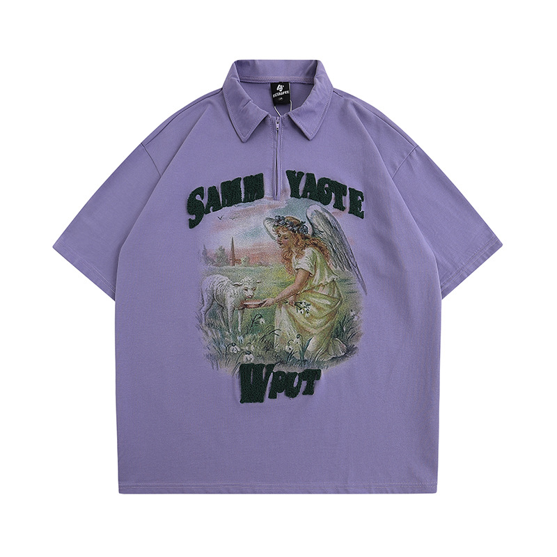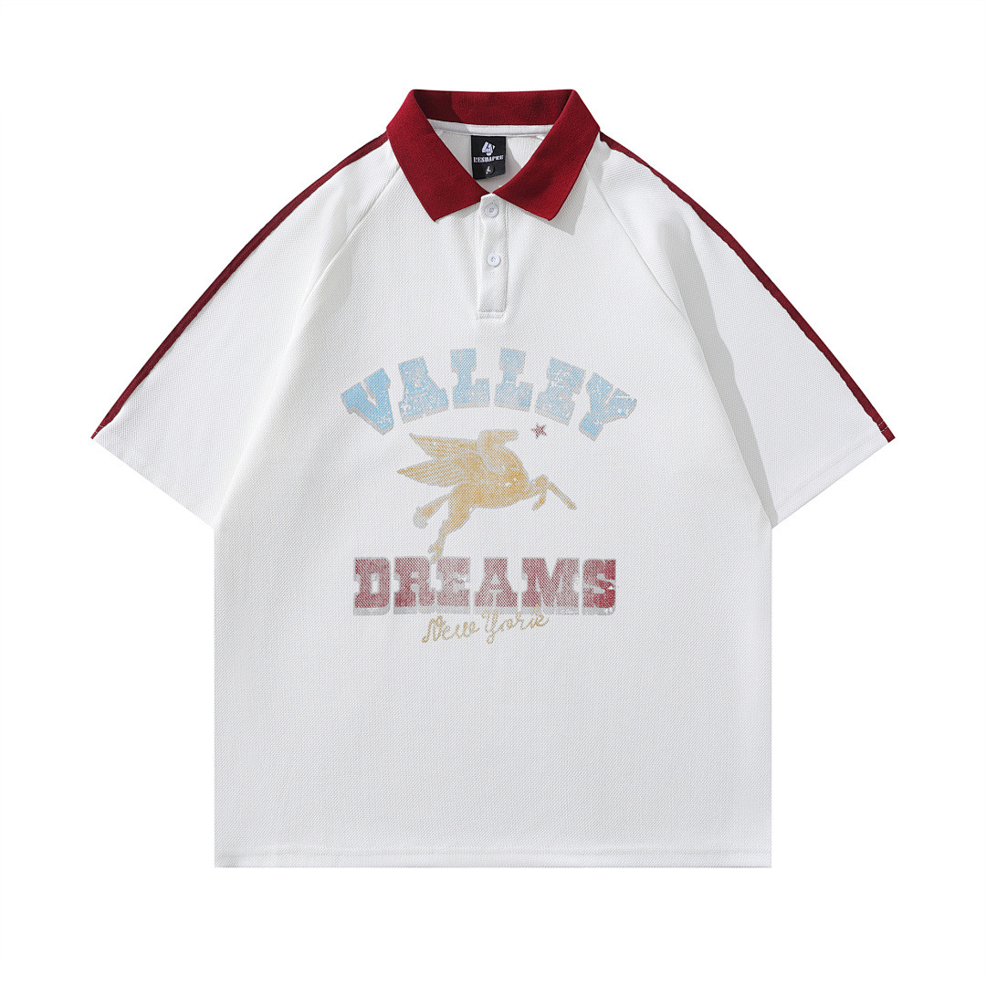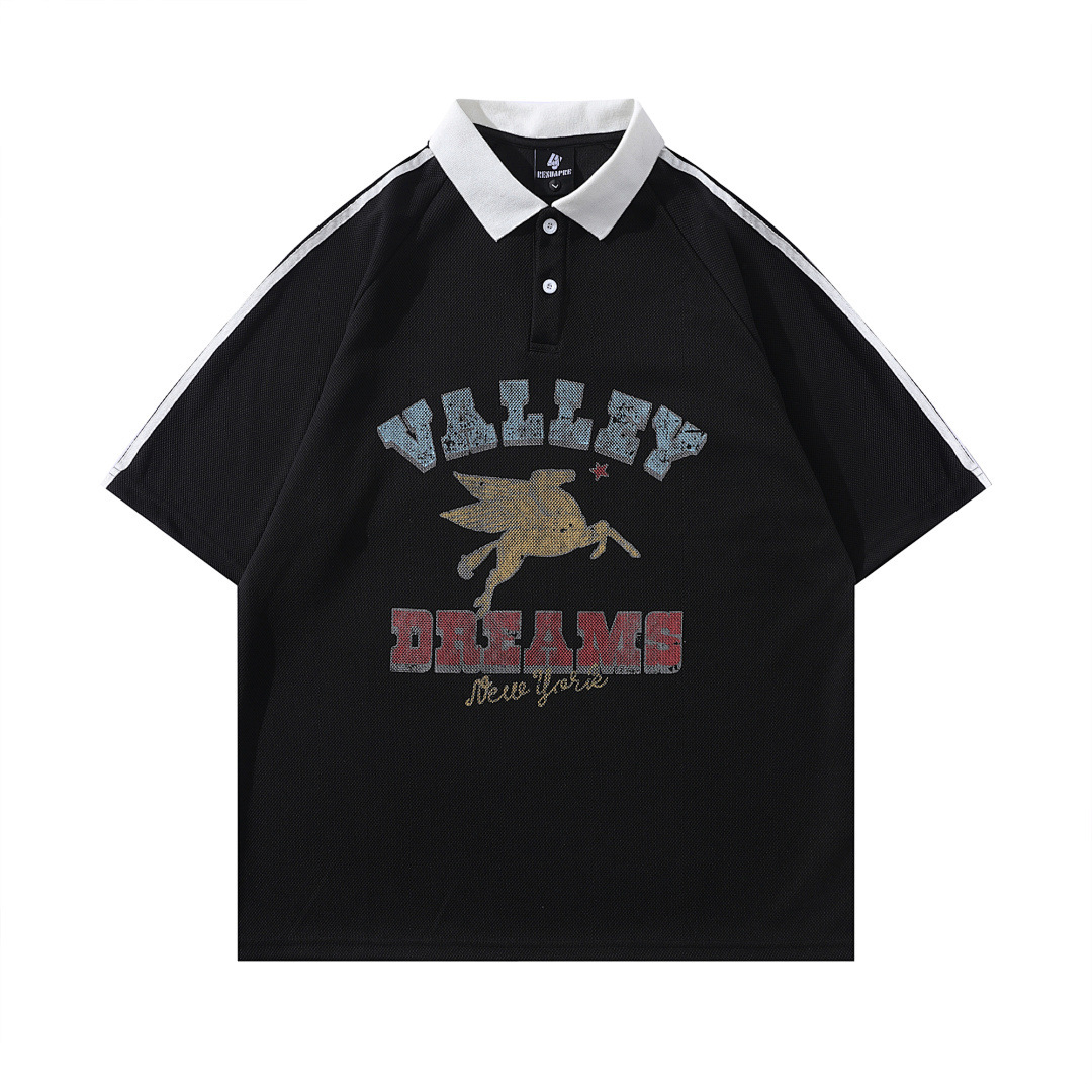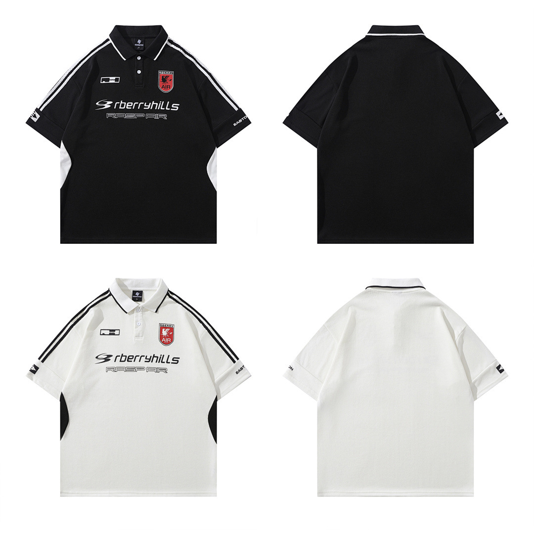 Модная трансграничная футболка-поло в стиле INS с мультяшным граффити, унисекс, американский колледж-стиль, парные топы с коротким рукавом