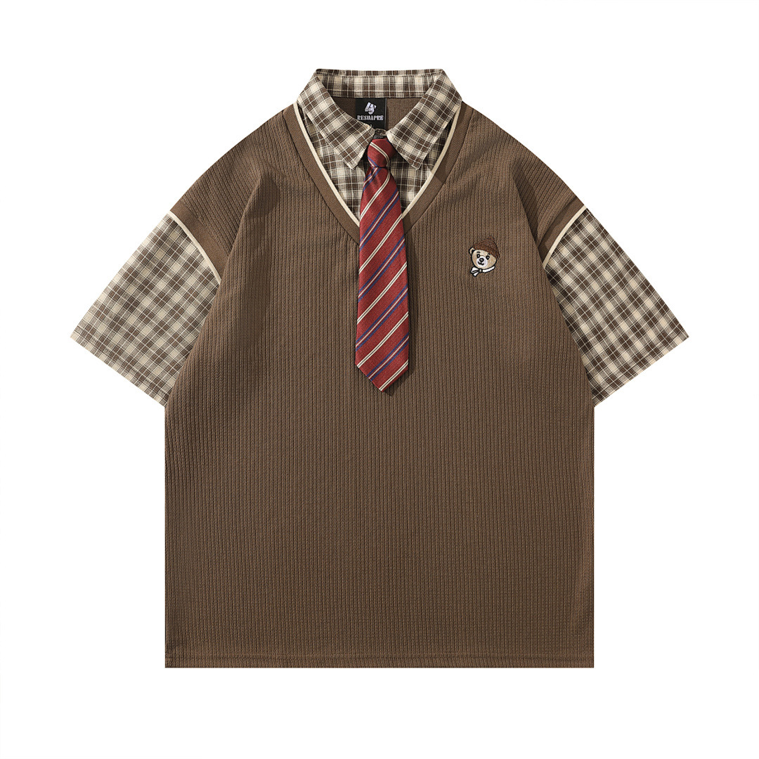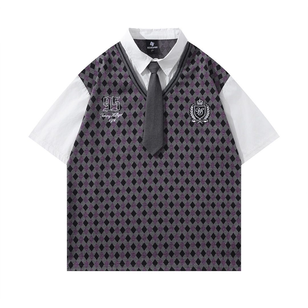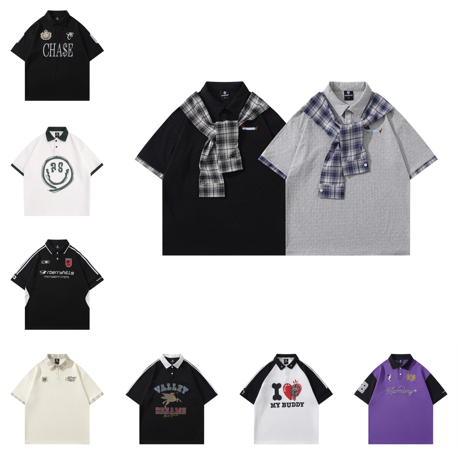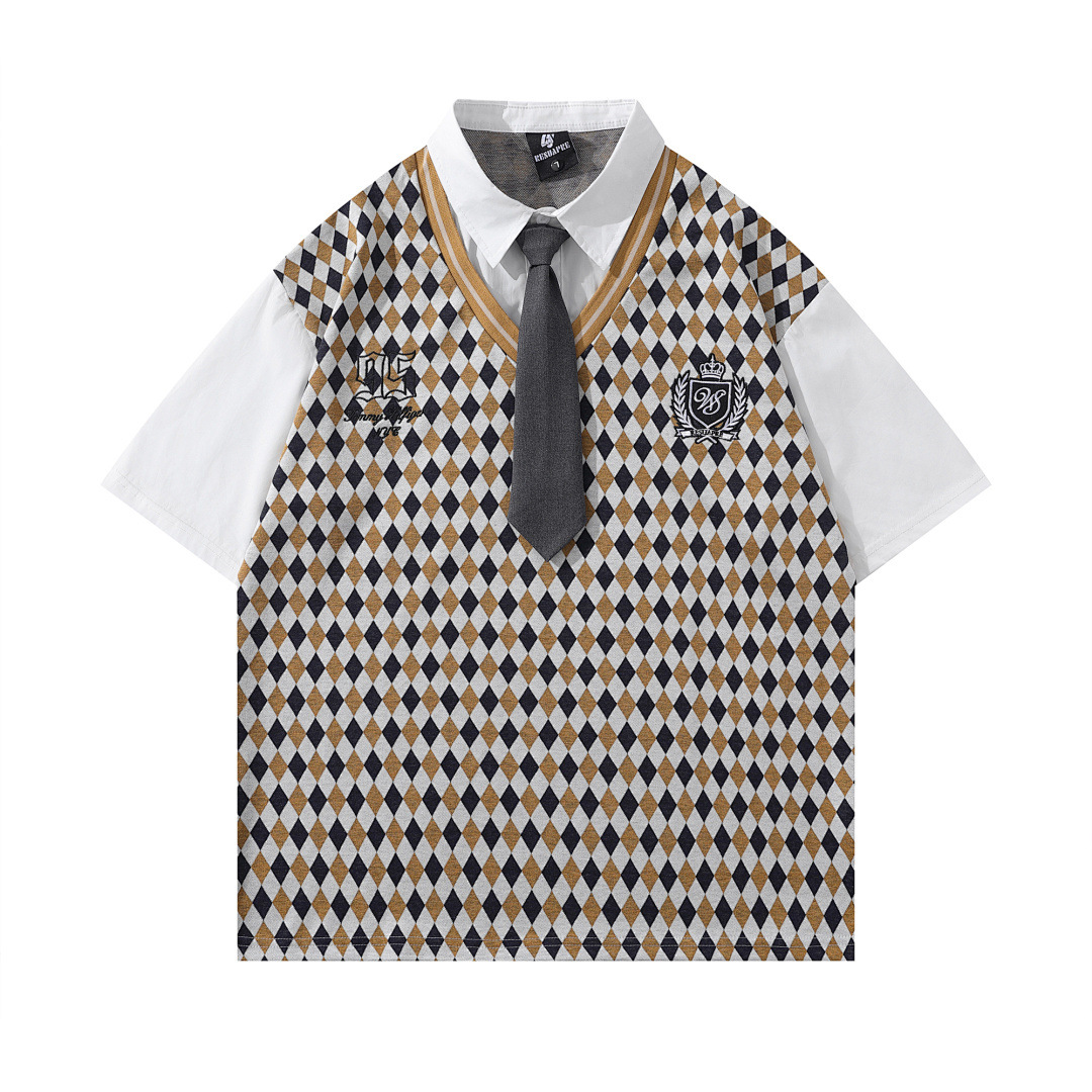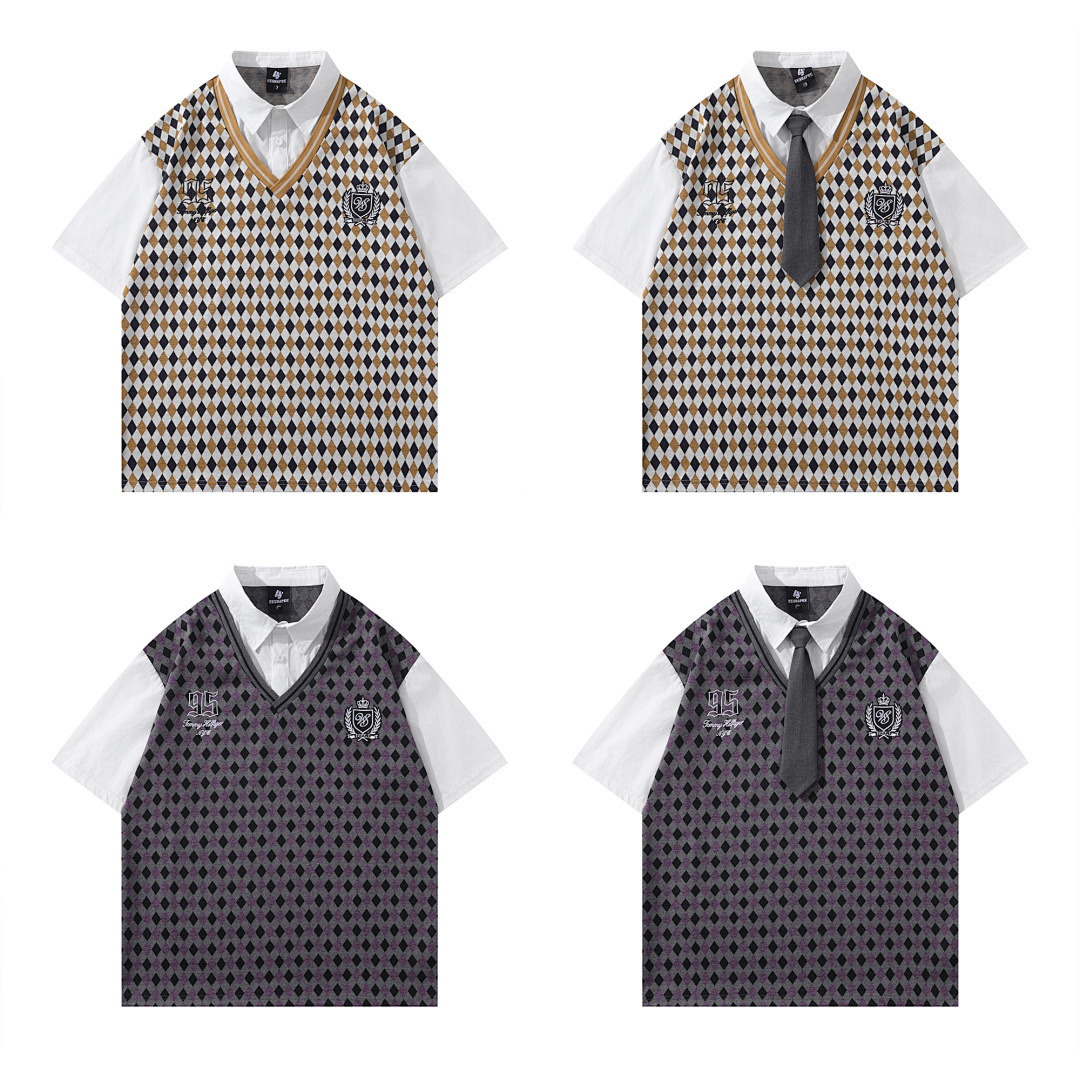 Модная трансграничная футболка-поло в стиле INS с мультяшным граффити, унисекс, американский колледж-стиль, парные топы с коротким рукавом