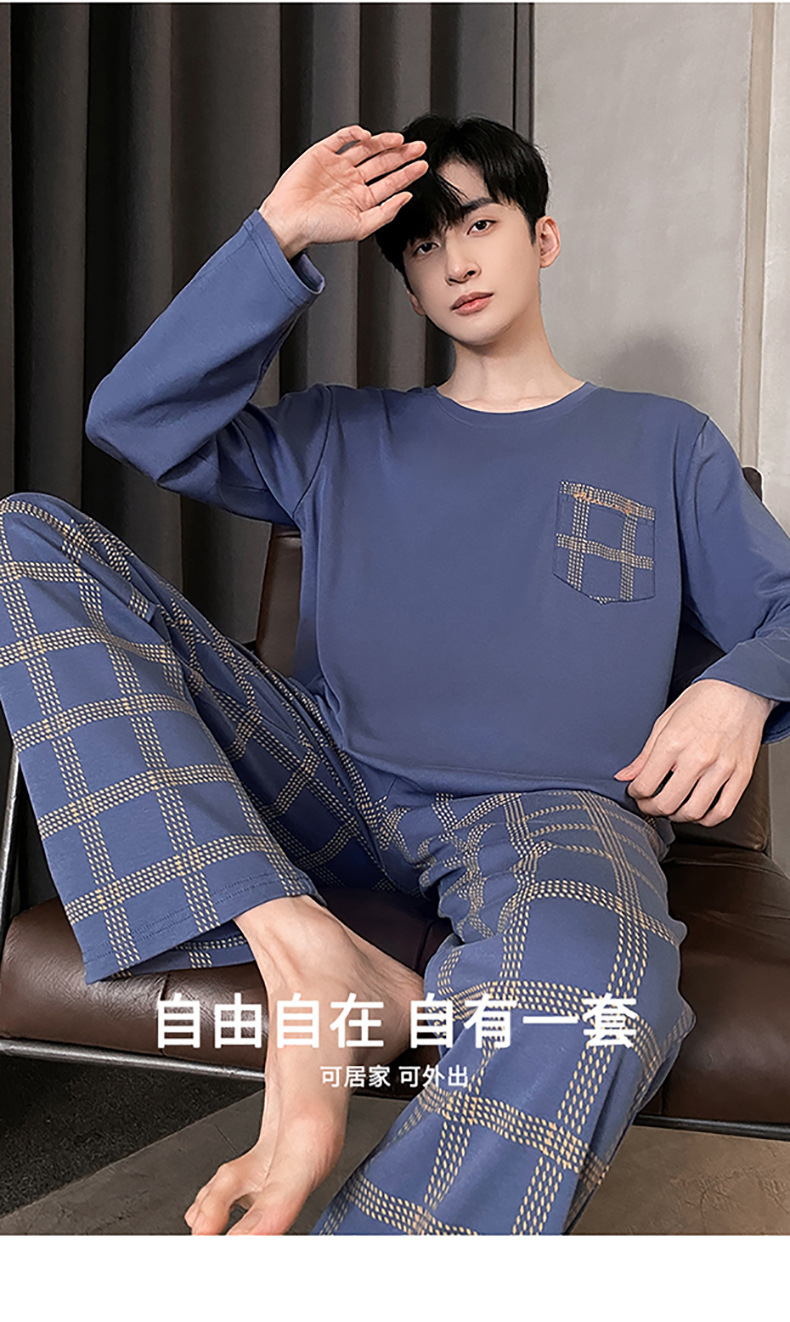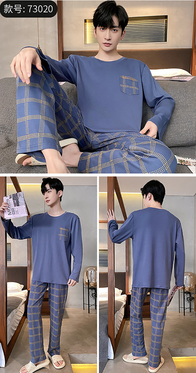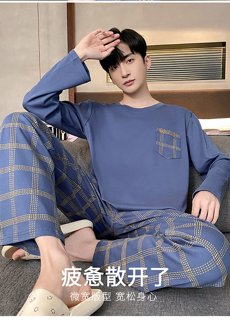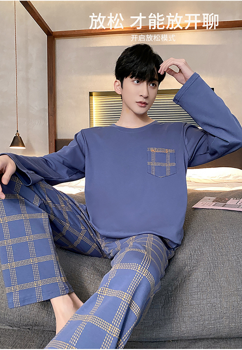 Пижама мужская весна и осень 2024 новый хлопок с длинными рукавами повседневный мужской большой размер летом можно носить на улице