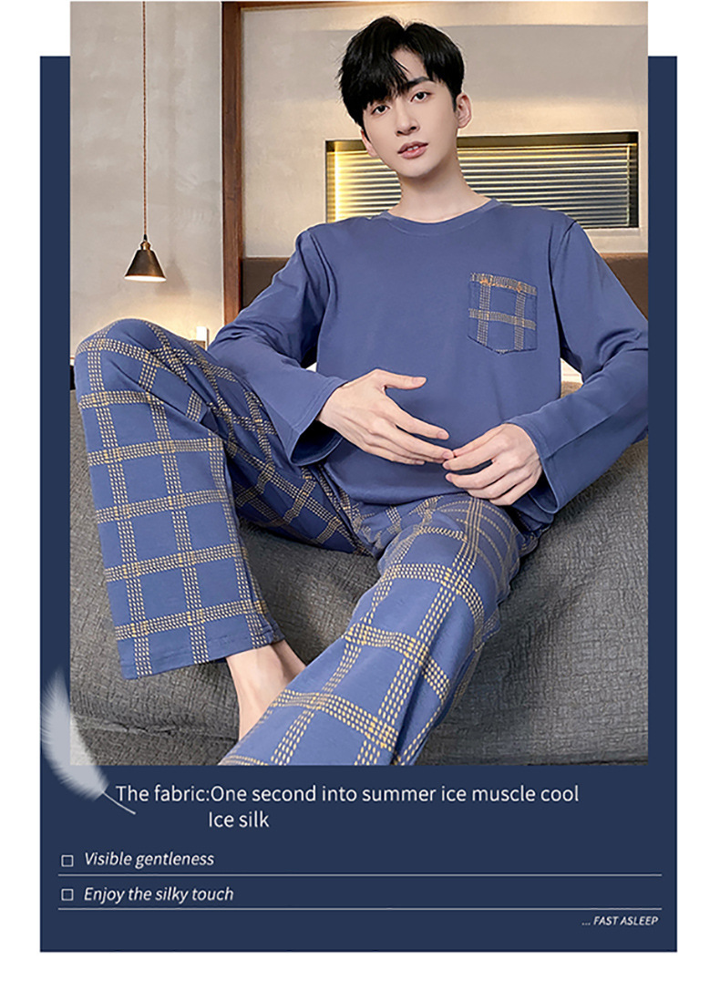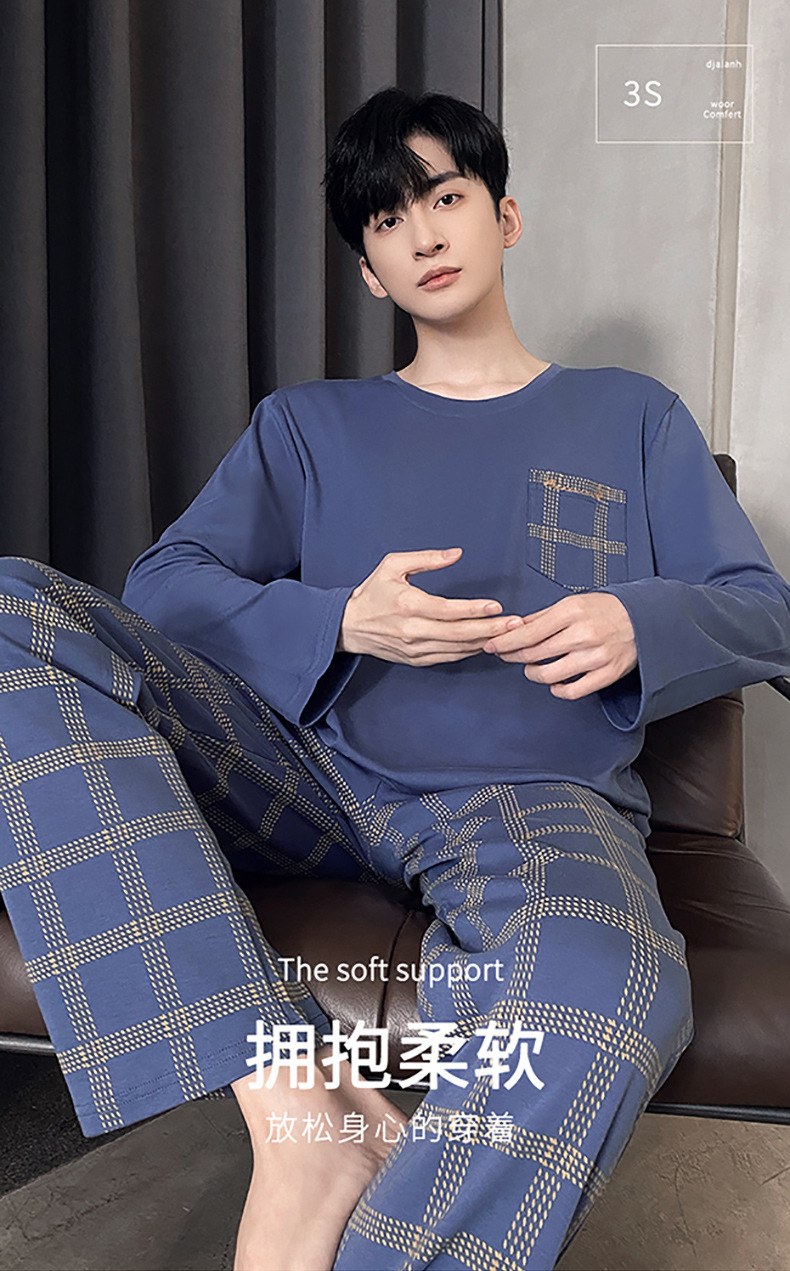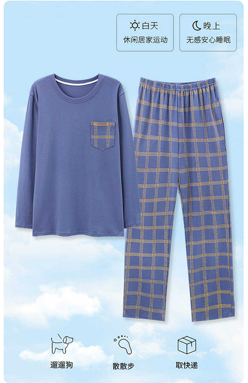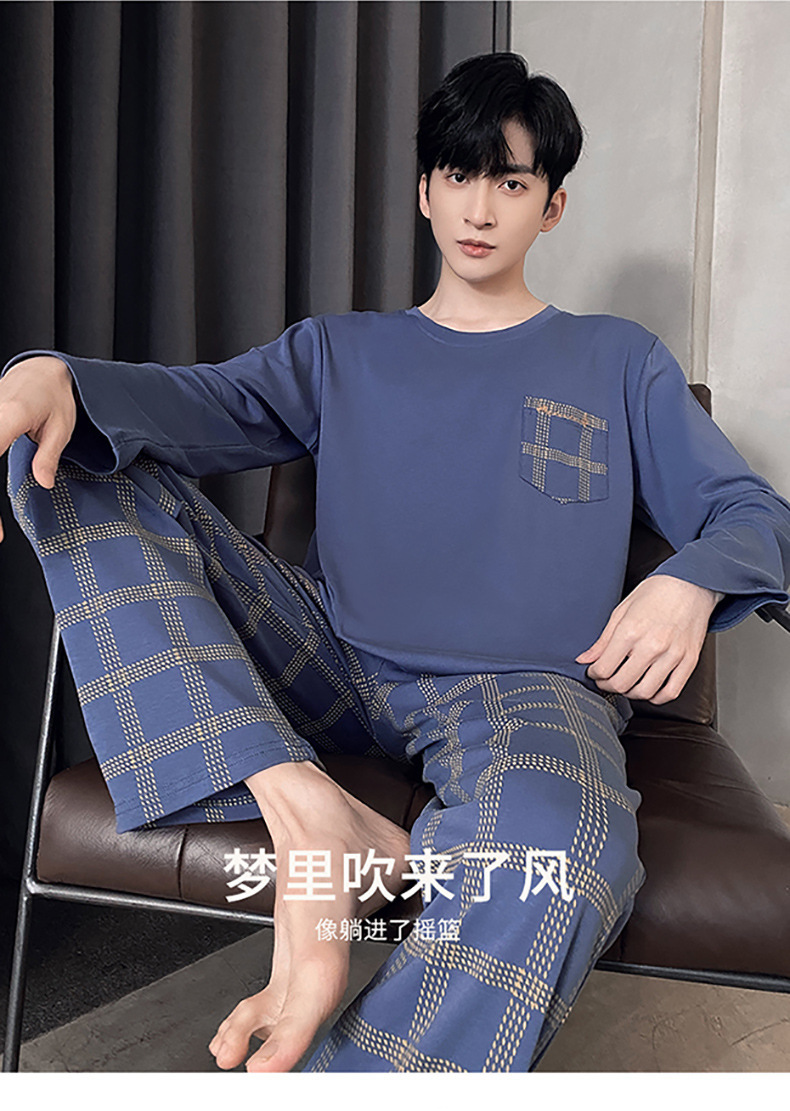 Пижама мужская весна и осень 2024 новый хлопок с длинными рукавами повседневный мужской большой размер летом можно носить на улице