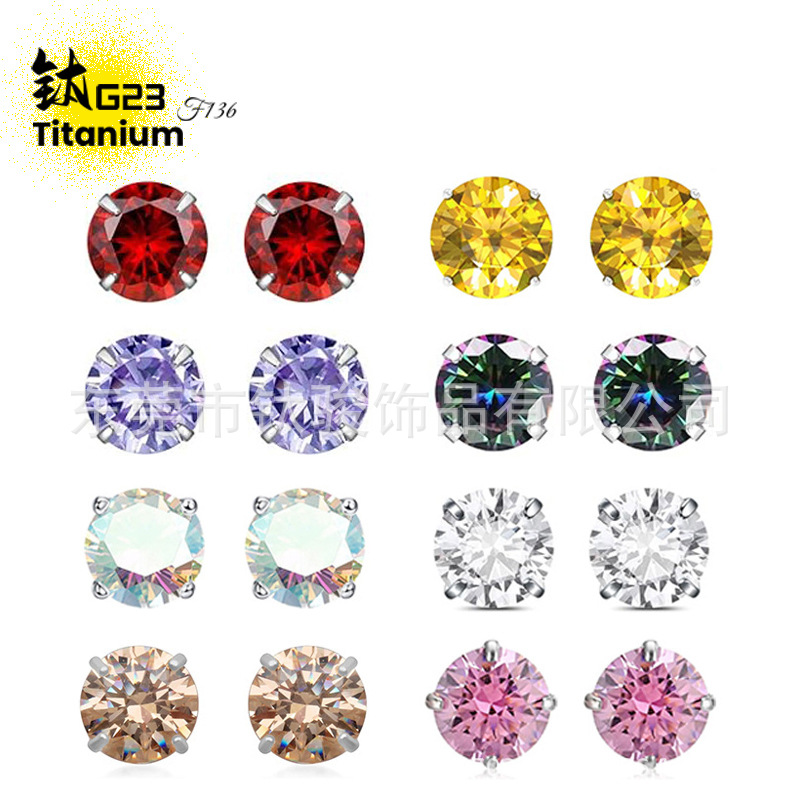 F136 титановый сплав с четырьмя когтями губная гвоздь головка с инкрустацией цветной 5A круглый Хао камень G23 внешняя резьба серьги головка аксессуар