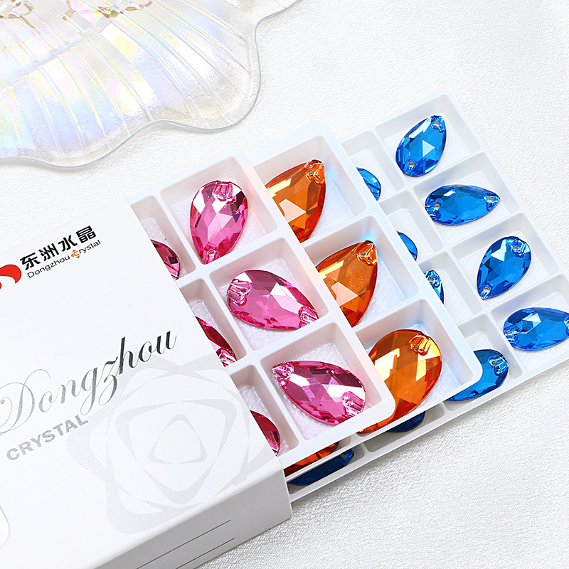 Dongzhou Crystal diy ручная капли воды Аксессуары для одежды с двойным отверстием плоская пряжка цветной шарик ультра-мигающий ручной шитый плоский дрель