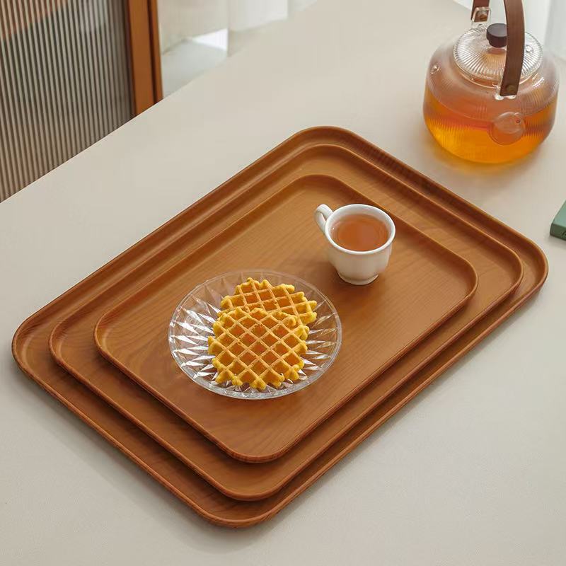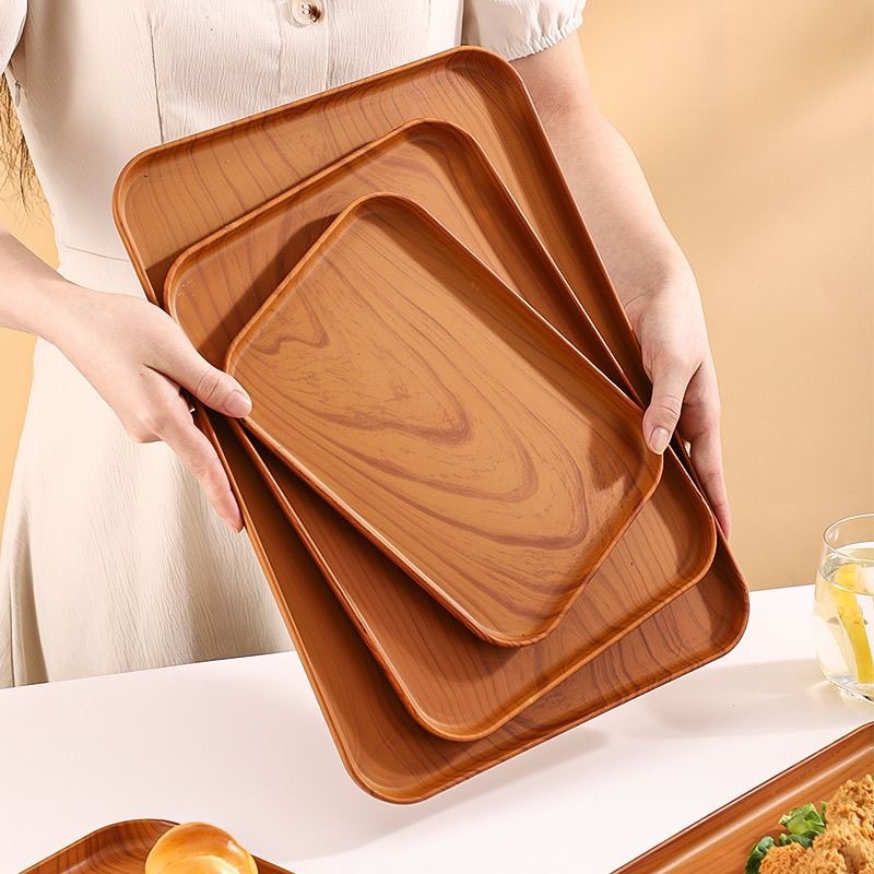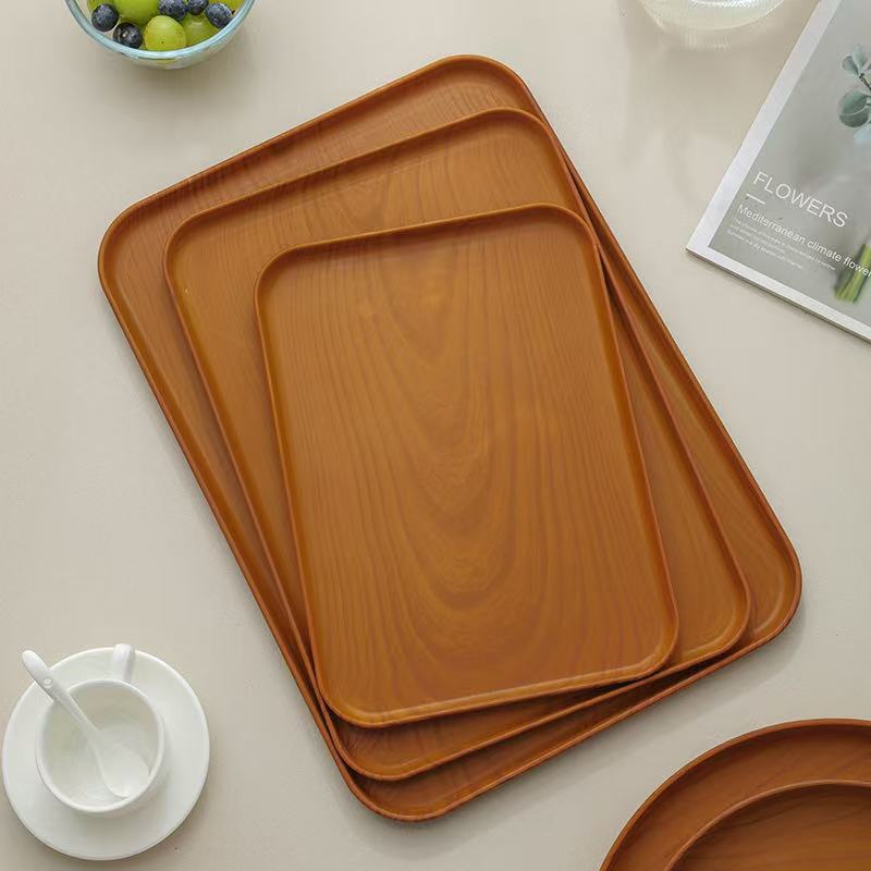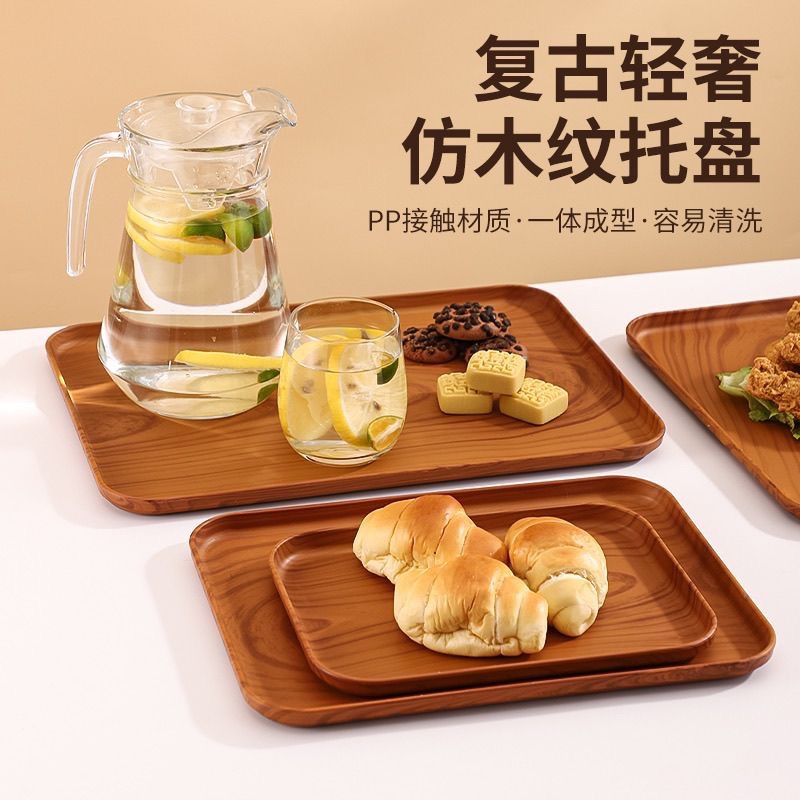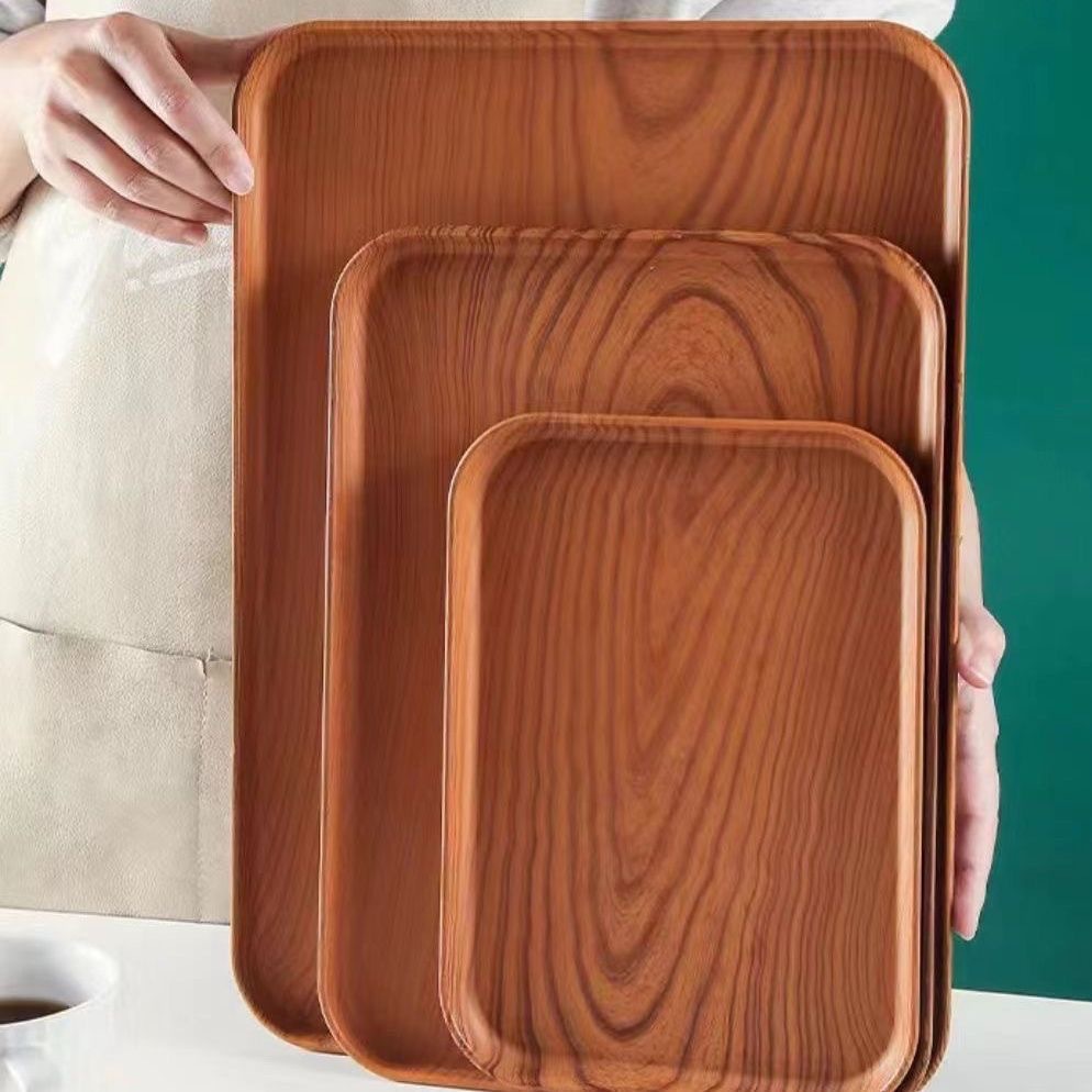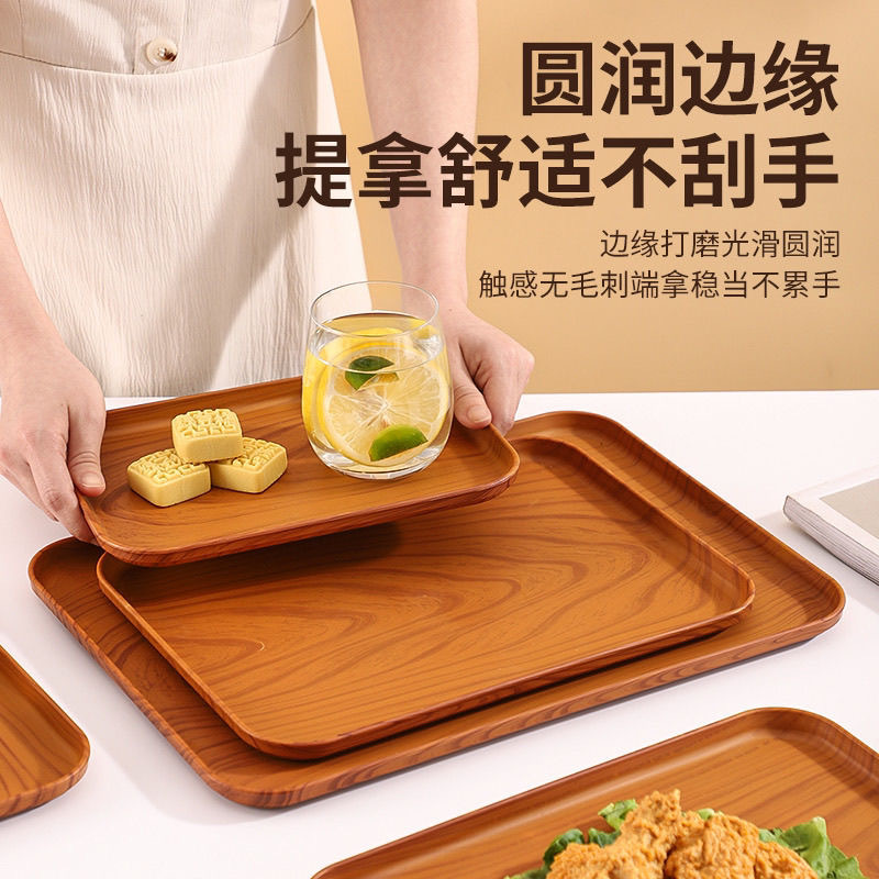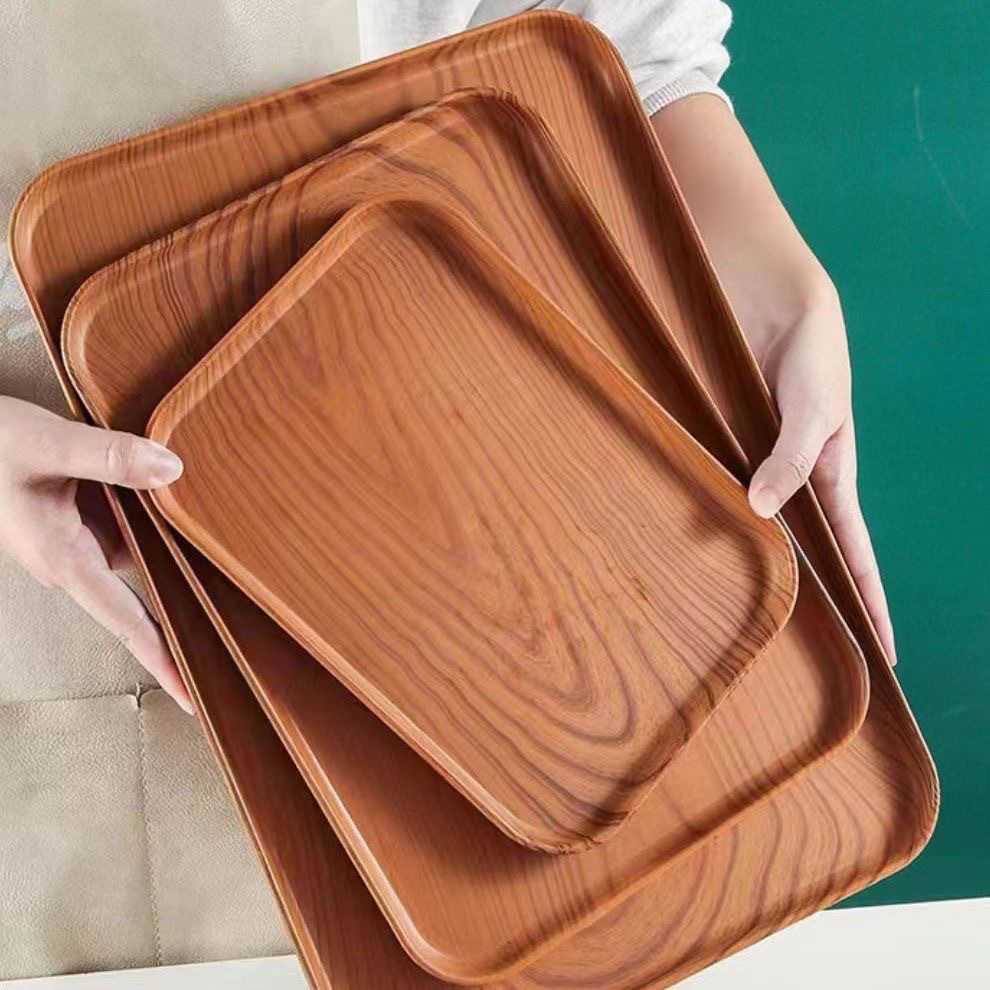 Поднос с имитацией дерева прямоугольная пластиковая чайная тарелка бытовая чашка для хранения воды тарелка для кофе деревянная тарелка