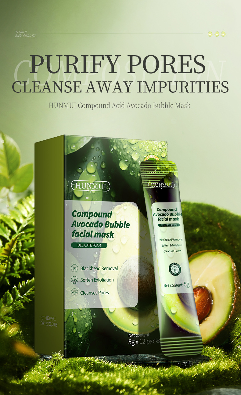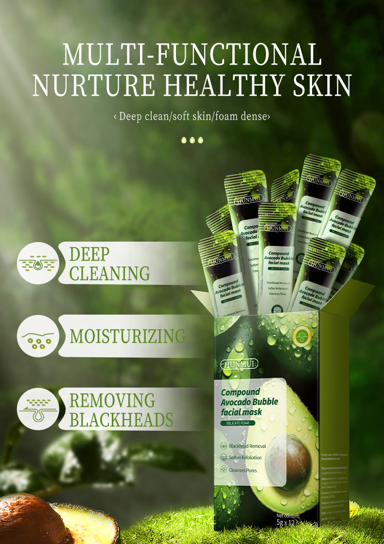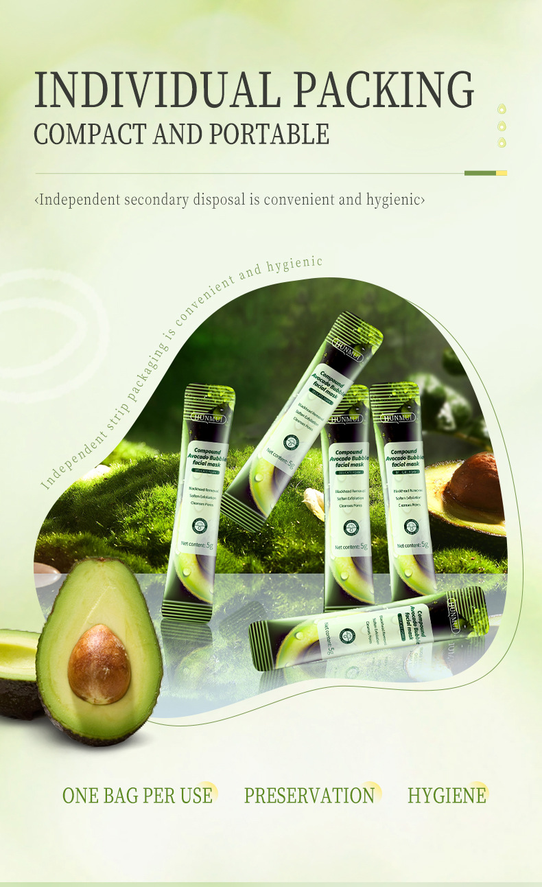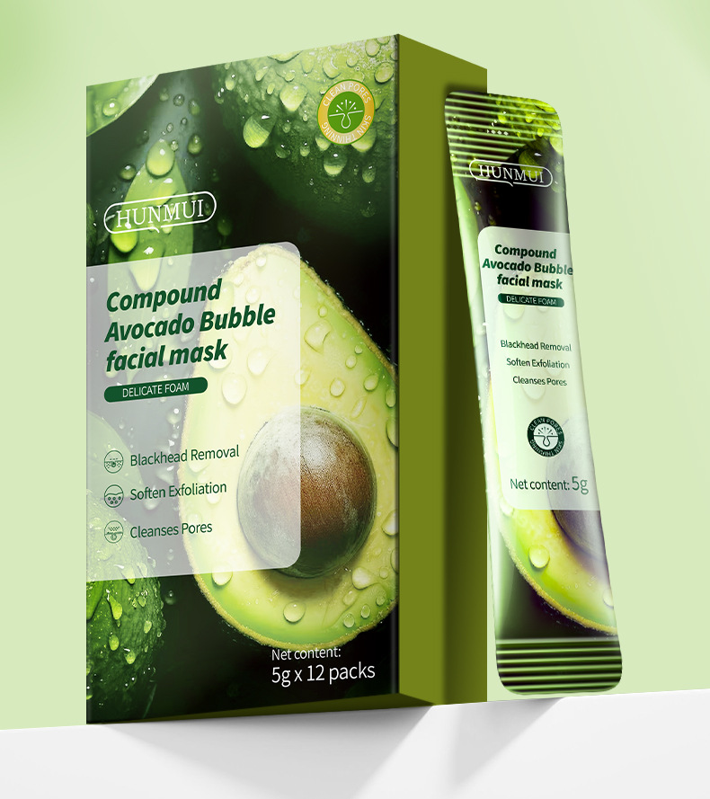 Комплексная пузырьковая маска из кислого авокадо 5г×12 (внешняя торговля английская версия)