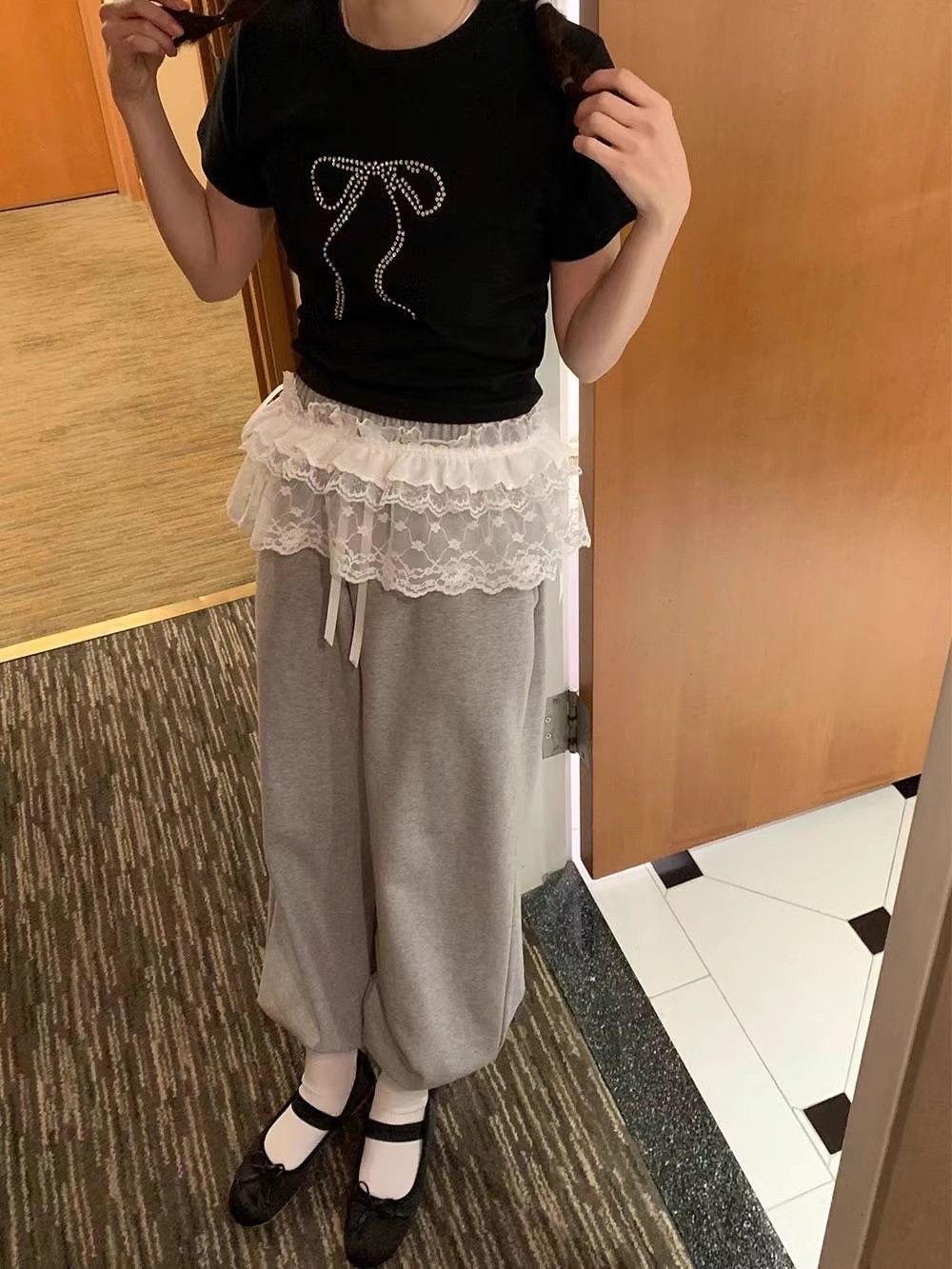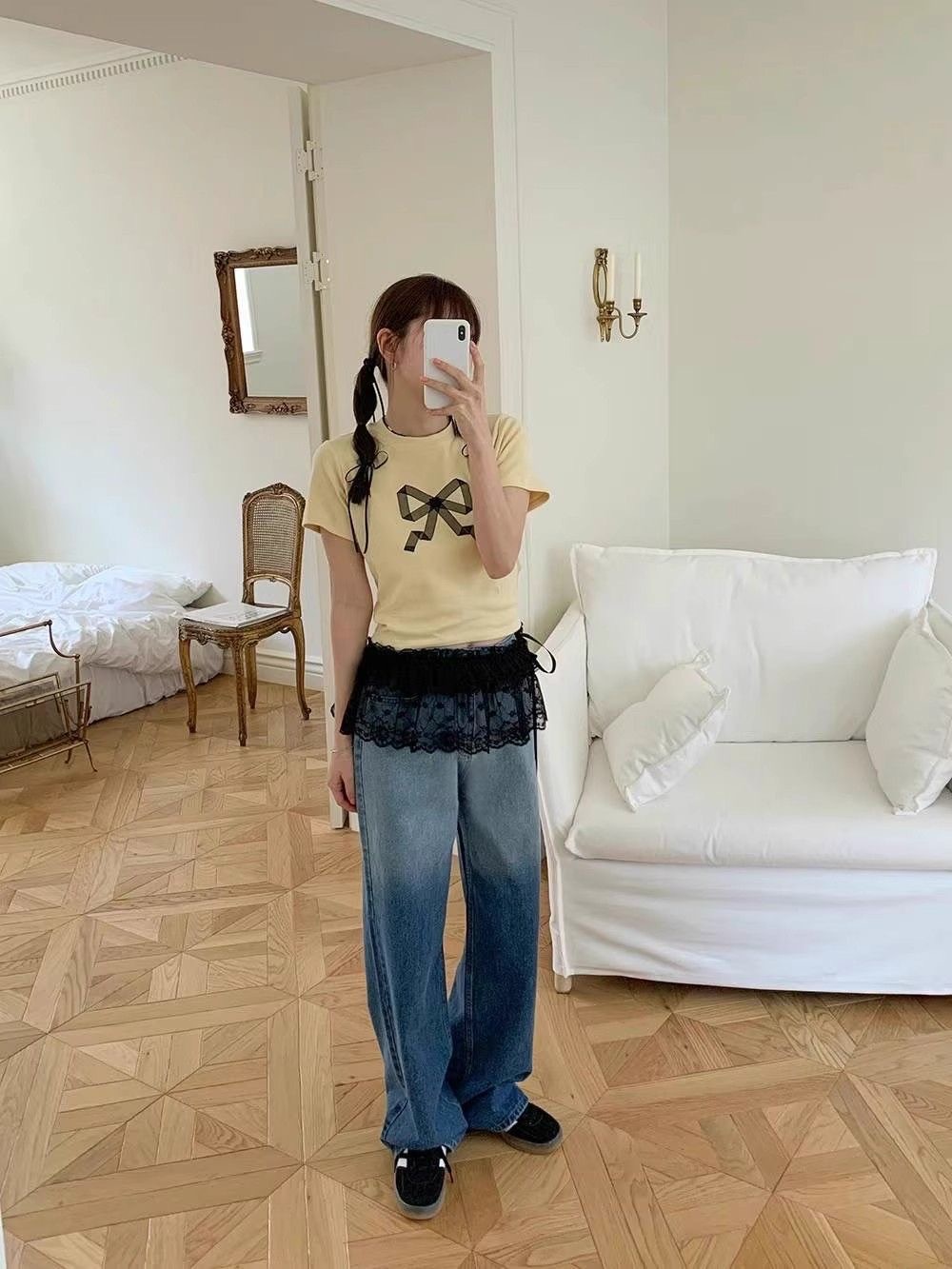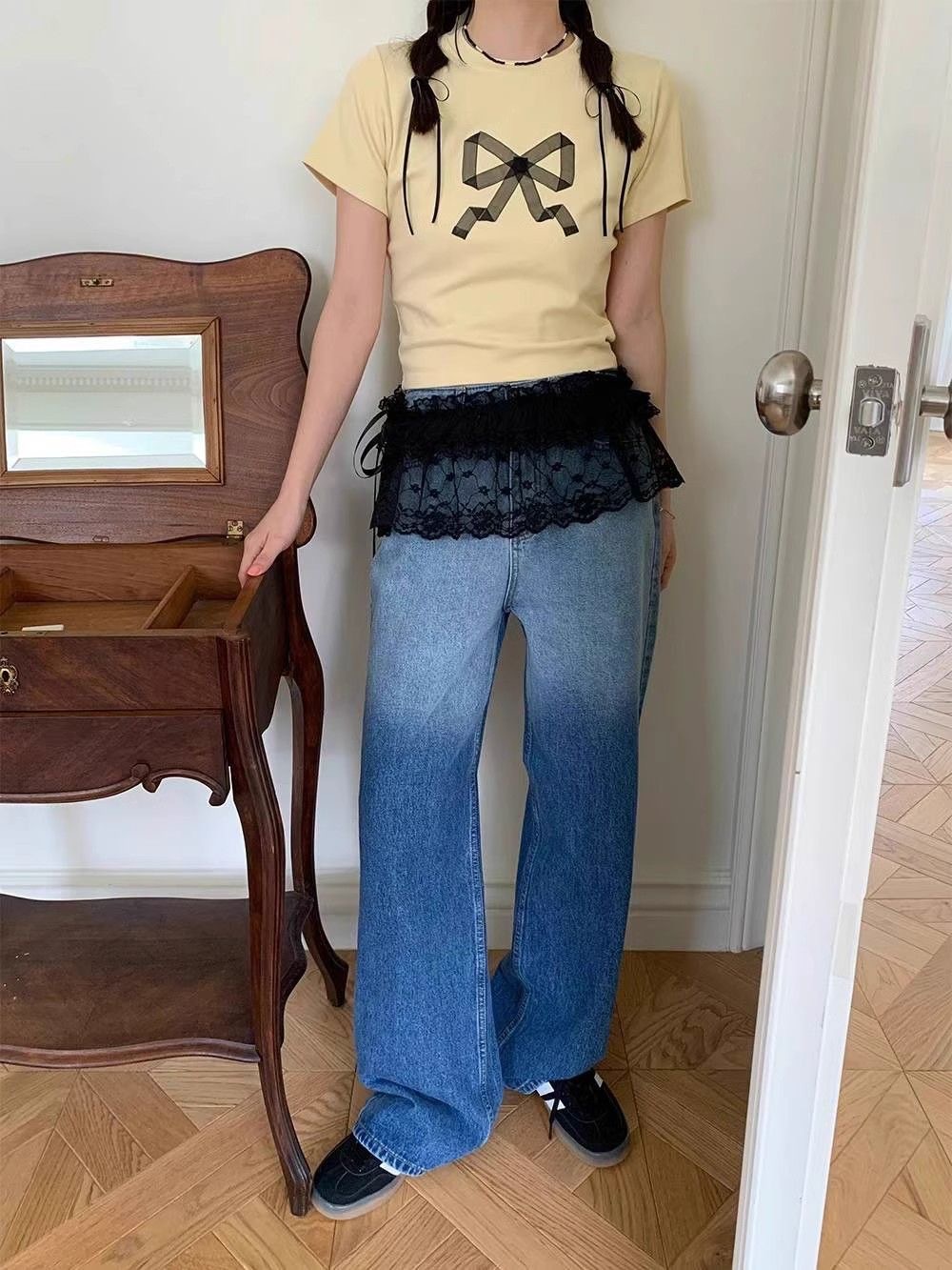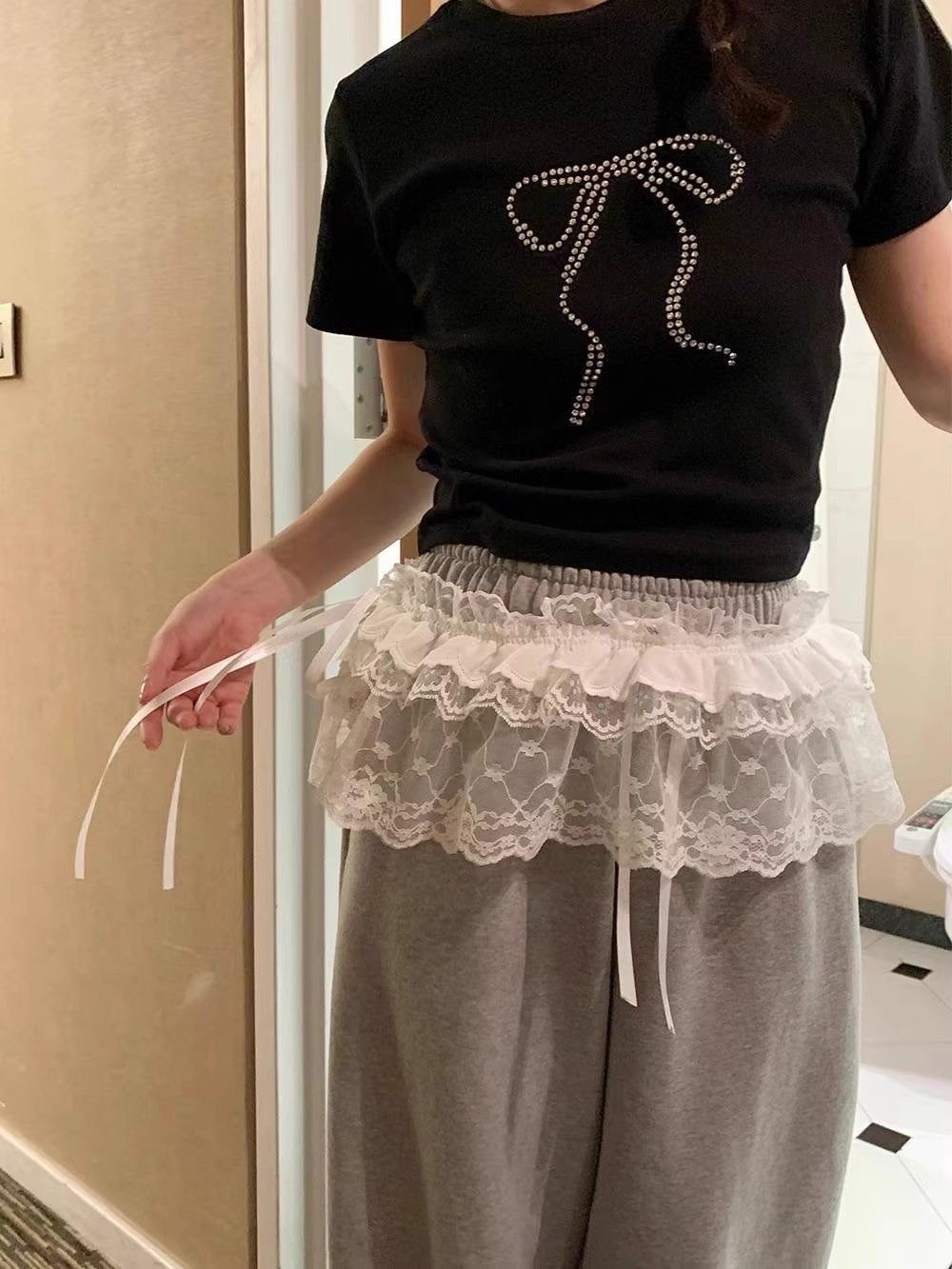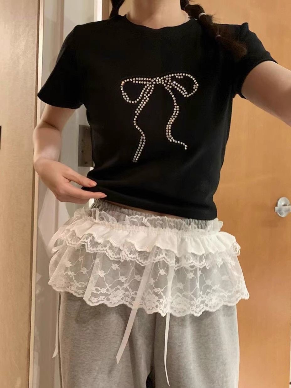 Корейский дизайн чувствует себя весной, летом, новая тяжелая промышленность сладкая шнуровка с кружевом, короткая пердеть занавес фартук, юбка