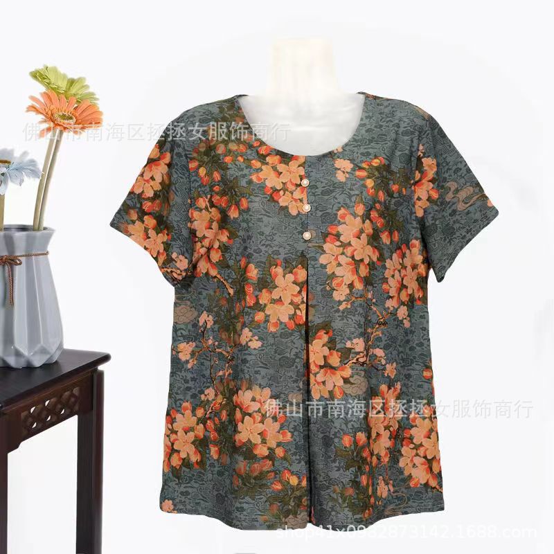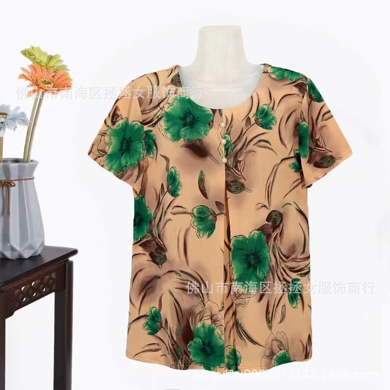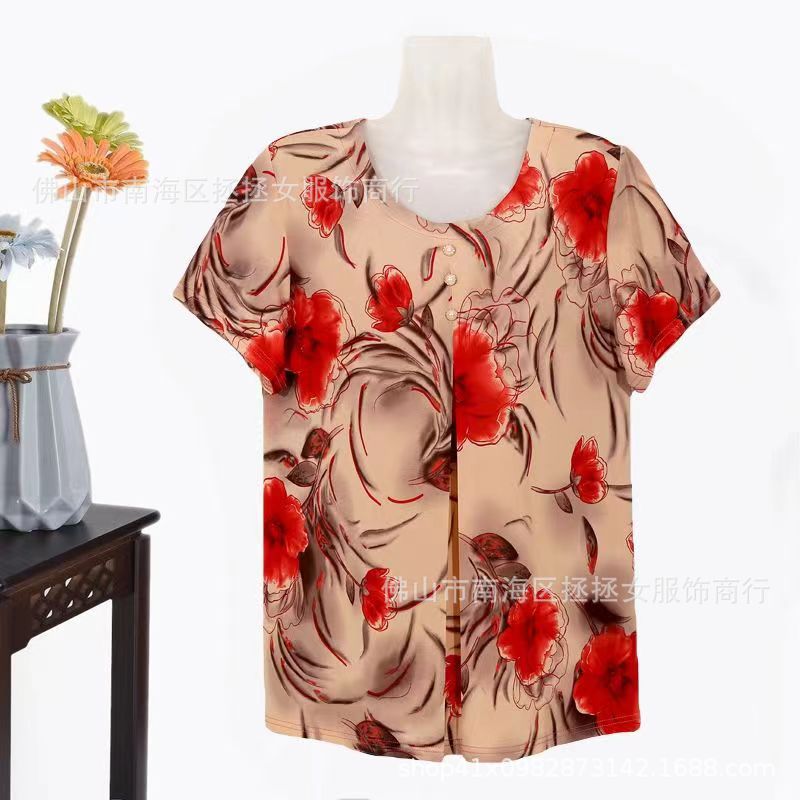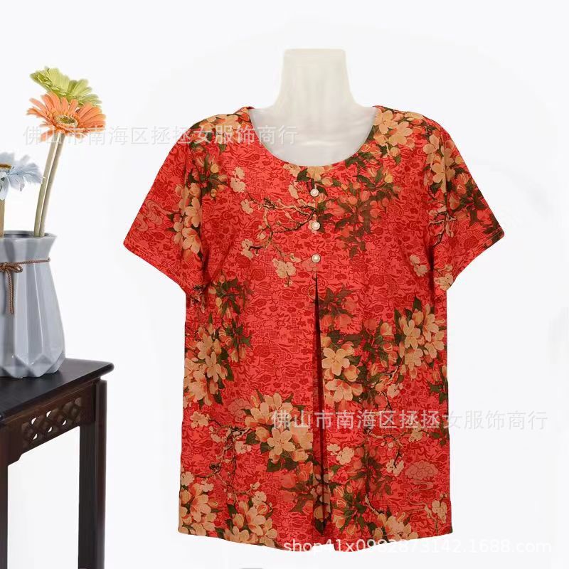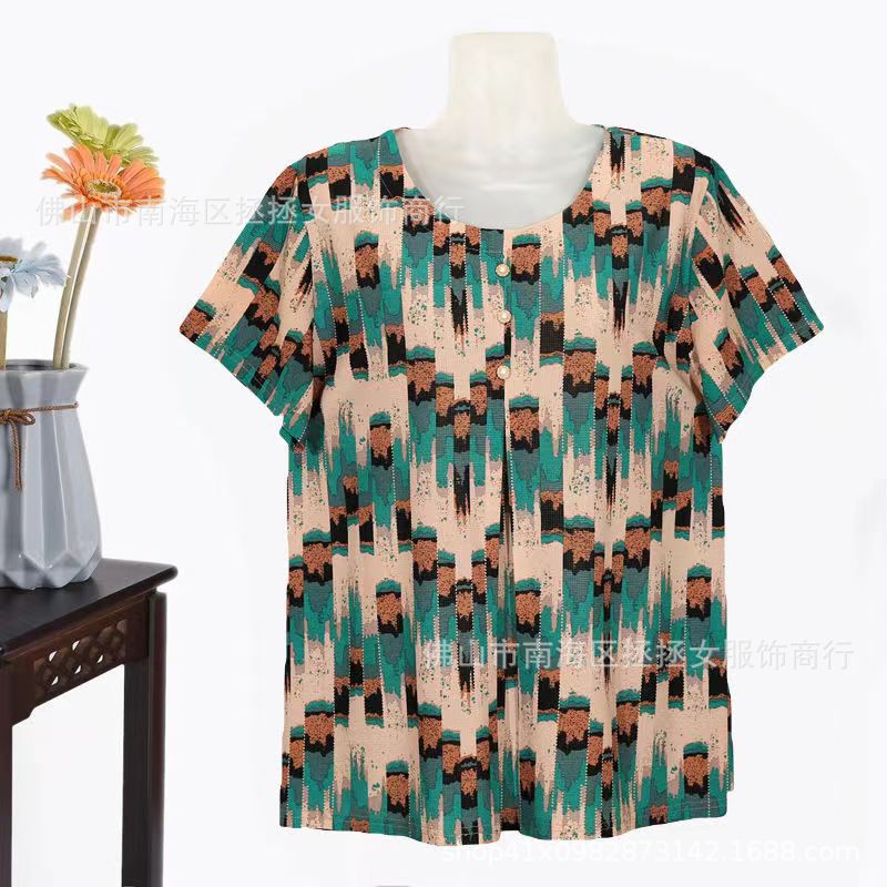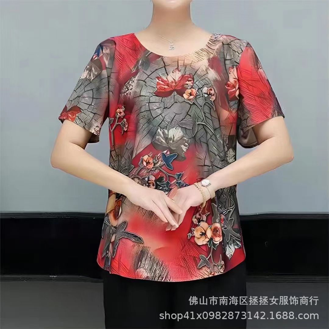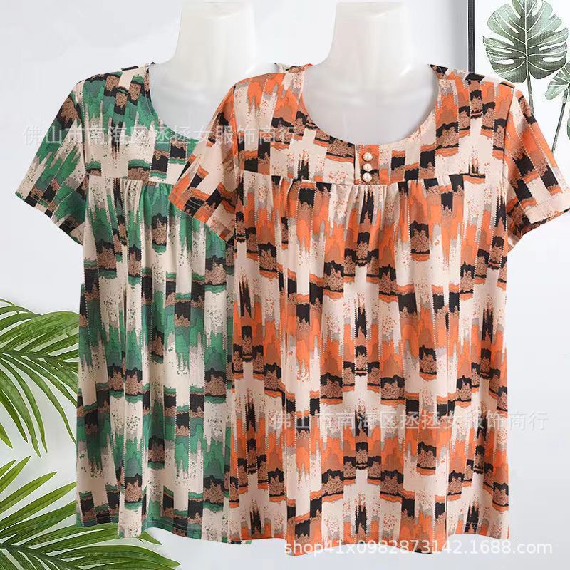 Летняя футболка большого размера для мам, новинка 2026 года, модный топ с коротким рукавом для женщин среднего возраста, свитшот для бабушек