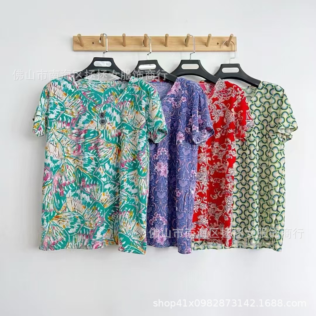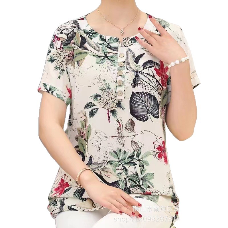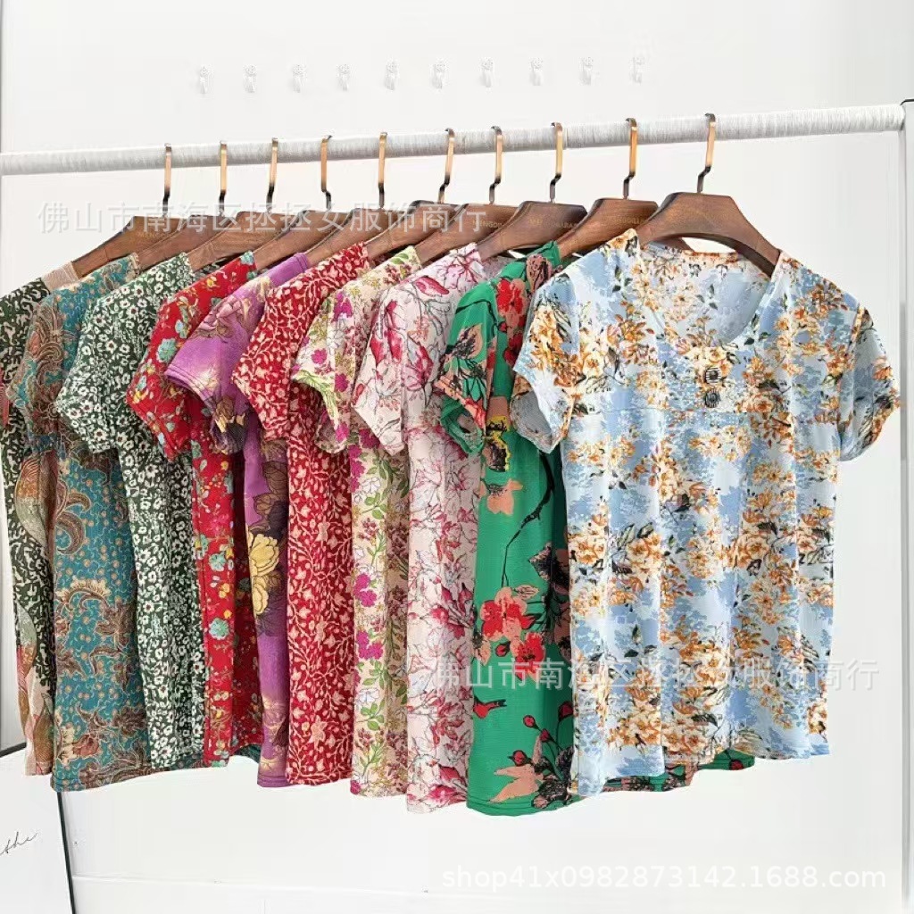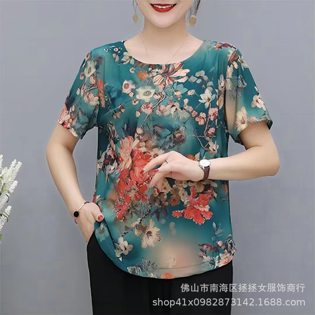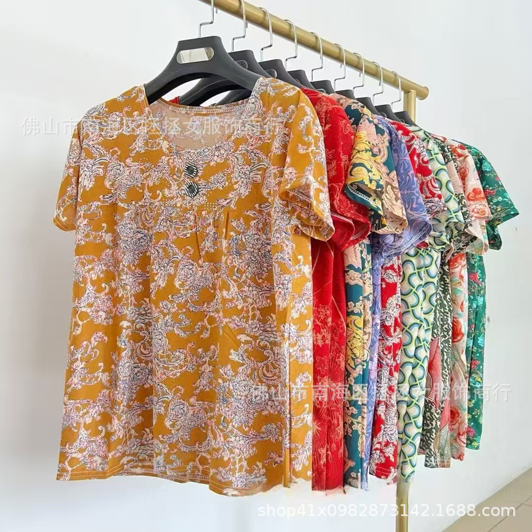 Летняя футболка большого размера для мам, новинка 2026 года, модный топ с коротким рукавом для женщин среднего возраста, свитшот для бабушек